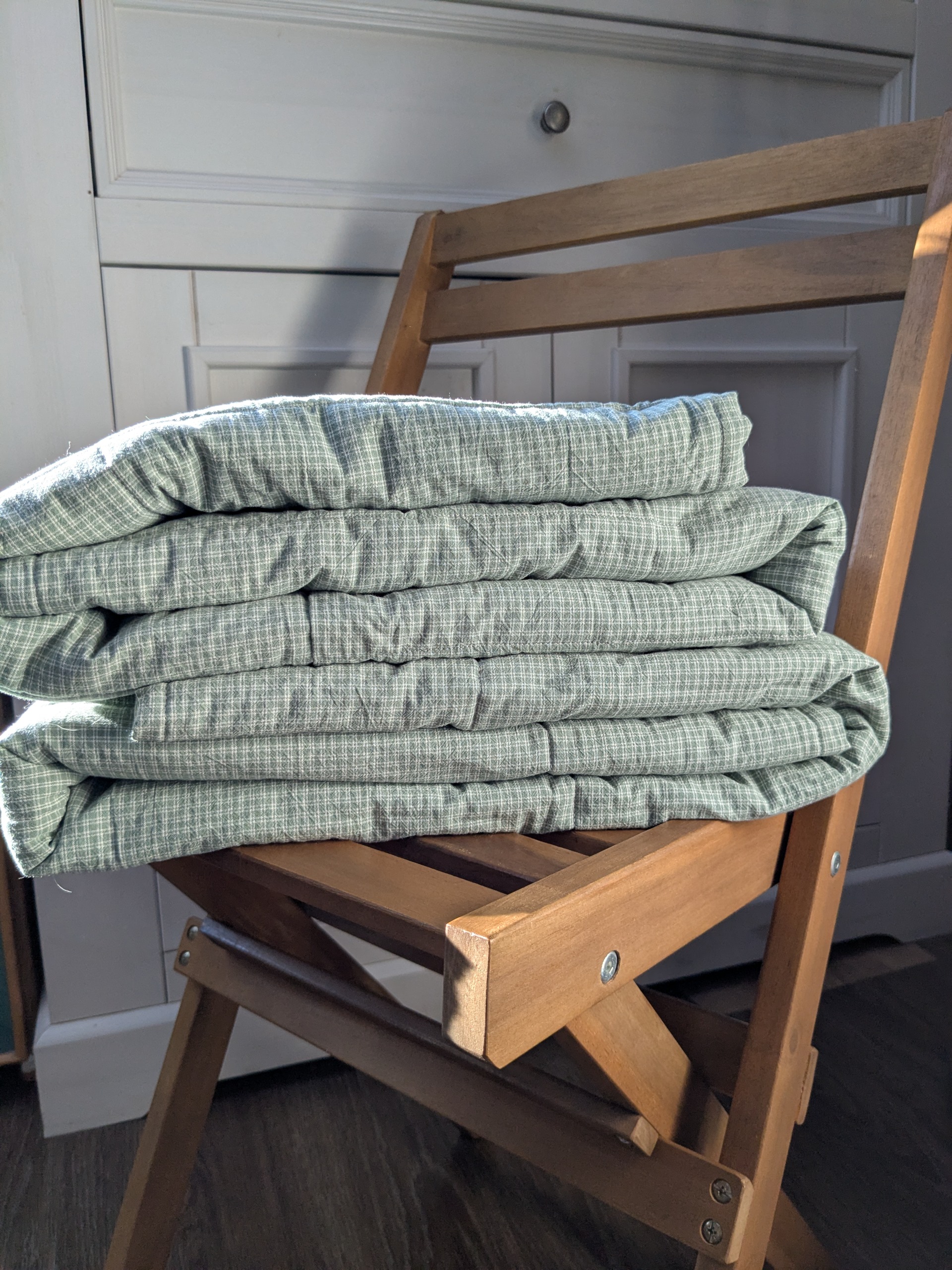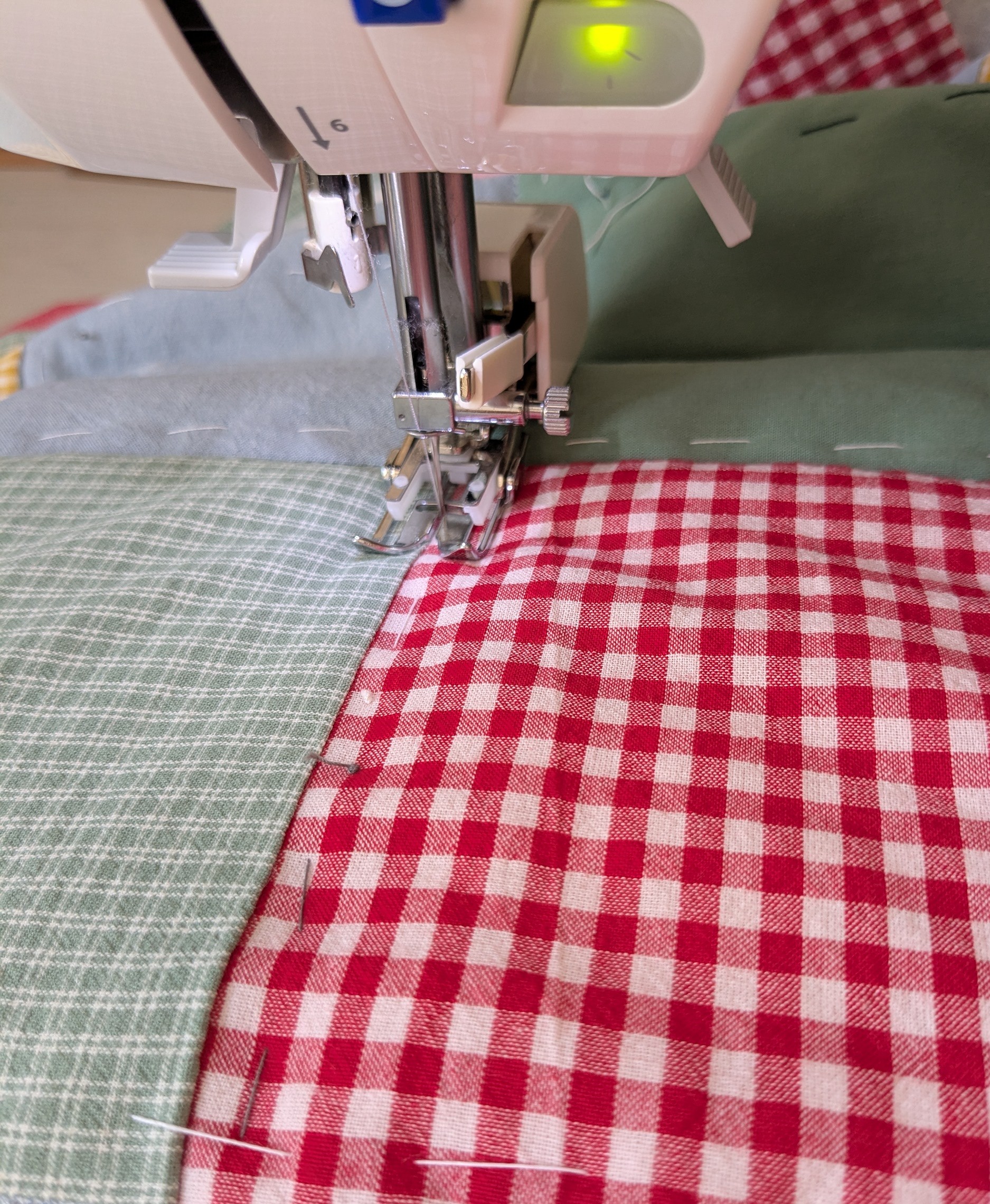 Какая прелесть! Так просто, мило, нежно! Без вычурности, сложностей! Я бы, конечно, позанудничала бы по поводу пэчворк и квилтинг, где что и с чем едят и первое и второе))) Но это пока я не увидела работу! Настолько уютно! Я правильно понимаю, что это почти все вареный хлопок в разных принтах? Или что-то другое есть? Все, прочитала ответ на предыдущий комментарий! А ткань в клеточку и у меня в запасах! Узнала)))