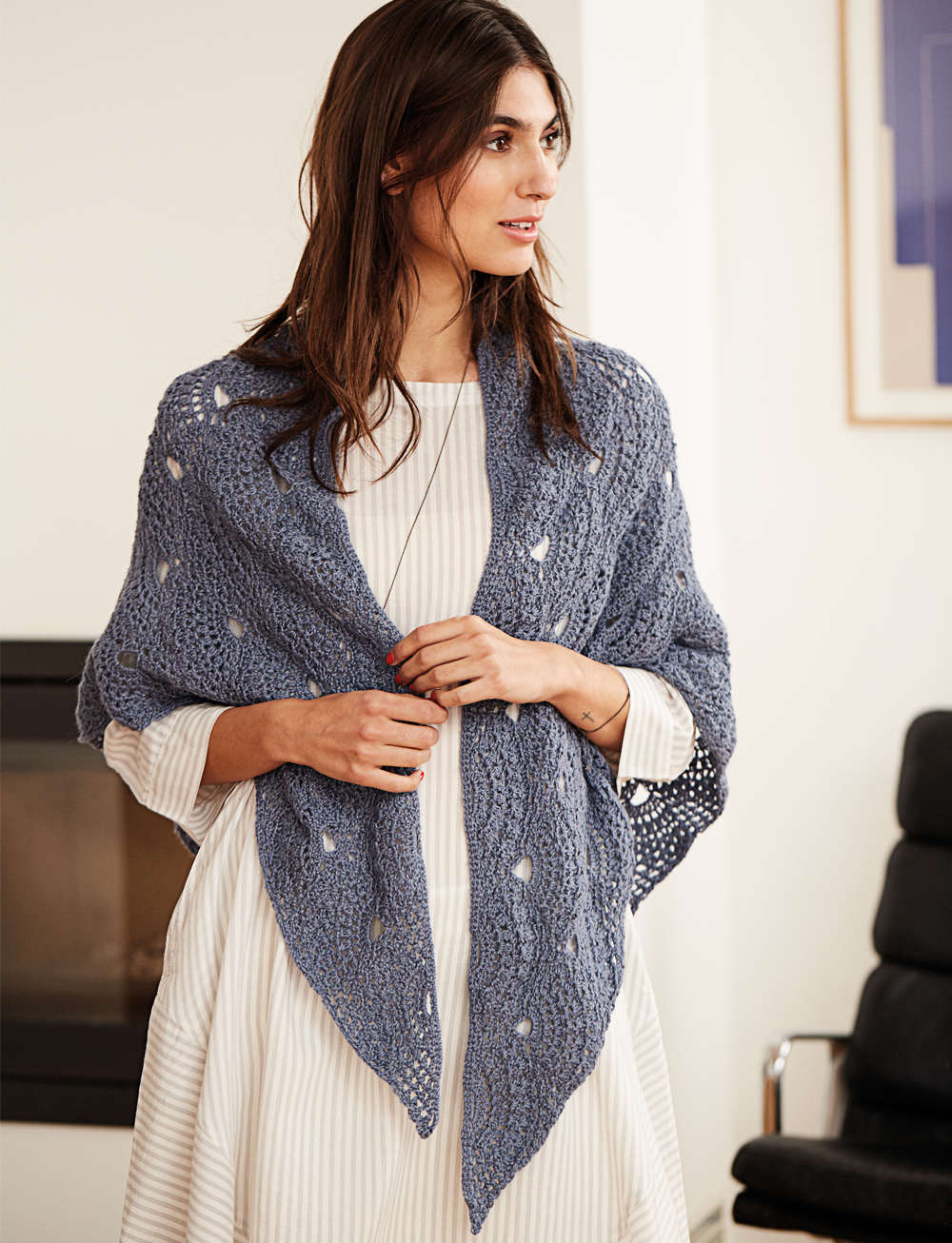 Пряжа (70% беби альпака, 30% шелка тутового шелкопряда; 50 г/200 м) — 6 мотков джинсово-синей; крючок №4,5.