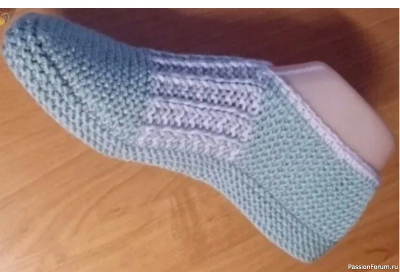 Сам пpоцecc вязанuя доcтаточно пpоcт и тапочки вяжутcя очeнь быcтpо.