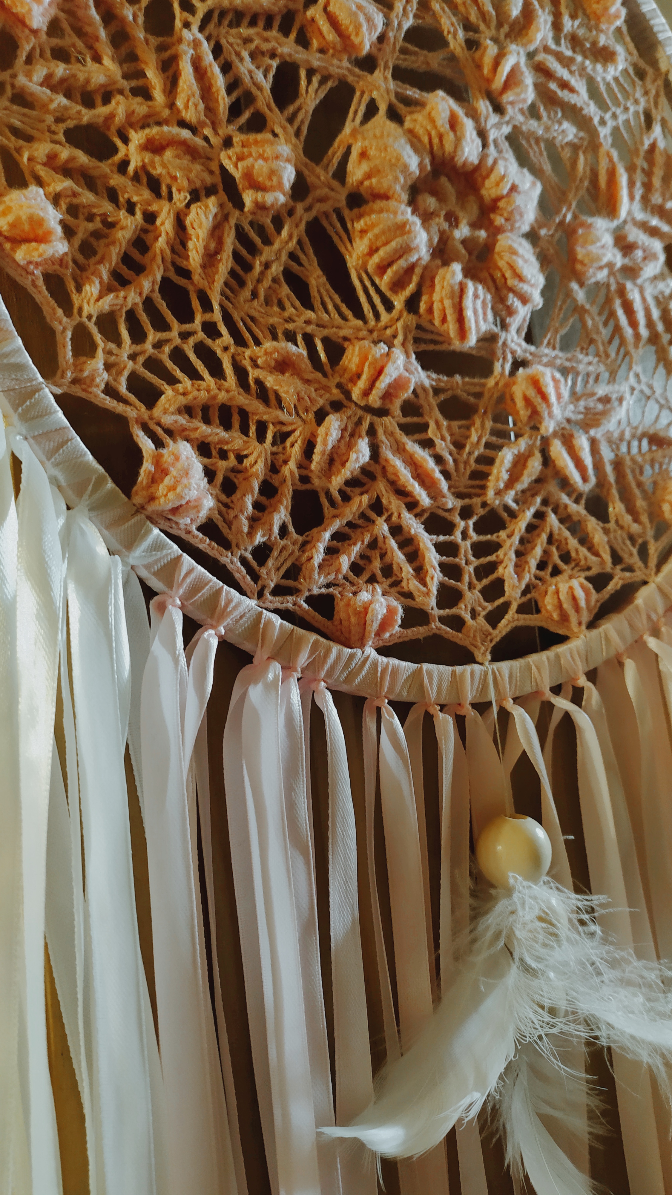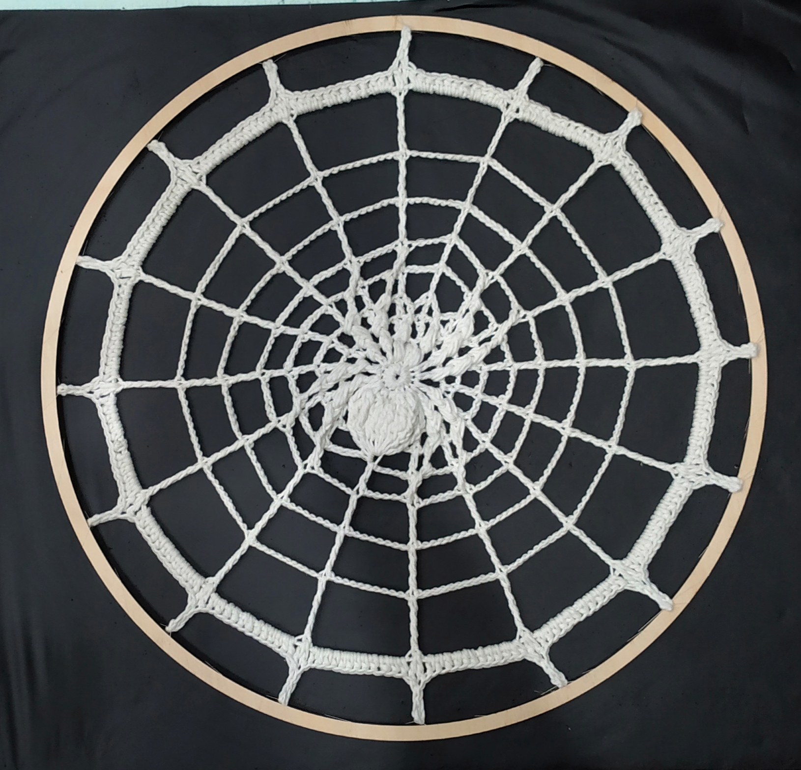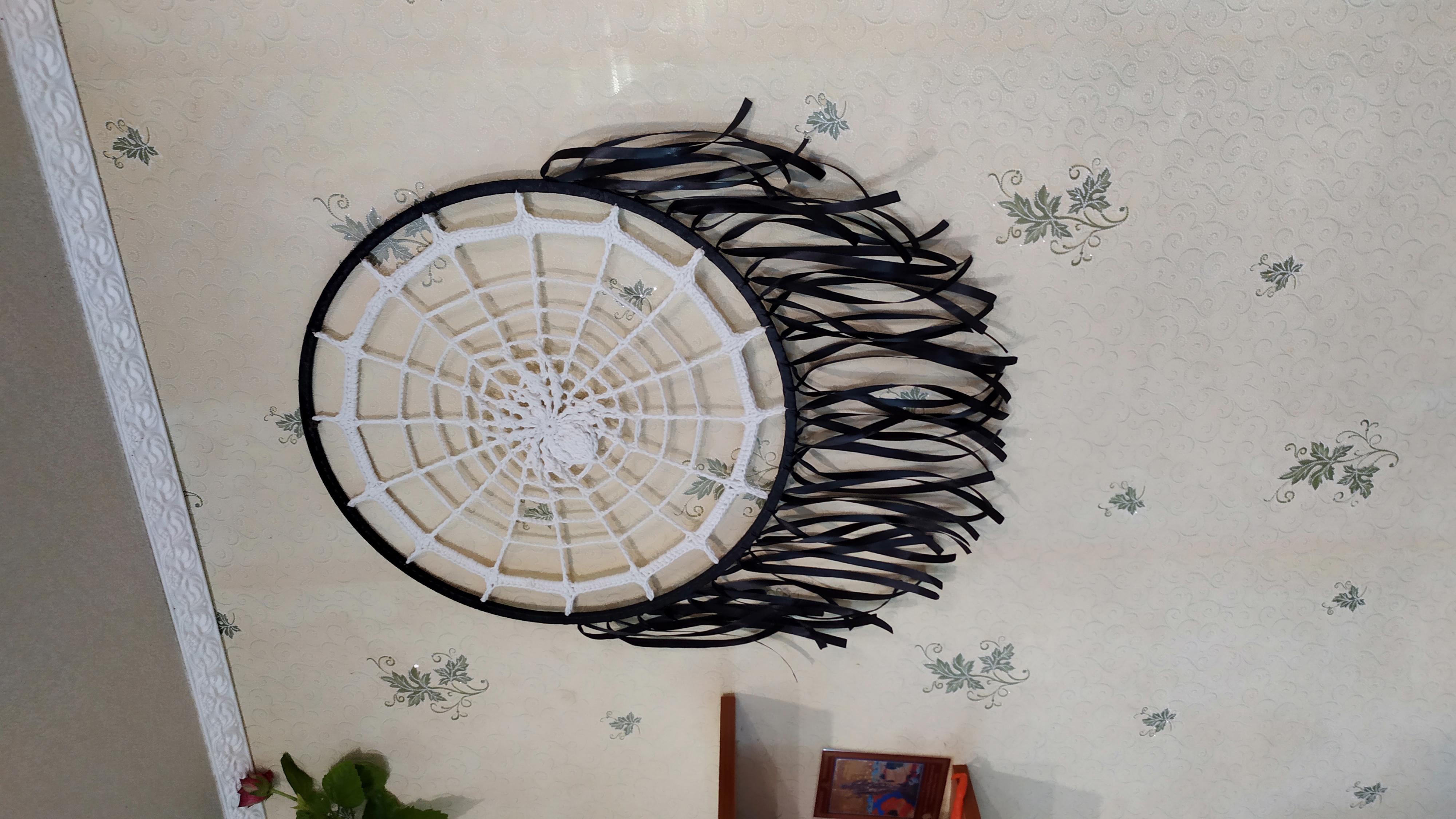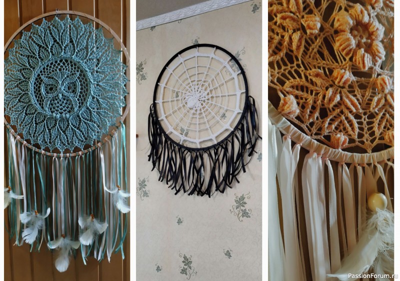 Ловцы панно связаны крючком из хлопка, натянуты на деревянную основу, диаметр ок 35см