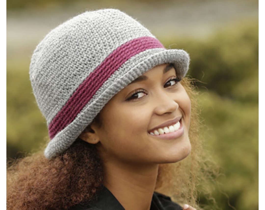 Для всех размеров: продолжить вязание без прибавлений и через 15-16 см от наборного края перейти на нить 53, продолжить вязание только за задние стенки петель. Через 18-19 см снова перейти на серую нить и вязать поля шляпы: