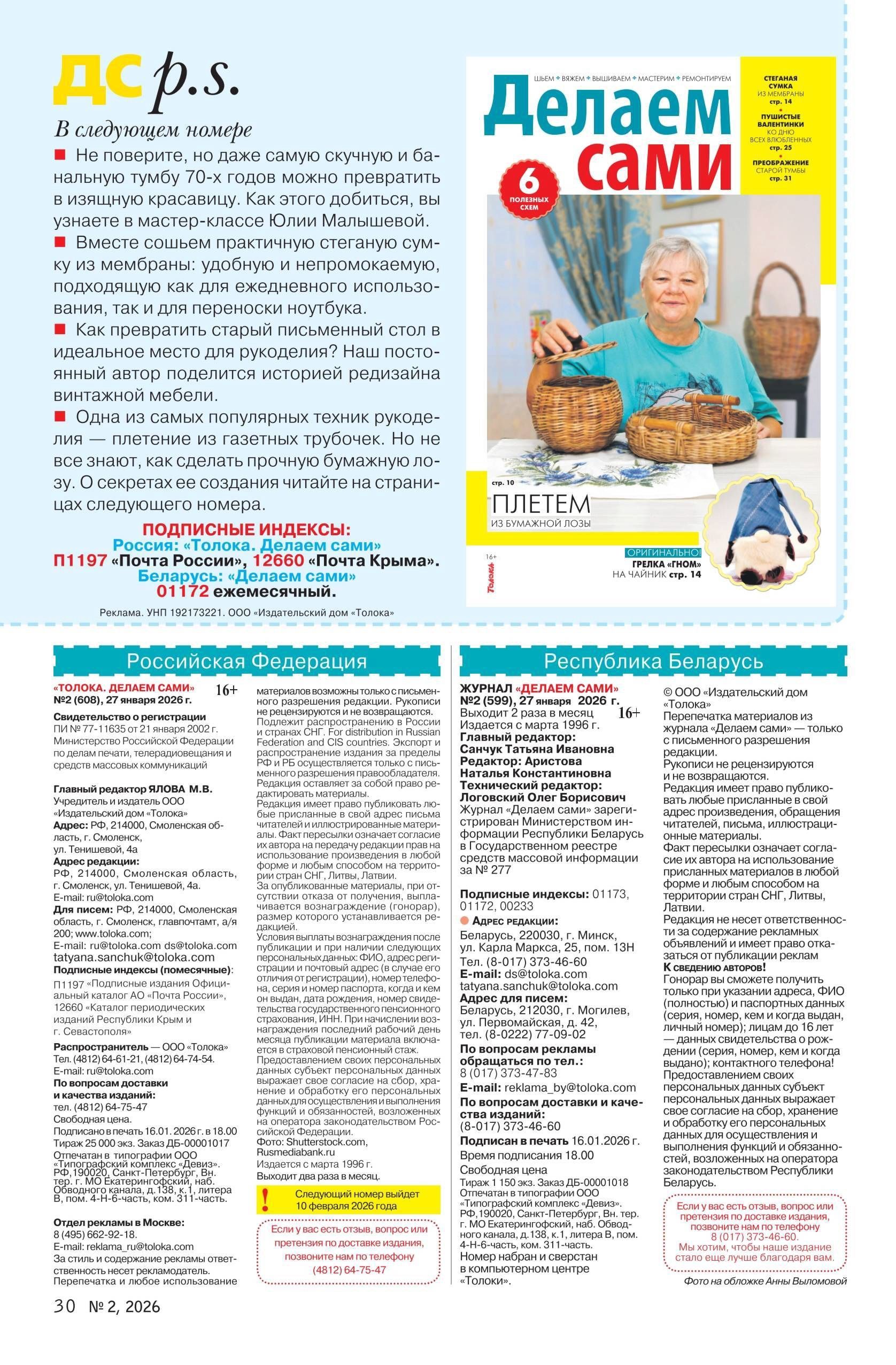 Коллекция проектов для рукодельниц в журнале «Делаем сами №2 2026»