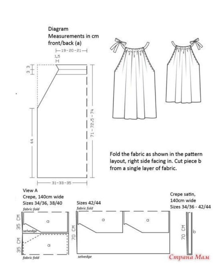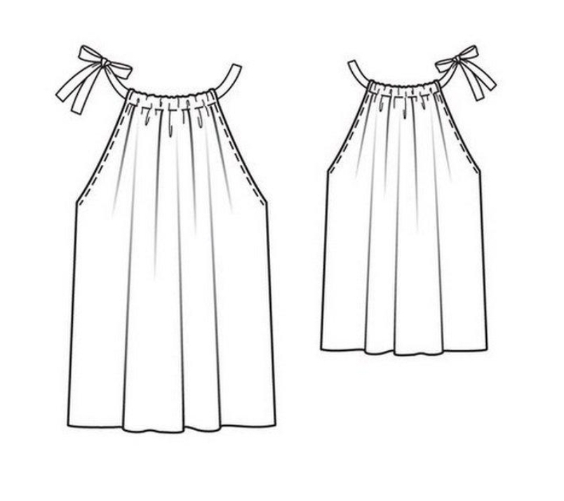 Выкройка этой модели универсальна – она может быть использована и для пошива топа, и для сарафана, необходимо только увеличить длину.,