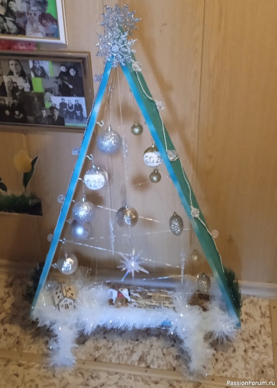 Елка украшенная самодельными игрушками