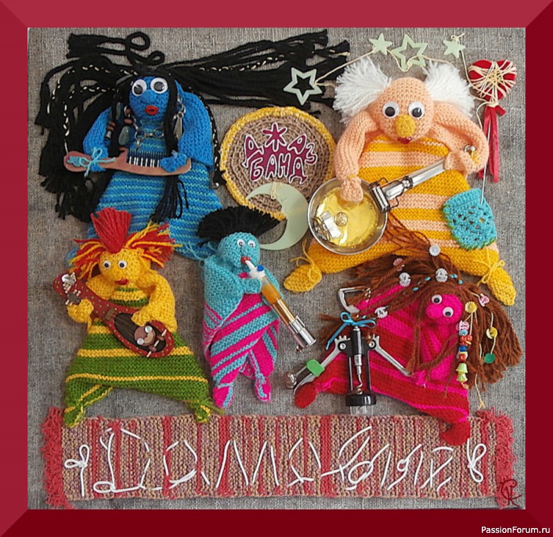 Дорогие рукодельницы, хочу познакомить вас со своими домовыми. Может кому знаком такой синдром: синдром Плюшкина? Разбирала запасы из "может ещё пригодится", появилась идея, как бытовые предметы преобразовать в некие музыкальные инструменты, собралась такая композиция.