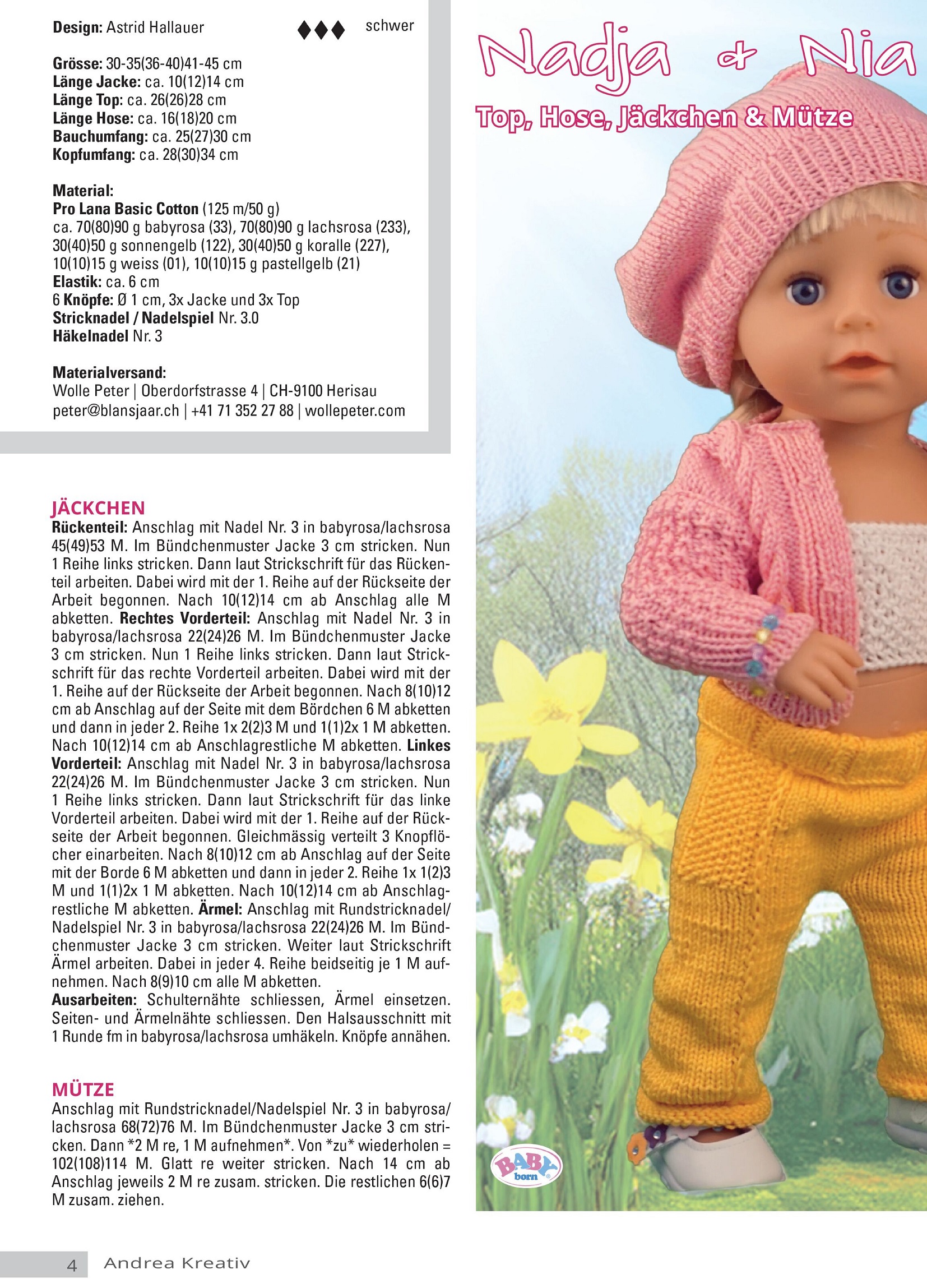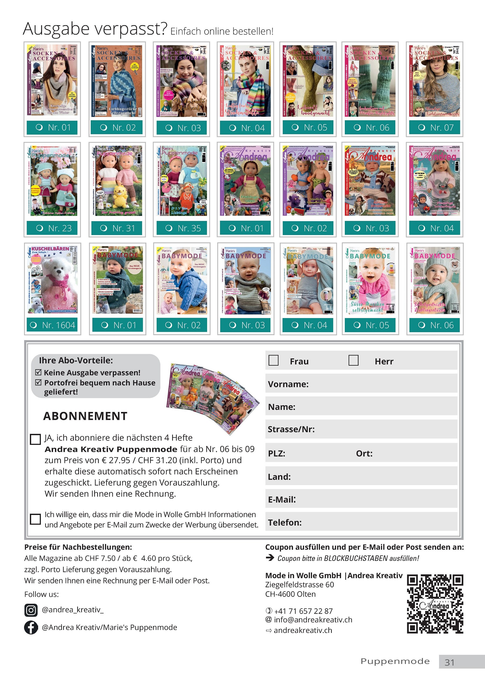 Популярный немецкий журнал по рукоделию "Andrea Kreativ" представляет новый выпуск журнала "Marie's Puppenmode". Здесь любители вязания найдут новую коллекцию вязаных проектов для любимых игрушек.