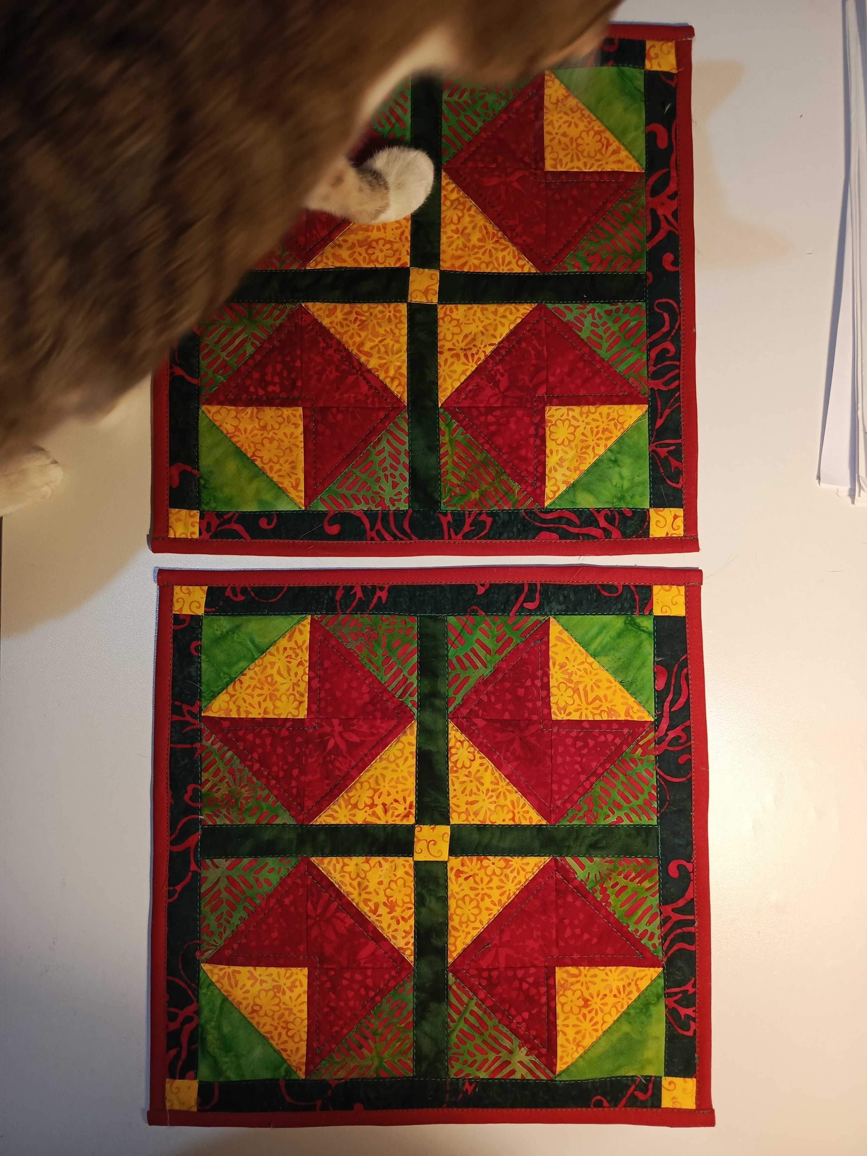 Очень аккуратно и красиво! Свободно-ходовую стежку я не люблю, мне больше нравится стегать по рисунку.