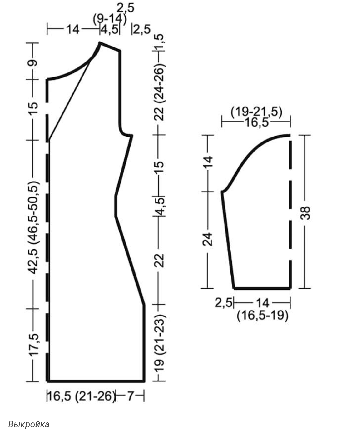 Левая половинка спинки: вязать симметрично правой половинке спинки.