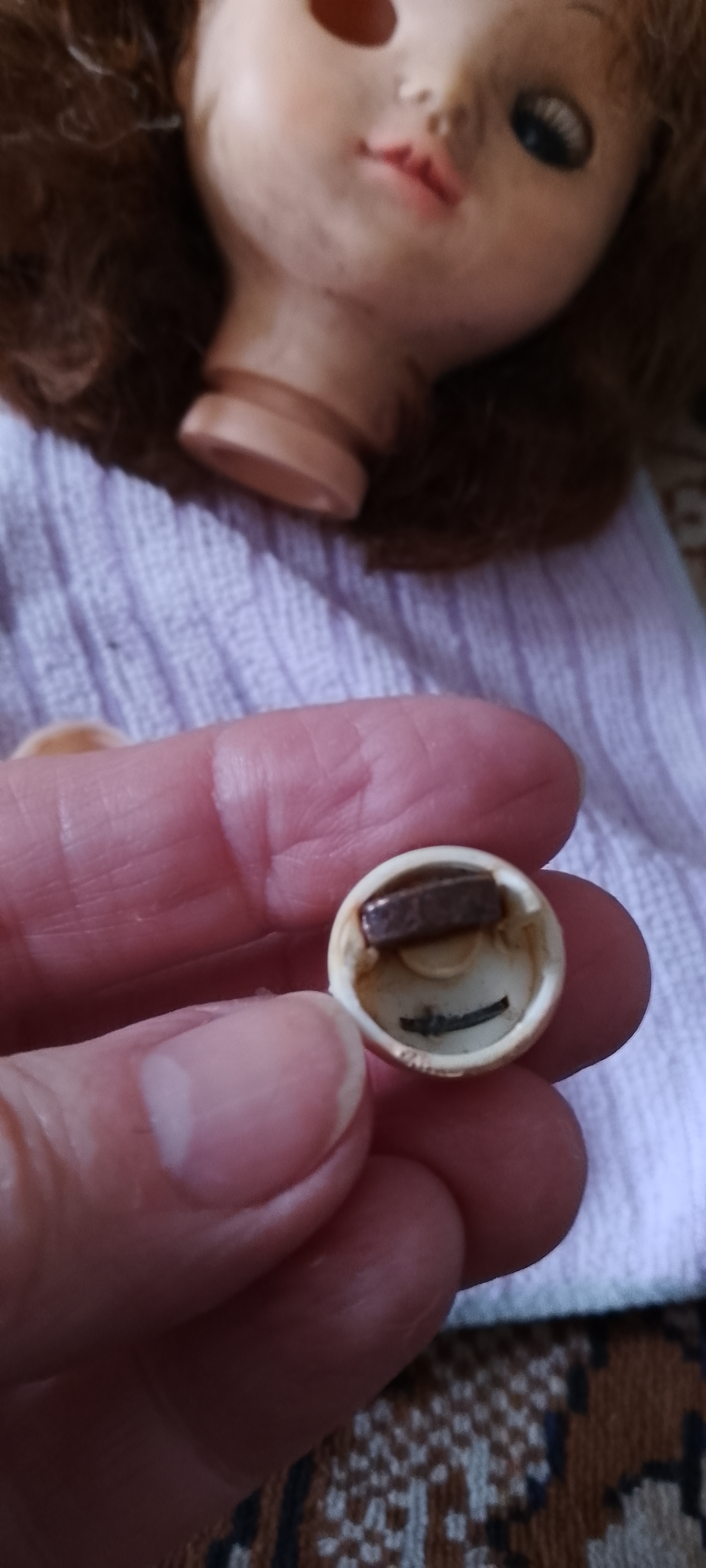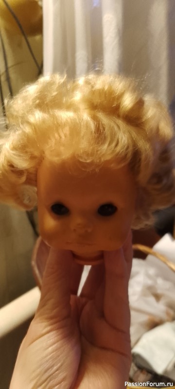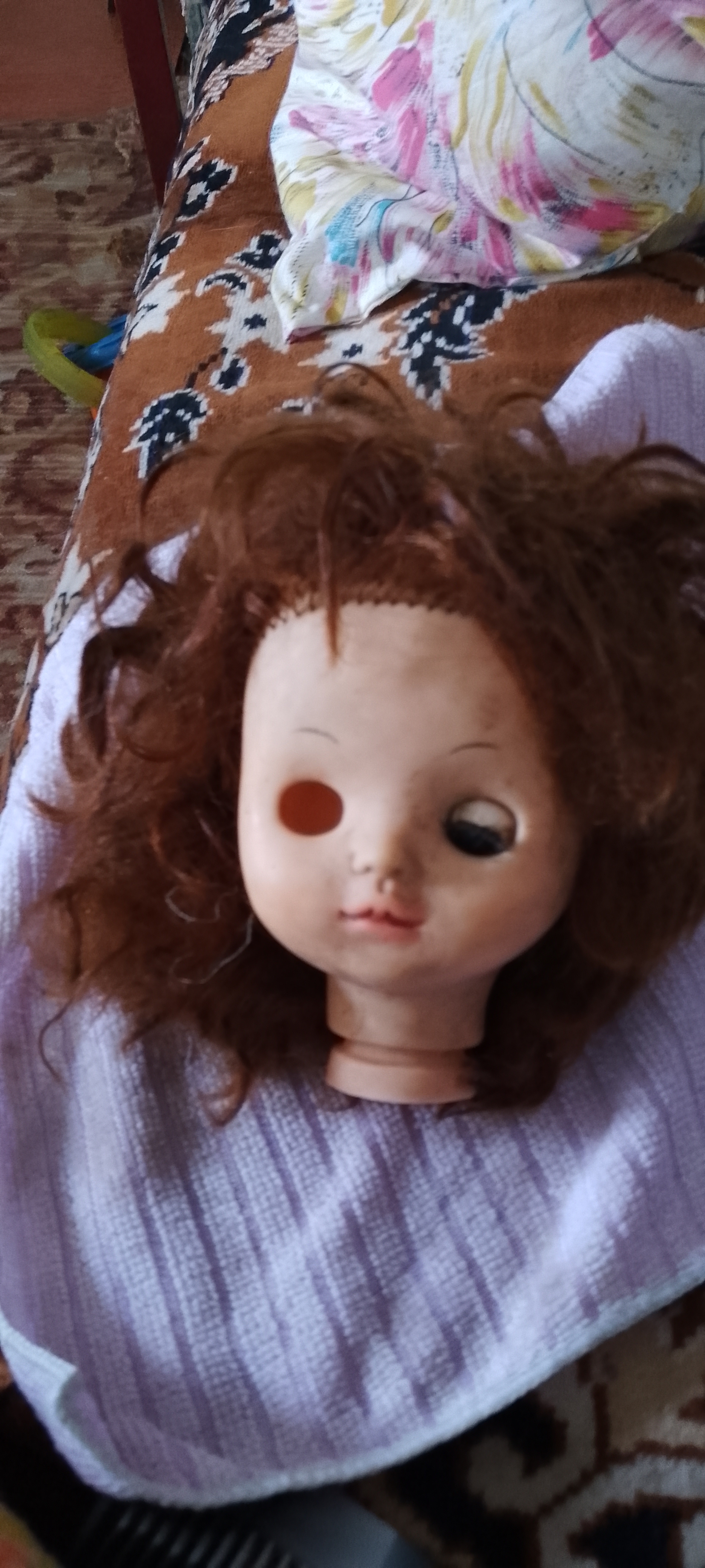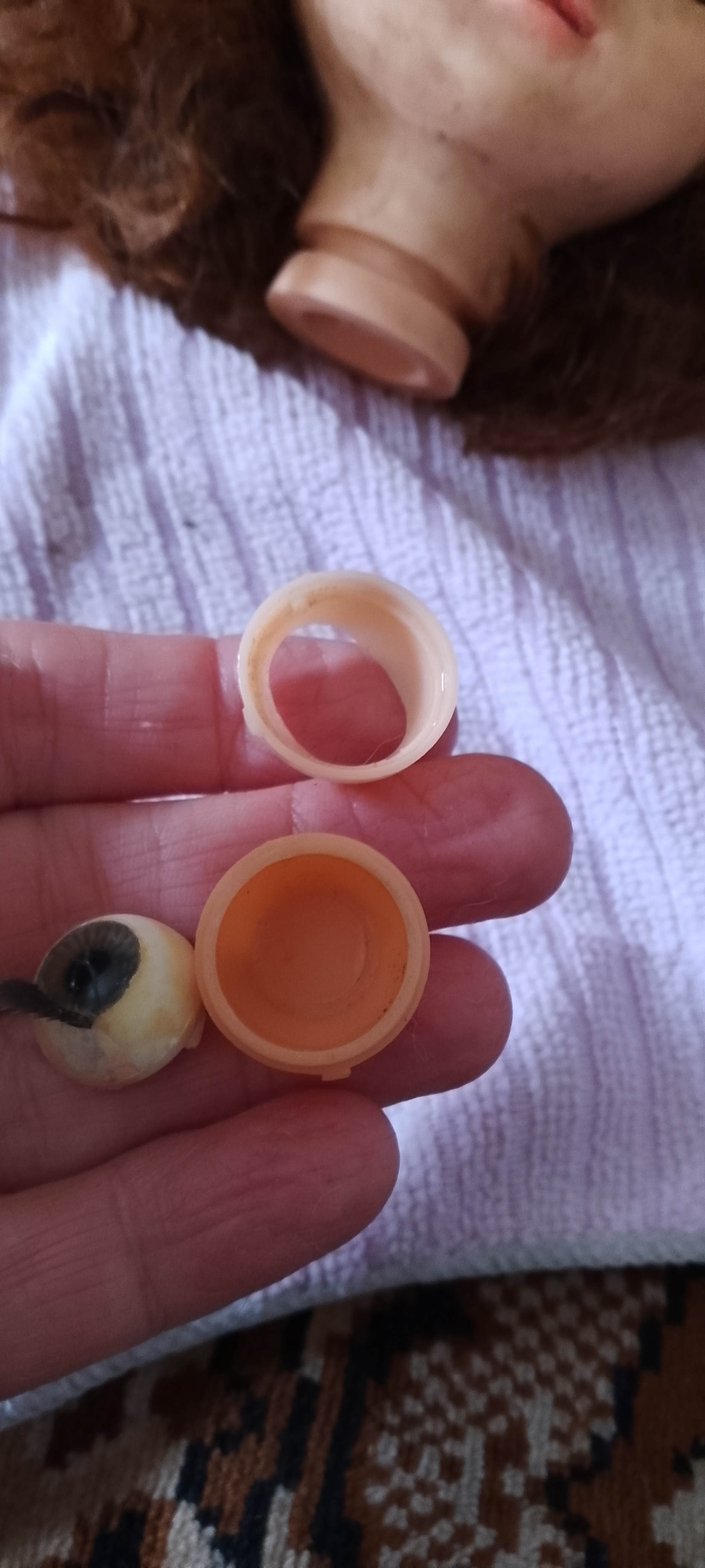 Попала мне в руки кукла, точнее две - одна немецкая, вторая советская. Куколки старенькие, с проблемами. С немецкой проблем не было :помыла, глазки вынула, поправила, поставила на место. А вот с советской что-то не так. Головка у куклы мягкая, тело твердое. Глаз провалился, волосы с валялись. Достала один глаз. И никак не пойму его конструкцию. Капсула пластмассовая, металлического ободки нет. Что делать дальше - не знаю. Вообще я не кукольница, ремонтом никогда не занималась. Эти красавицы попали ко мне случайно : люди выкинуть хотели, а я не дала, пожалела. Прошу - научите уму -разуму