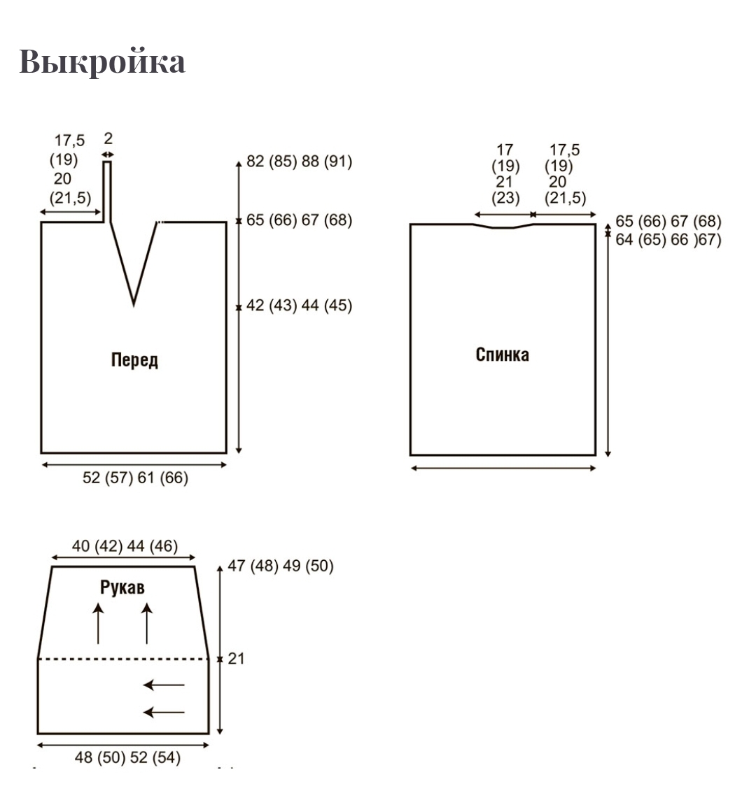 Вязать деталь в поперечном направлении (стрелки на выкройке указывают направление работы).