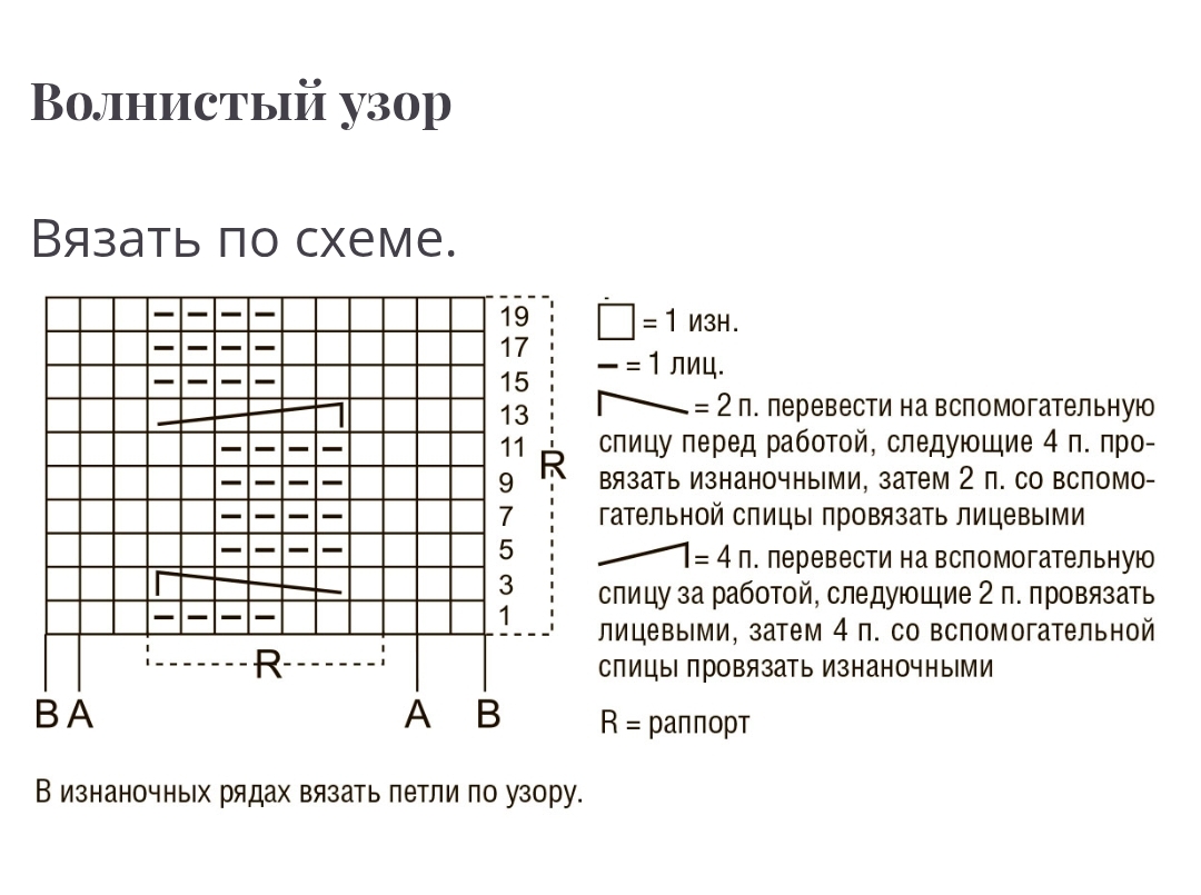 На спицы № 5 набрать 59 п. и вязать волнистым узором по счетной схеме, начиная от буквы А.