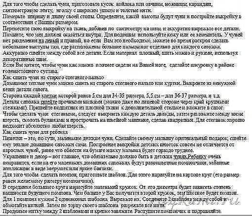 Такая обувь мягкая и удобная, а главное в ней тепло нашим ножкам. Эту мягкую обувь можно сшить не только из новых материалов, но и переделать из одежды, которая уже не носится шуб, курток, пальто, юбок, брюк, или же жакетов, главное чтоб был мех или плотная ткань.