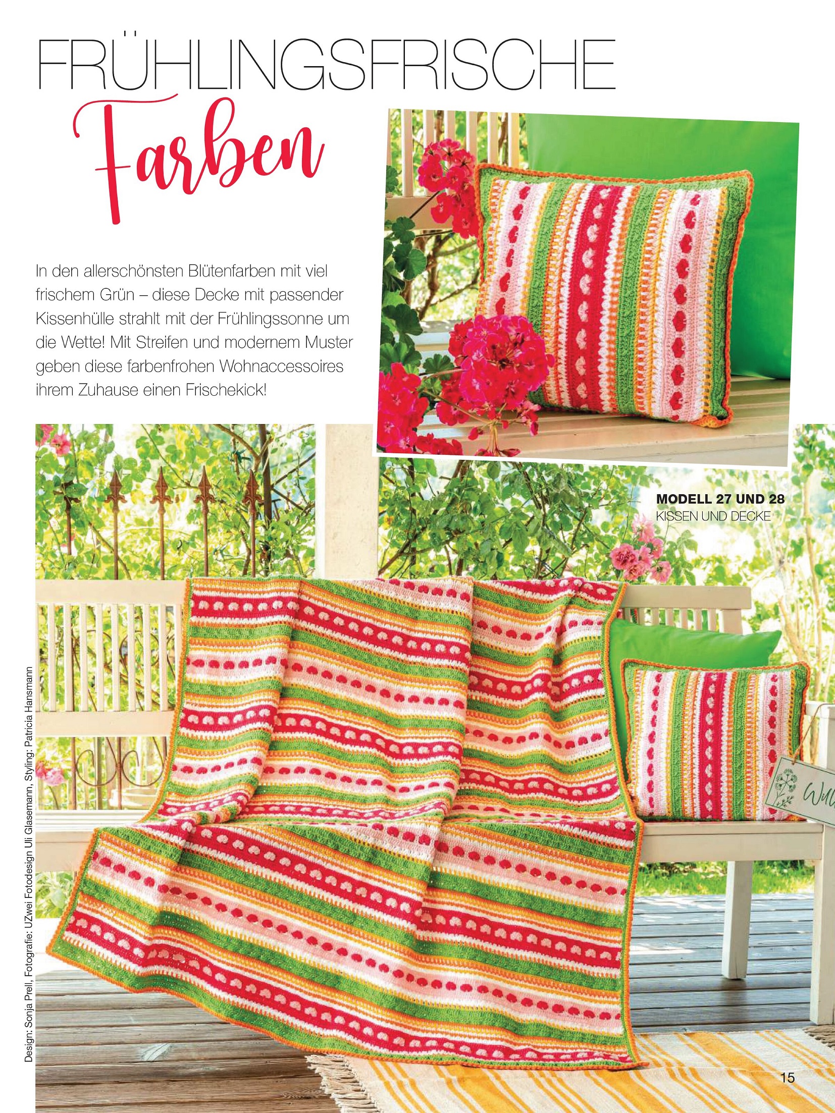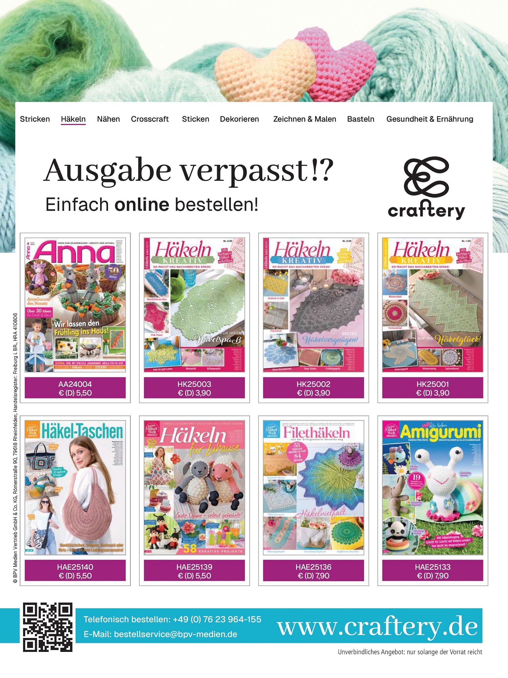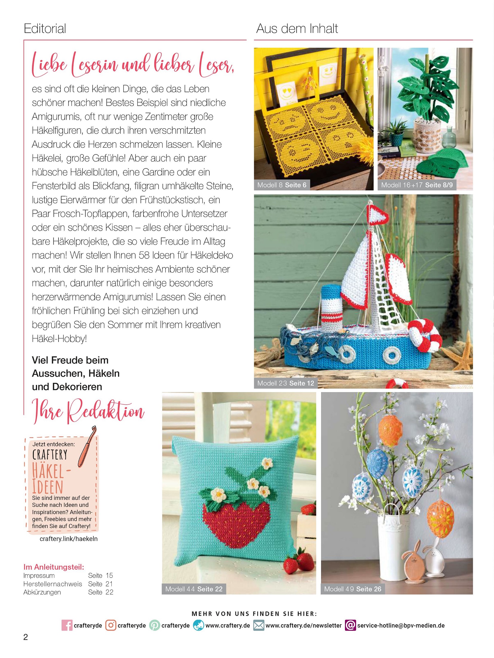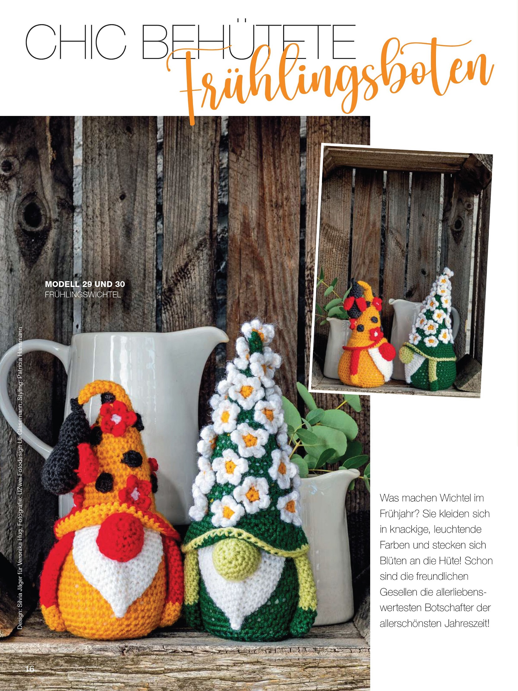 Немецкий журнал по вязанию крючком. В номере: очаровательные амигуруми, милые вязаные цветы, красочные украшения для окон и столов, а также полезные кухонные принадлежности. Мы представляем 58 идей для вязания крючком.