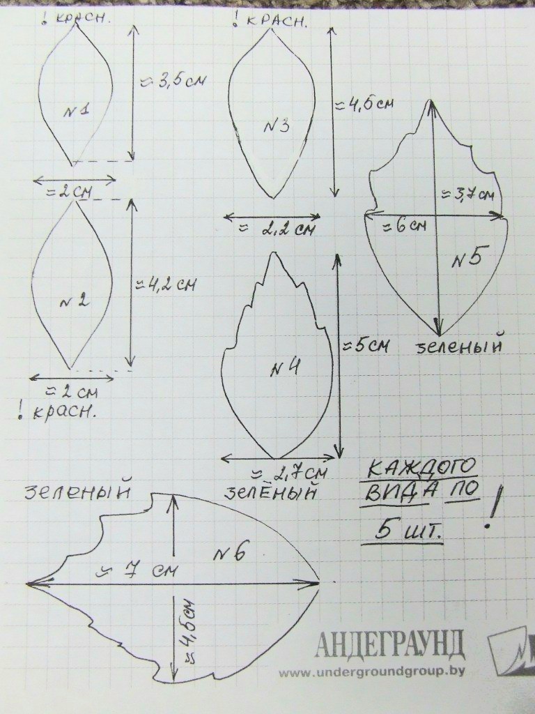 Пуансеттия из фоамирана. Шаблоны