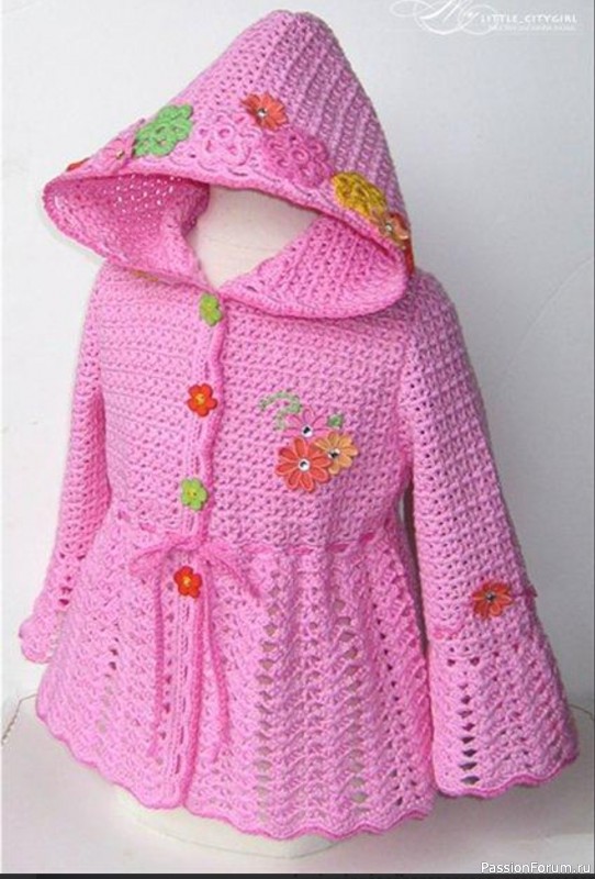 Вязание для девочек, розовый жакет с капюшоном очень хорошо для весны