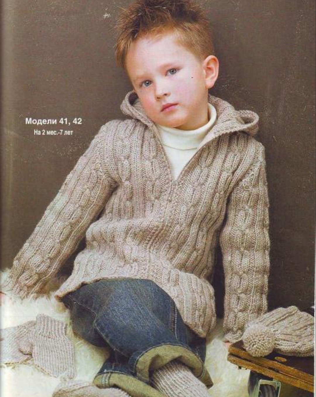 Серый жакет на молнии и шапочка для мальчика. Описание