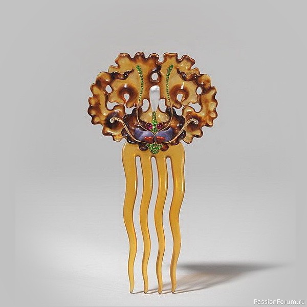 Гребень из рога, украшенный золотом, бриллиантами, изумрудами, эмалью и жемчужиной, дизайн Вильгельма Лукаса фон Кранаха, изготовлен фирмой братьев Фридлендер, около 1902-1903 гг., из коллекции Баварского национального музея.