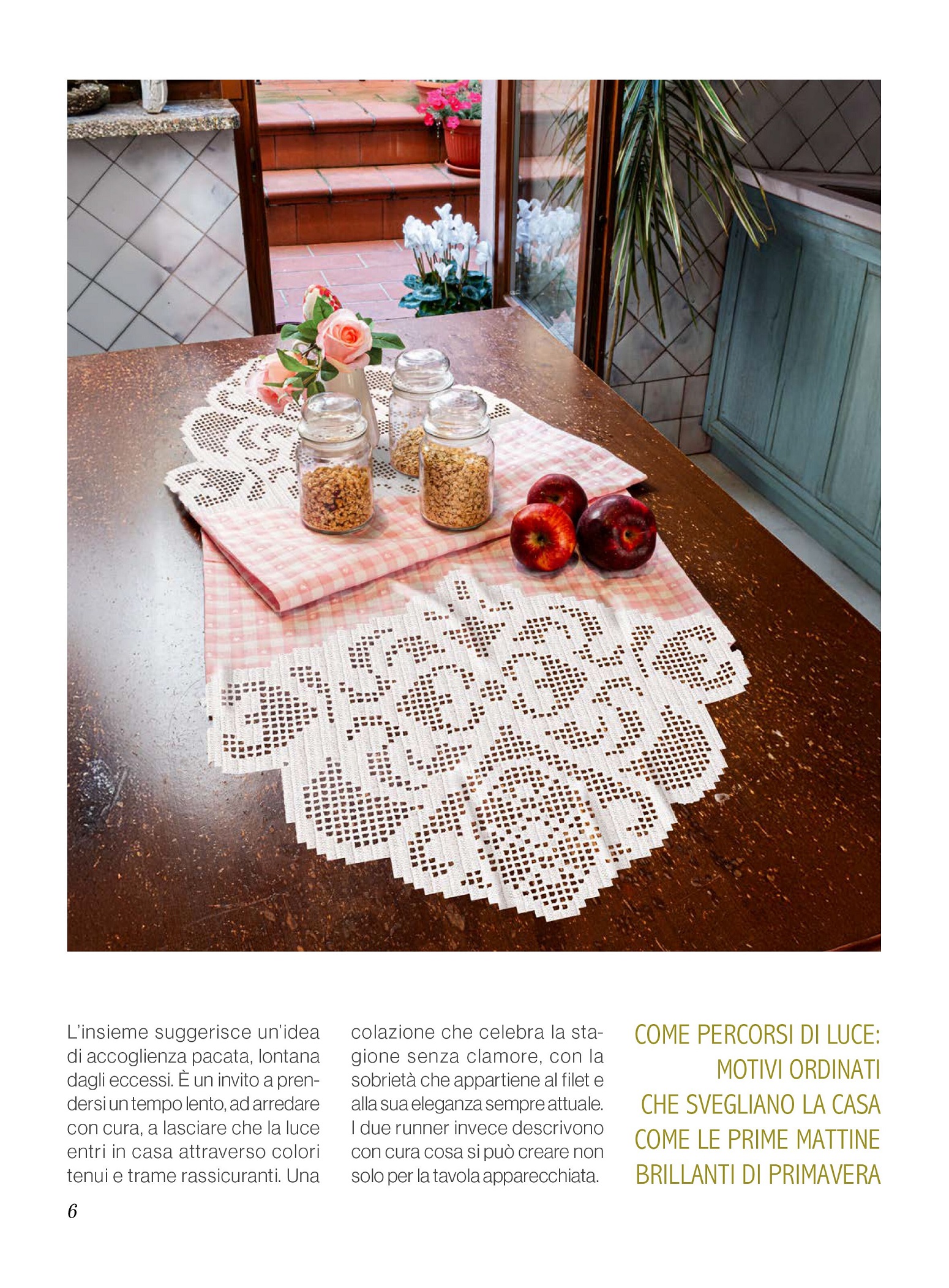 Итальянский журнал по вязанию крючком. В каждом номере проекты и идеи для создания уюта в вашем доме: занавески, бордюры, салфетки, кайма, связанные крючком в филейной технике. А также сумки, пледы, подушки, коврики, прихватки и многое другое.