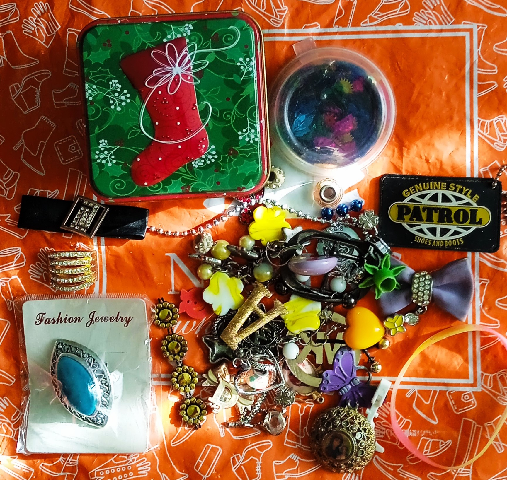 В этой красивой металлической коробочке - приехало целое богатство! Брошь - я планирую её носить, мне подходит. Различные пришивные украшалочки в круглой коробочке. Множество ненужных нужностей, они мне очень пригождаются в изготовлении стимпанка(уже есть идея: сделать ученику органайзер, он ныне работает нач. пожарного расчёта, а канцелярские принадлежности держит в обычной банке. Здесь есть круг с его инициалами МК). Огромное мерси, Людмила!