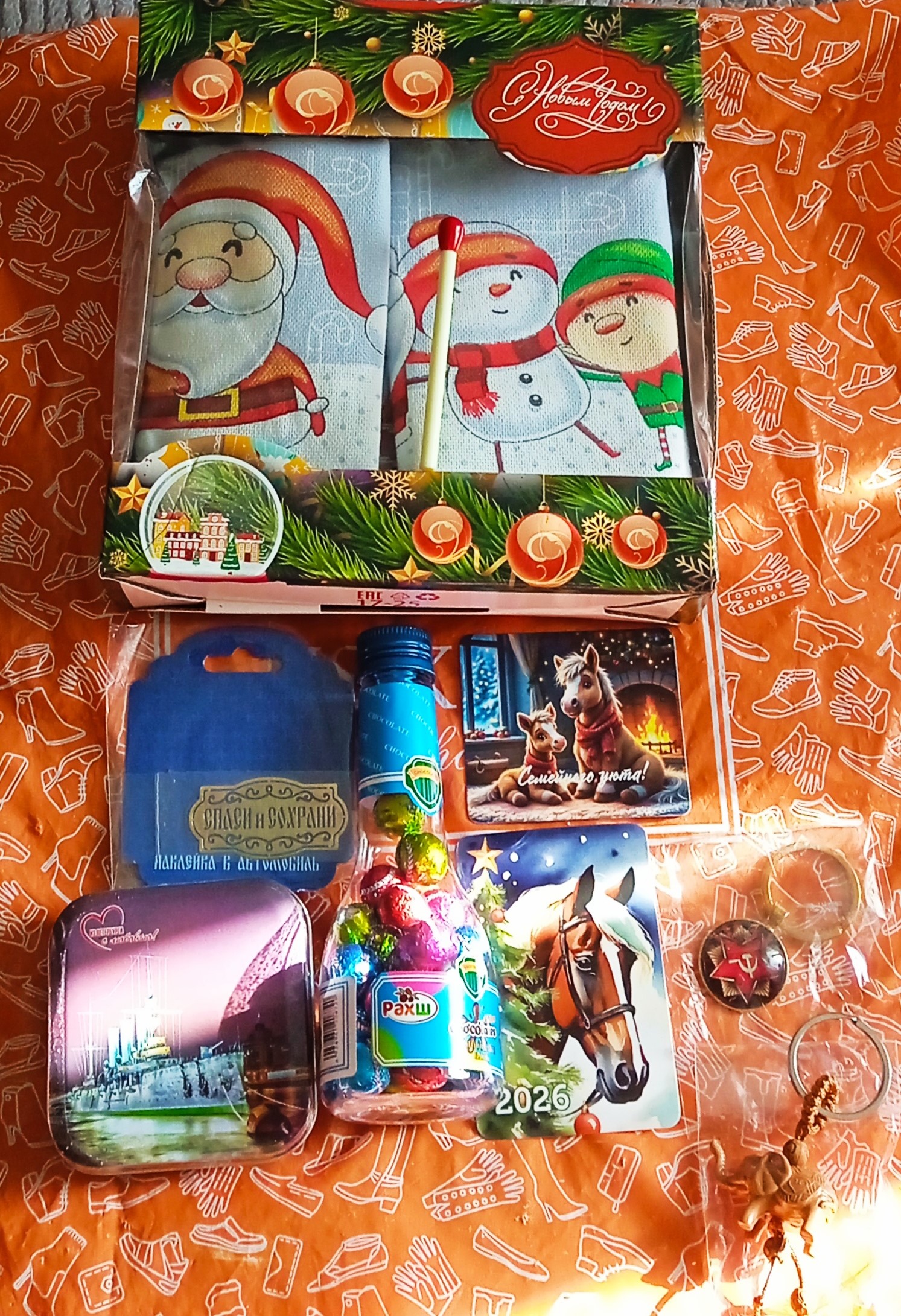 А ещё коробки со сладким символом года - Огненная Лошадь с карамельным вкусом. "Спасибо!" - передают девочки. Они очень рады, что Новый год продолжается!