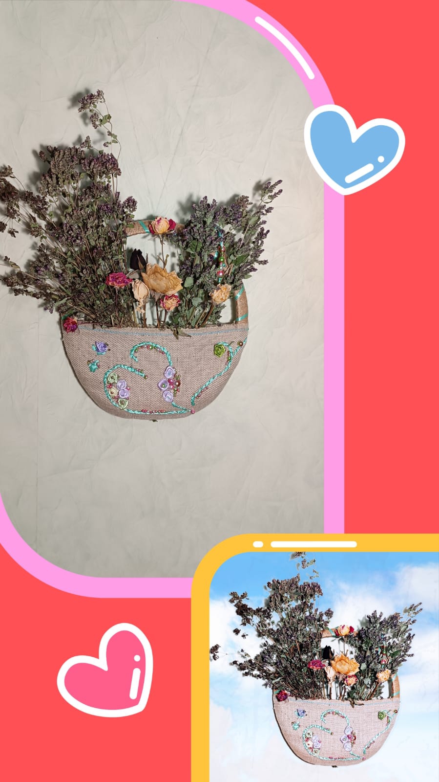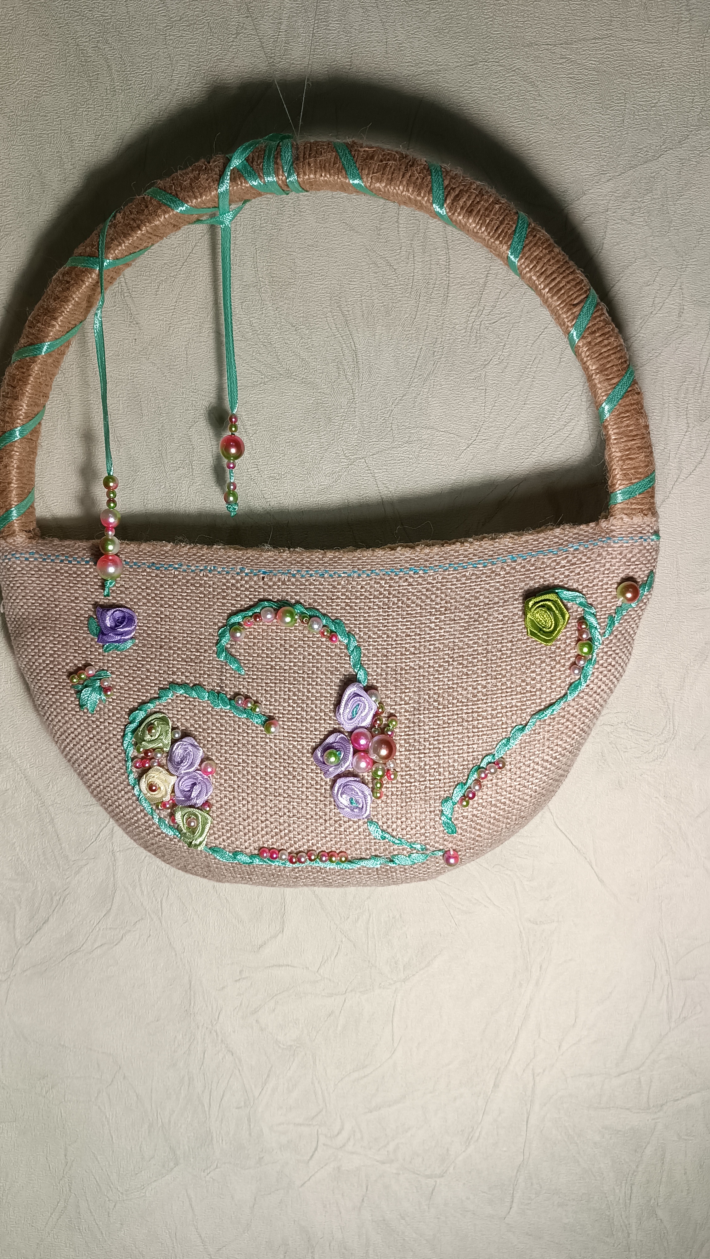 Вот такая , не знаю как назвать, вазочка, корзиночка, подвеска. Делается просто и быстро. Материалы для работы любое кольцо, джут, мешковина, лента, бисер, бусины для вышивки, ножницы иголочки и хорошее настроение.