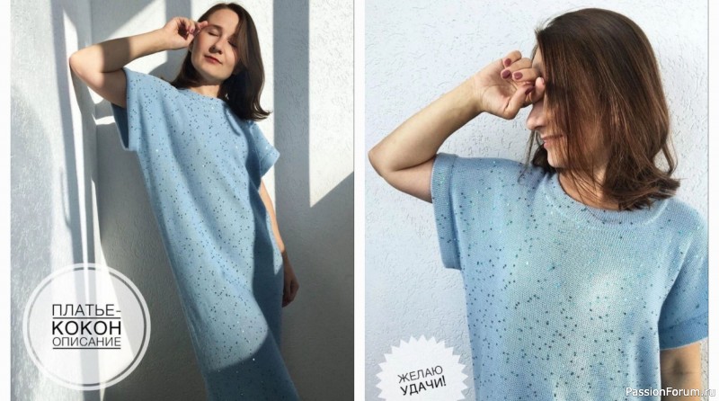 Платье-кокон с нежной текстурой и блестящими пайетками