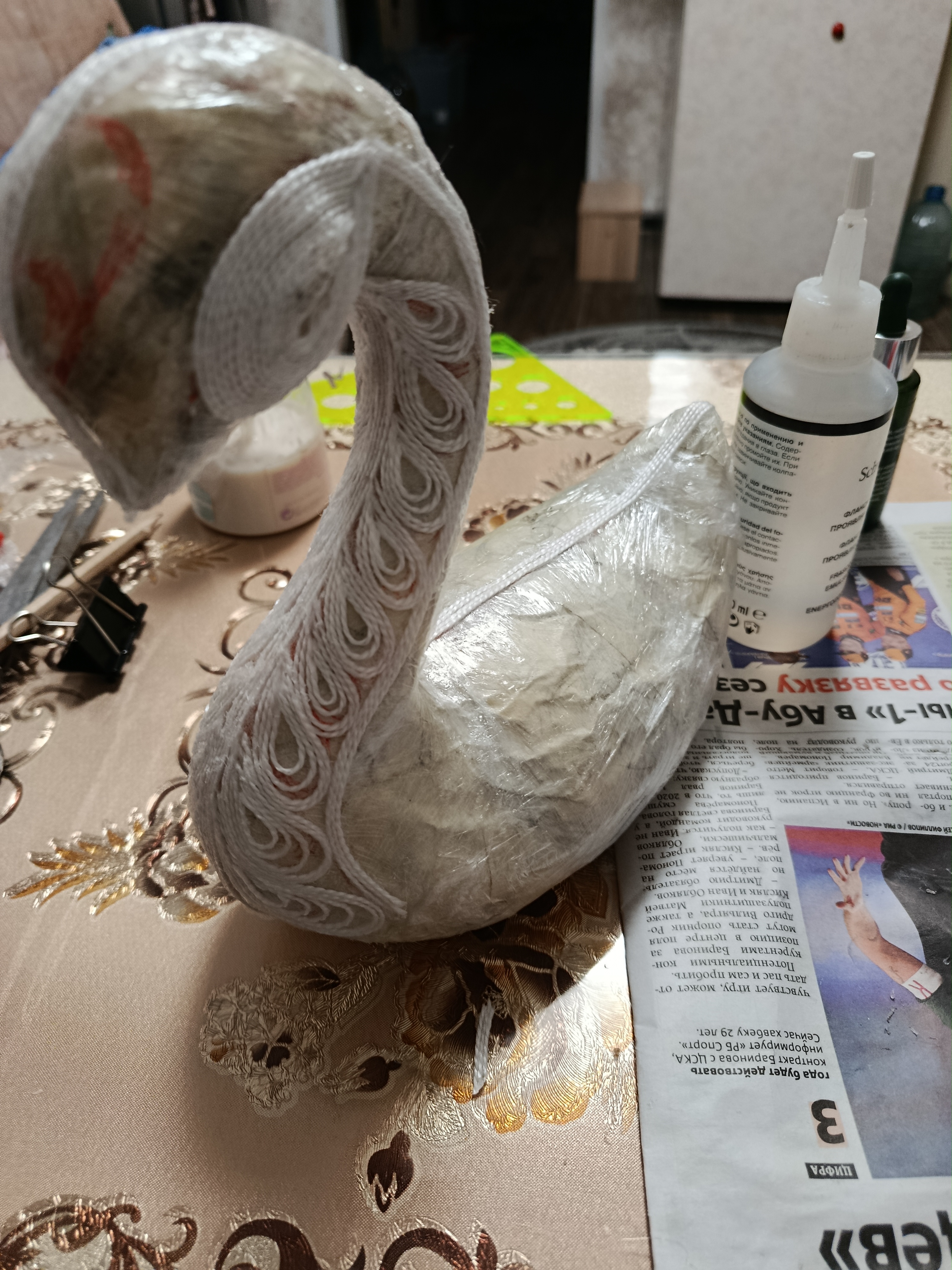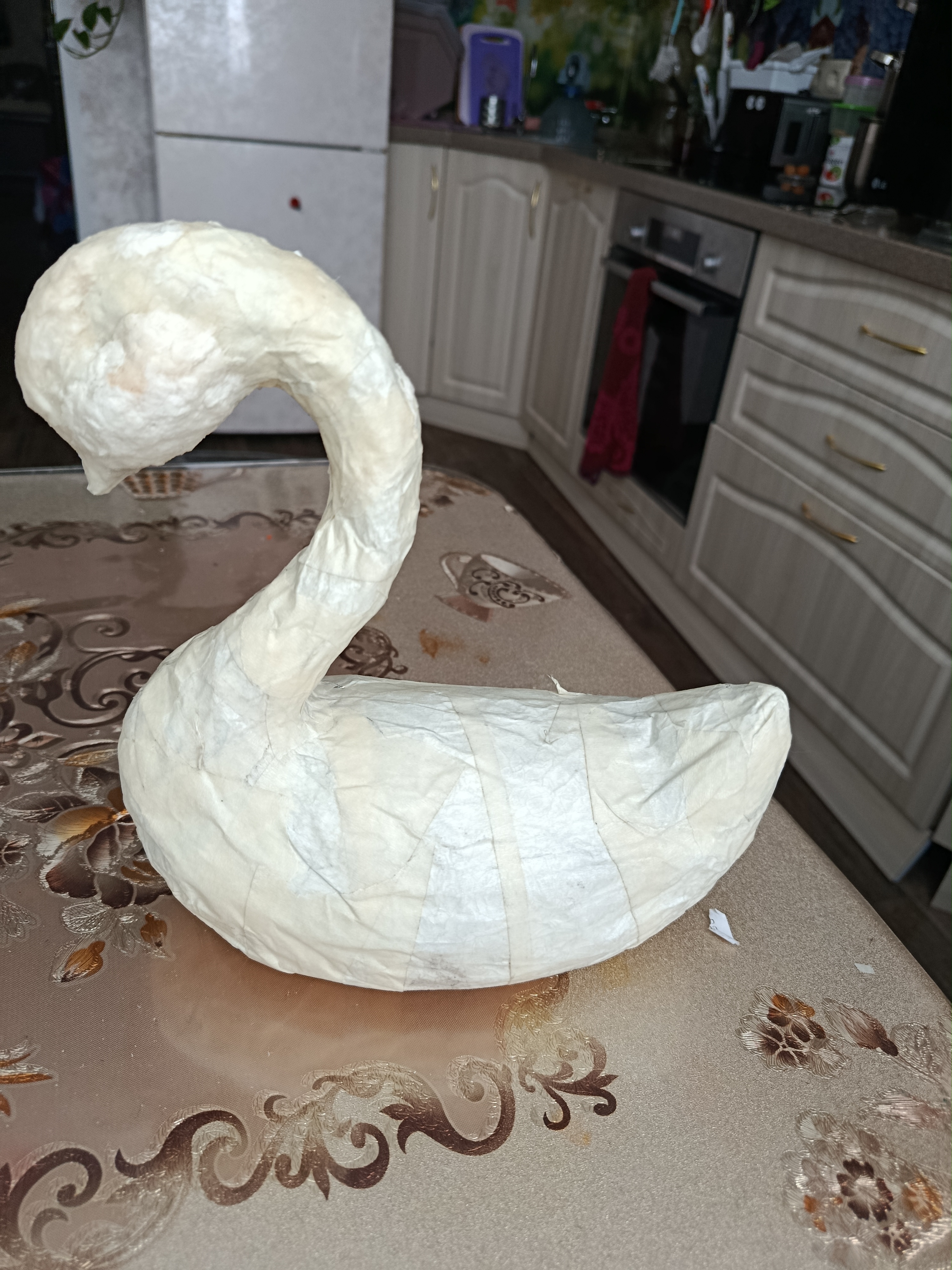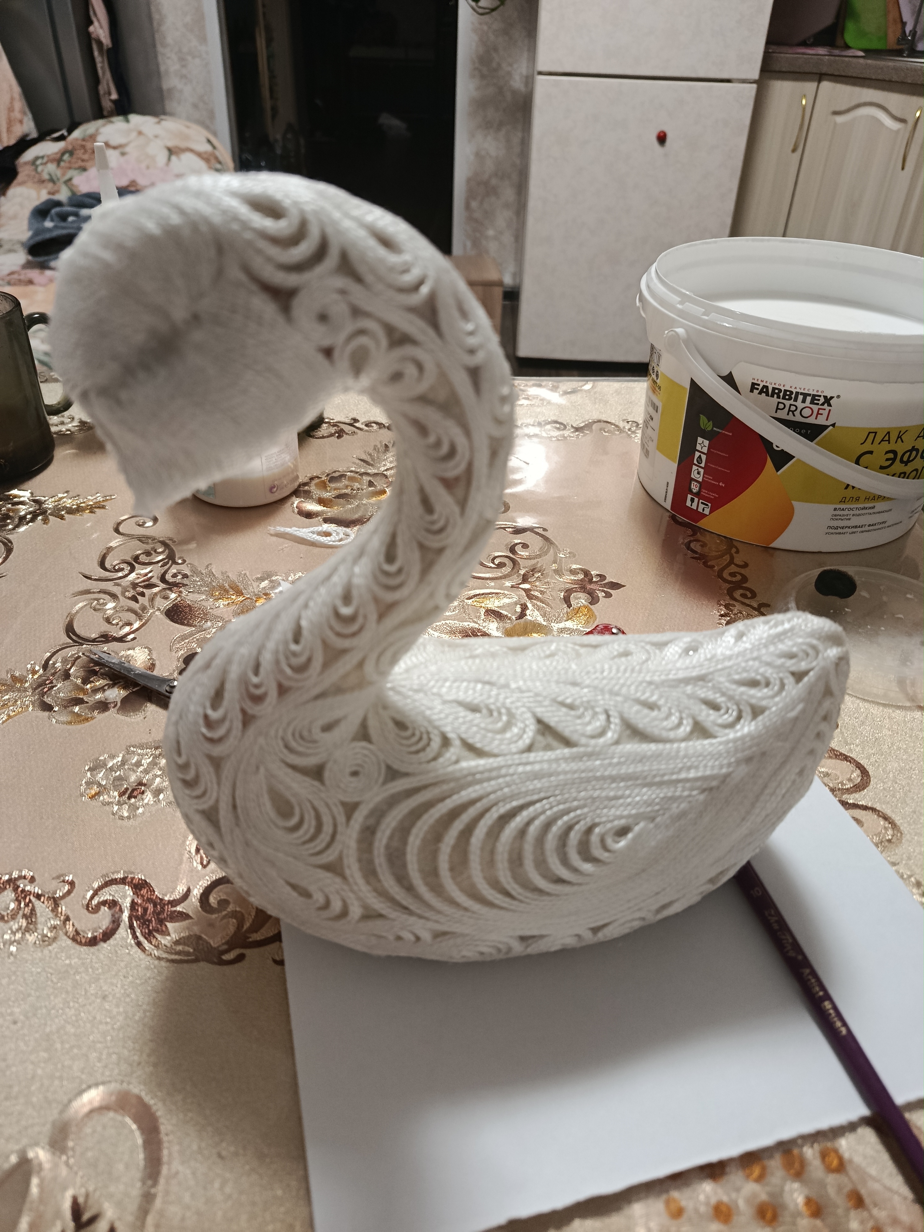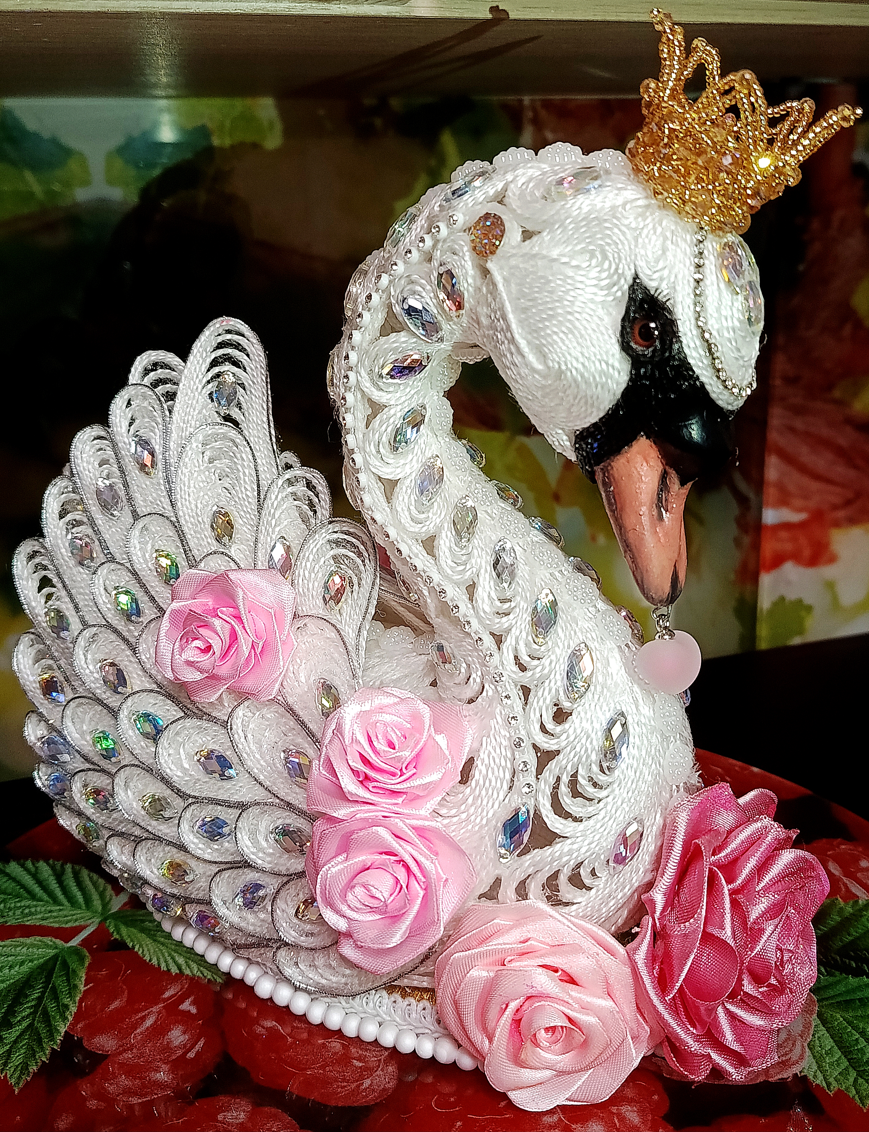 Лебёдушка рождалась долго. Много придумывалось сразу, а что-то приходилось обдумывать и днями. Самыми сложными в ее изготовлении стали клюв и корона. Проще всего было бы сделать в той же технике, но было бы не то. Очень старалась максимально приблизиться к оригиналу. Для меня было это ну очень непросто: рисовать я не умею от слова совсем. Эти задачи решились с помощью смешения техник. Такая практика мне понравилась. Буду использовать ее и дальше.