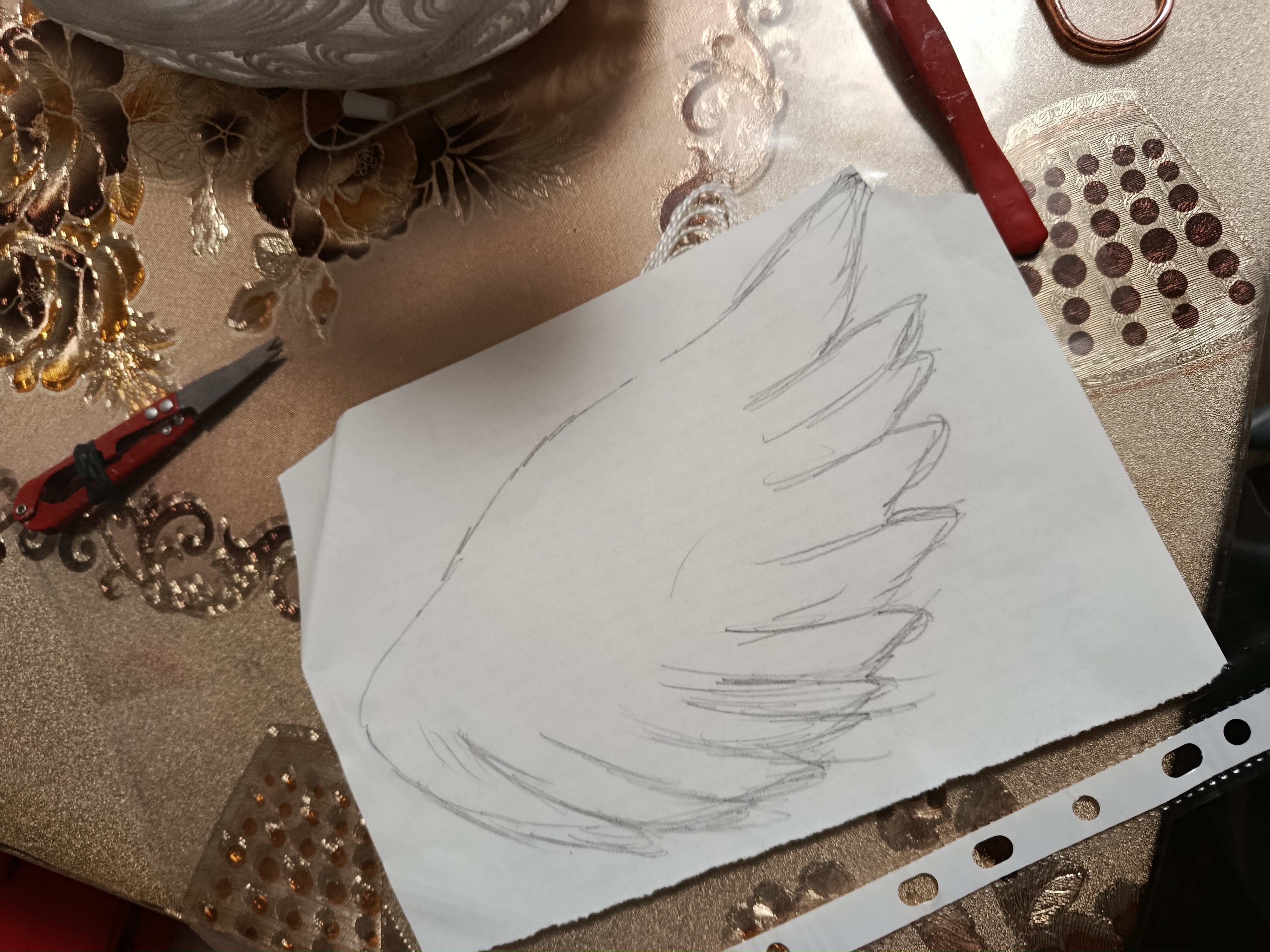 Крылышки сворачиваем в трубочку, закрепляем резинкой и откладываем в сторону. Так они приобретут лёгкий изгиб и будут выглядеть естественно.