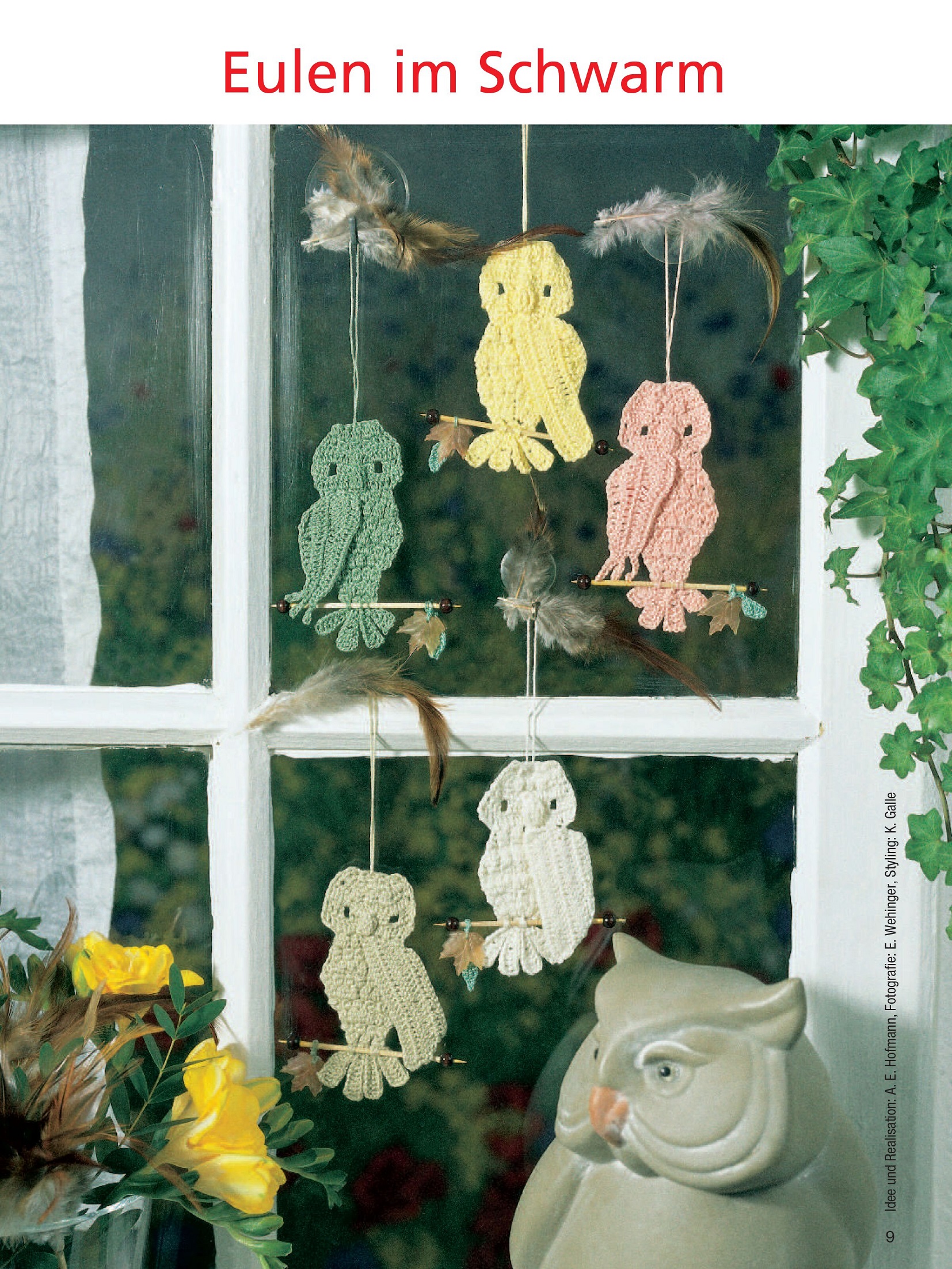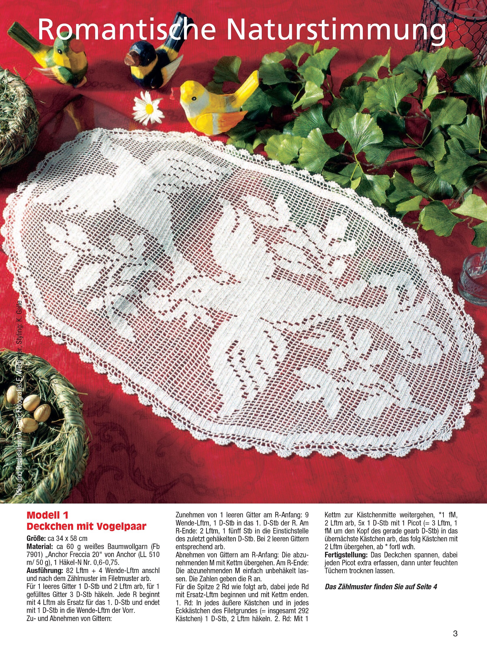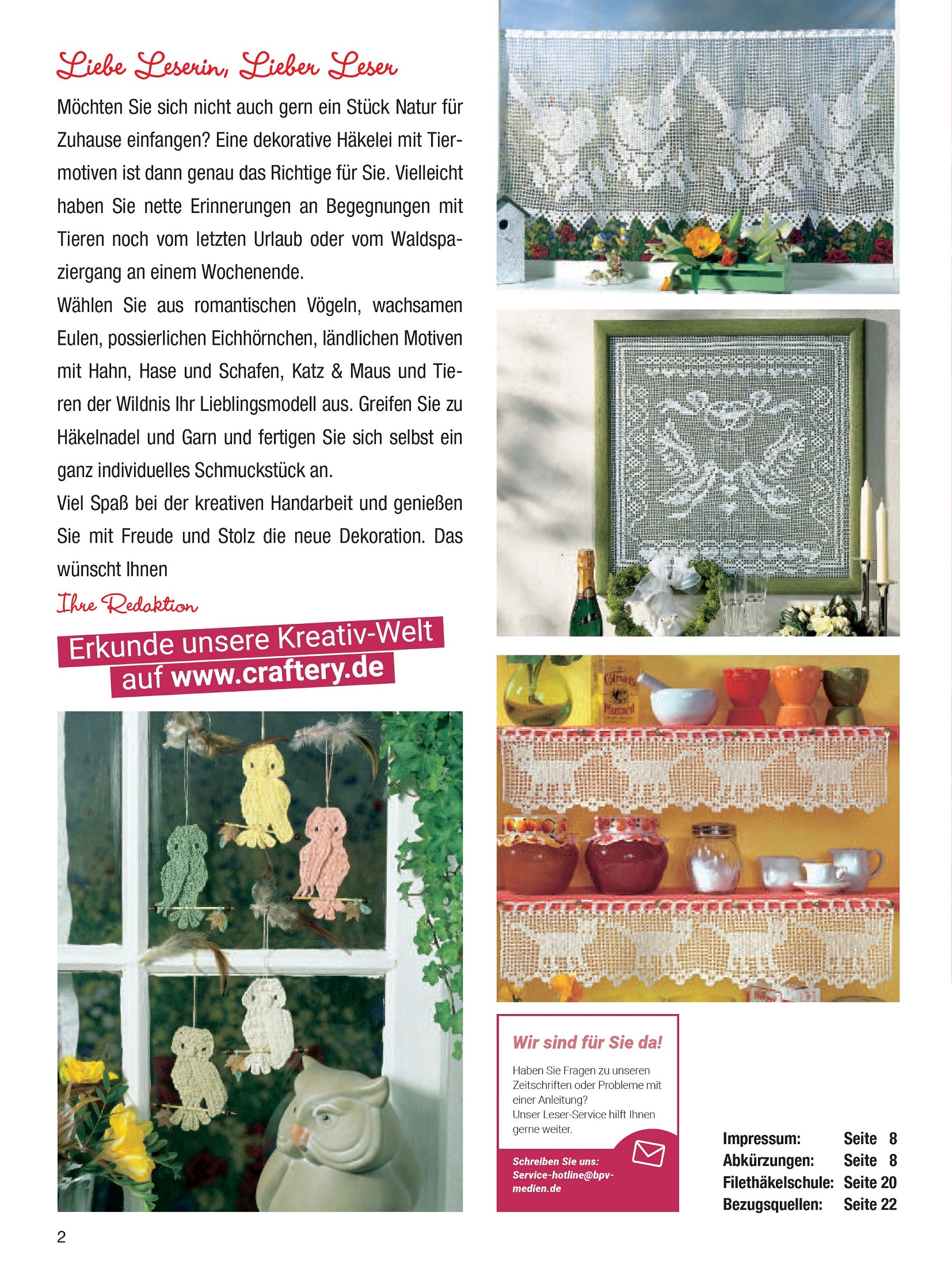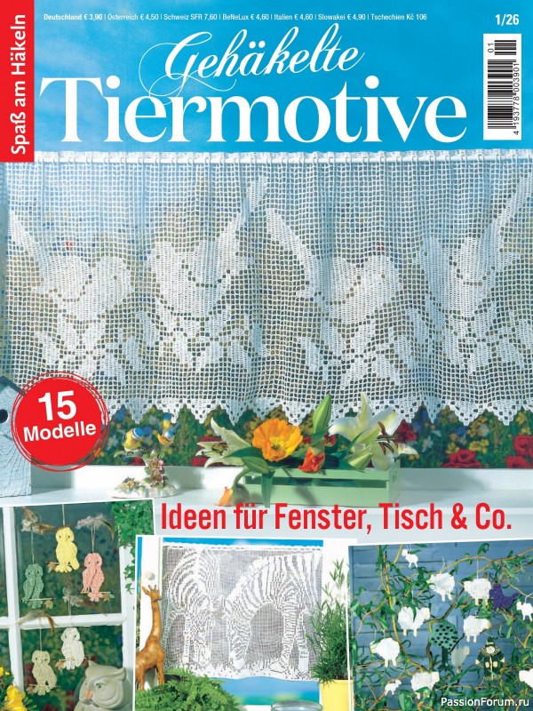 В номере представлено декоративное вязание крючком с животными мотивами. Возможно, у вас остались приятные воспоминания о встречах с животными во время последнего отпуска или прогулки по лесу в выходные. Выберите понравившийся дизайн из романтических птиц, бдительных сов, очаровательных белок, пасхальных мотивов с петухами, кроликами и овцами, кошками и мышами, а также дикими животными.