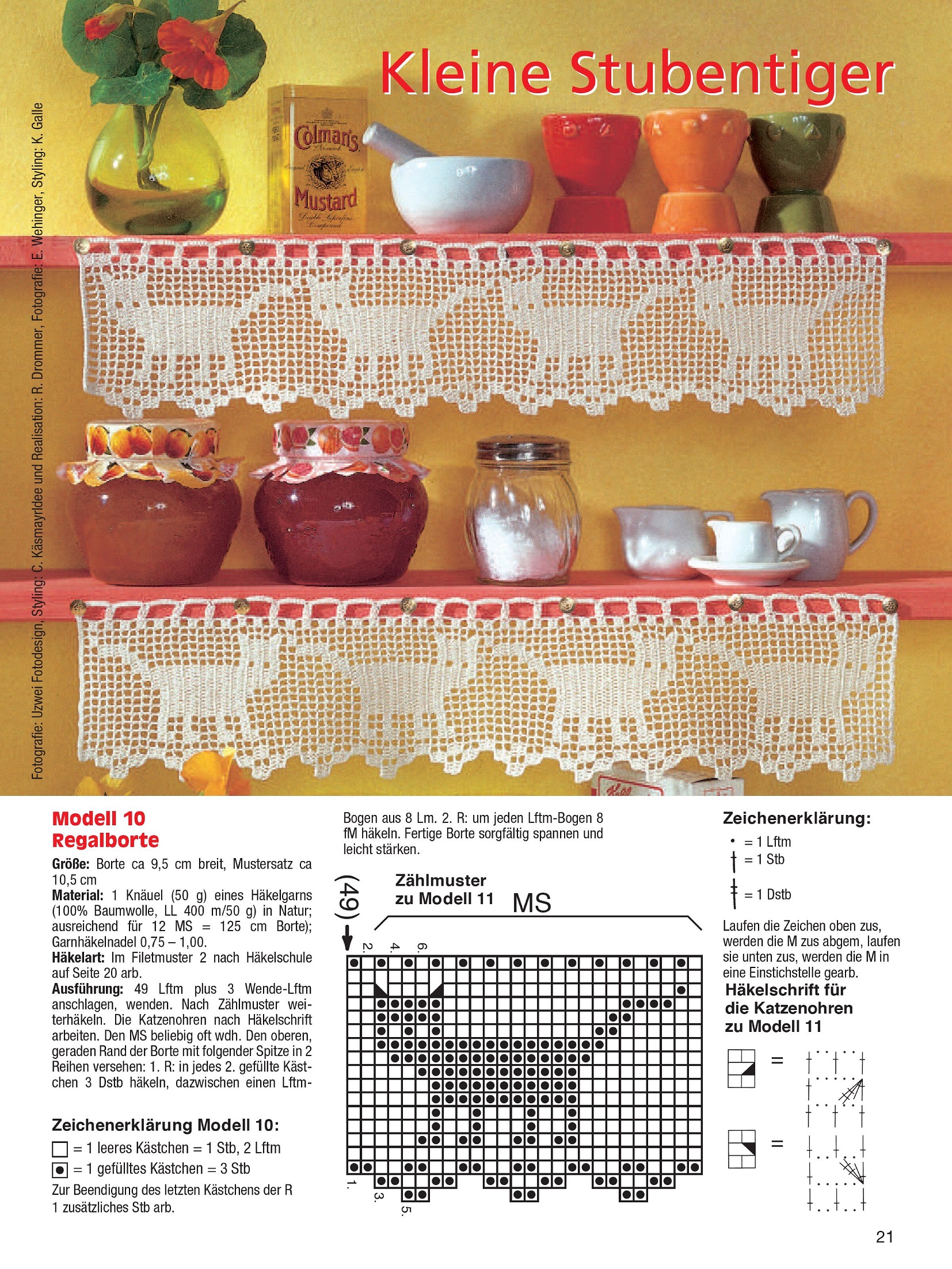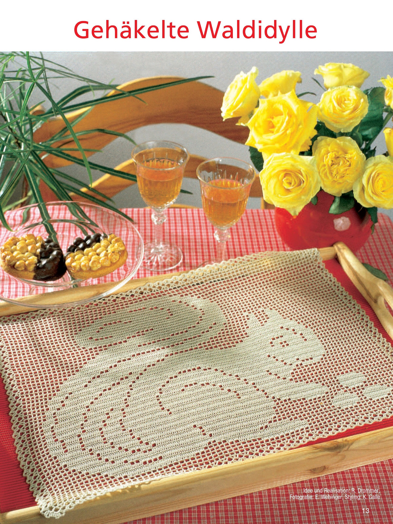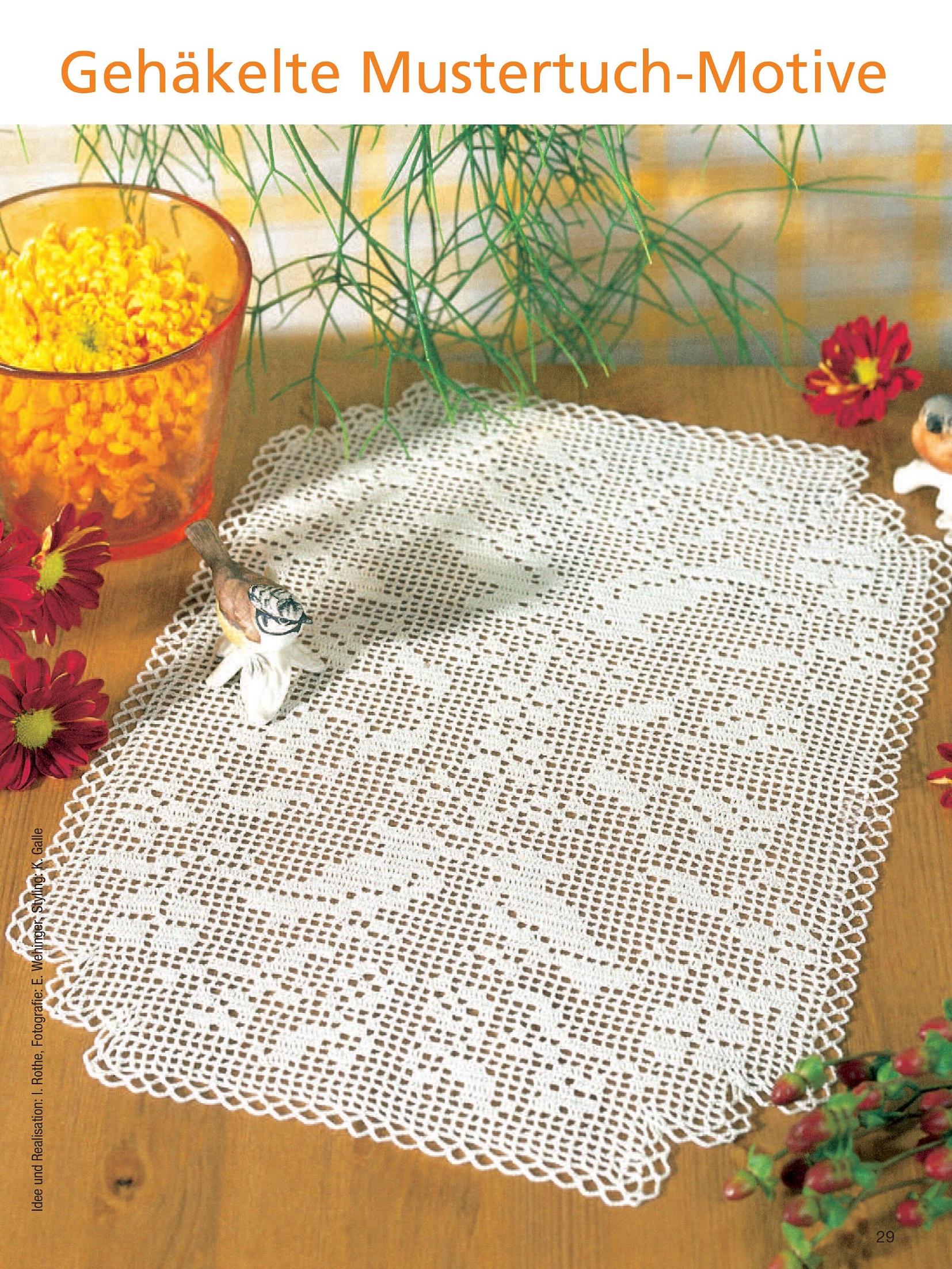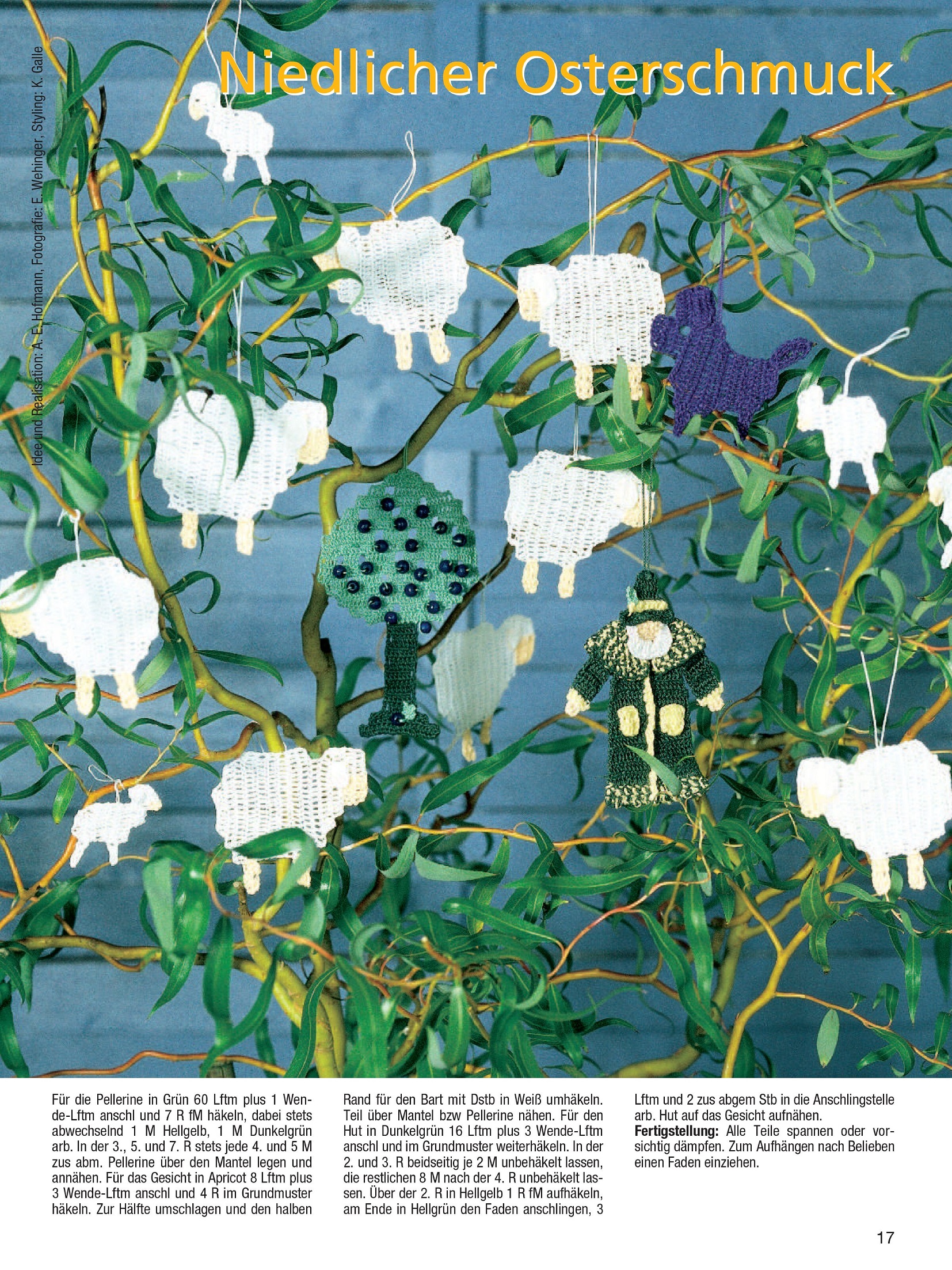 В номере представлено декоративное вязание крючком с животными мотивами. Возможно, у вас остались приятные воспоминания о встречах с животными во время последнего отпуска или прогулки по лесу в выходные. Выберите понравившийся дизайн из романтических птиц, бдительных сов, очаровательных белок, пасхальных мотивов с петухами, кроликами и овцами, кошками и мышами, а также дикими животными.