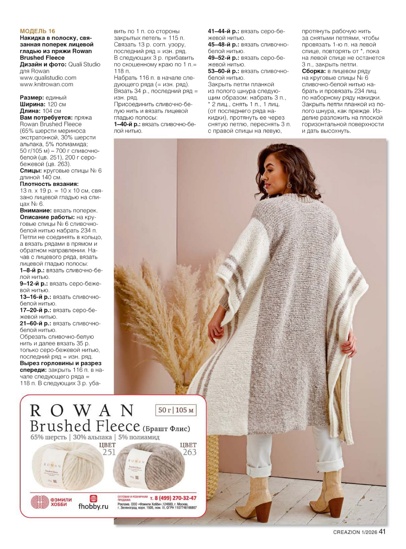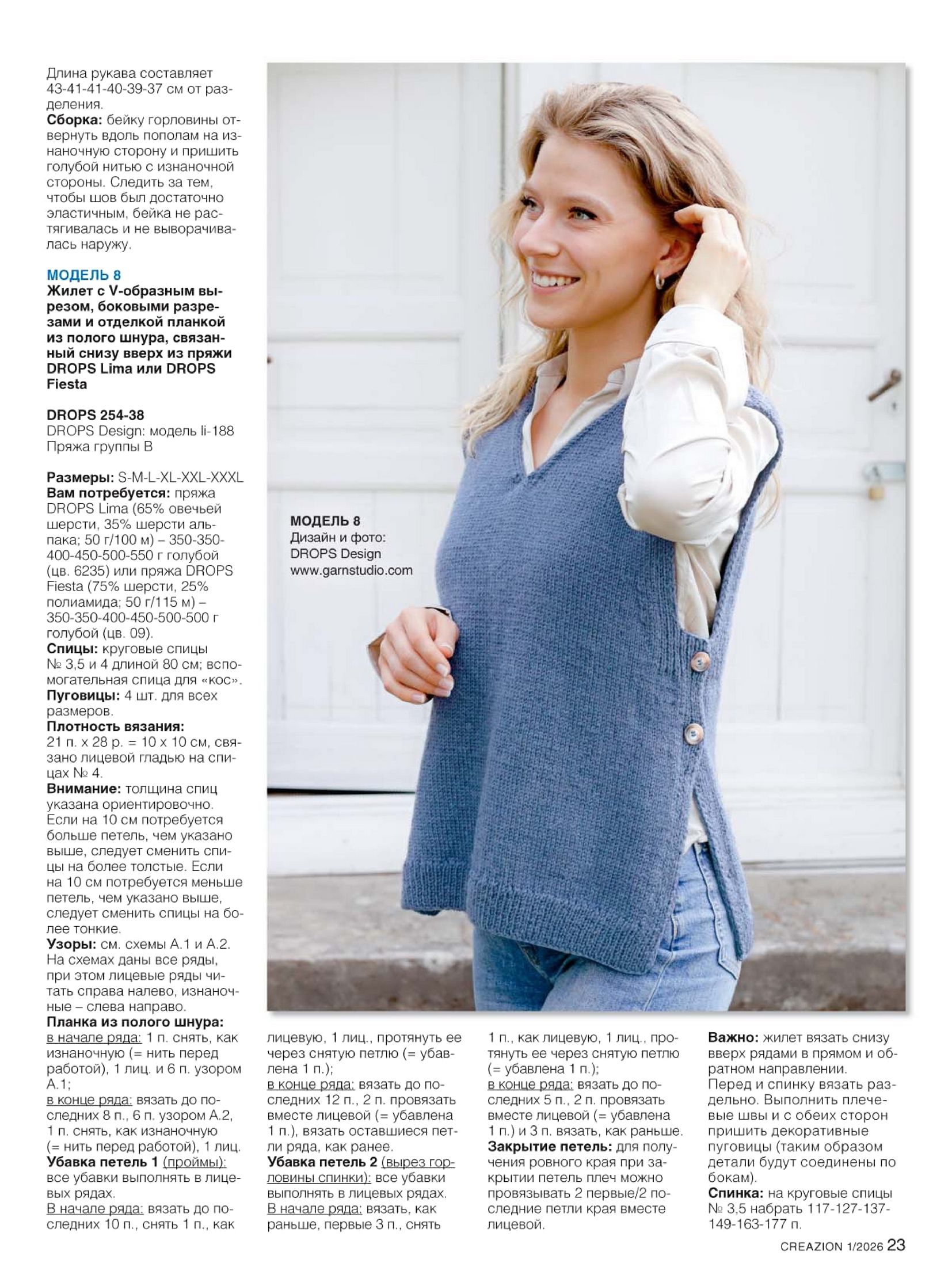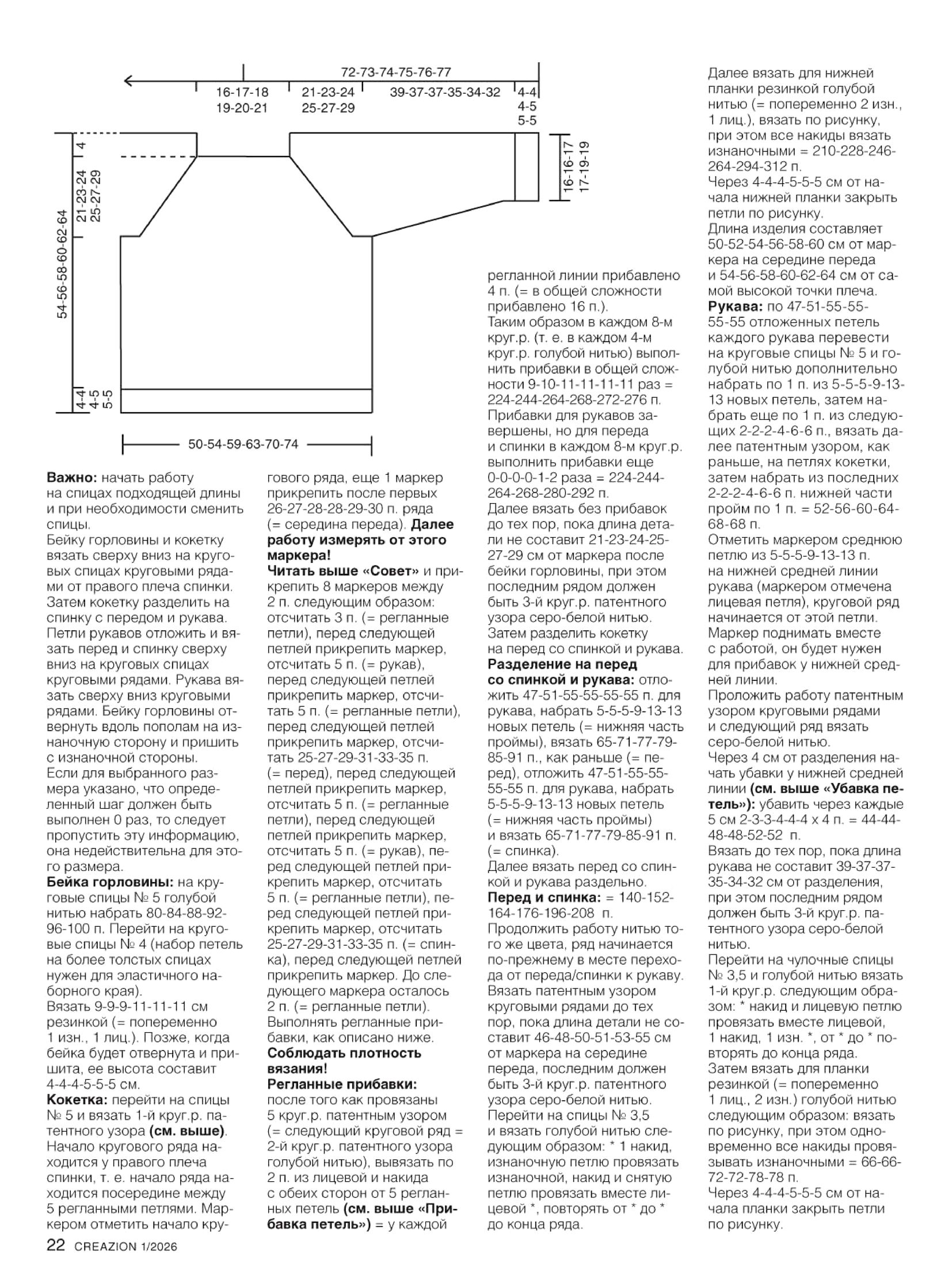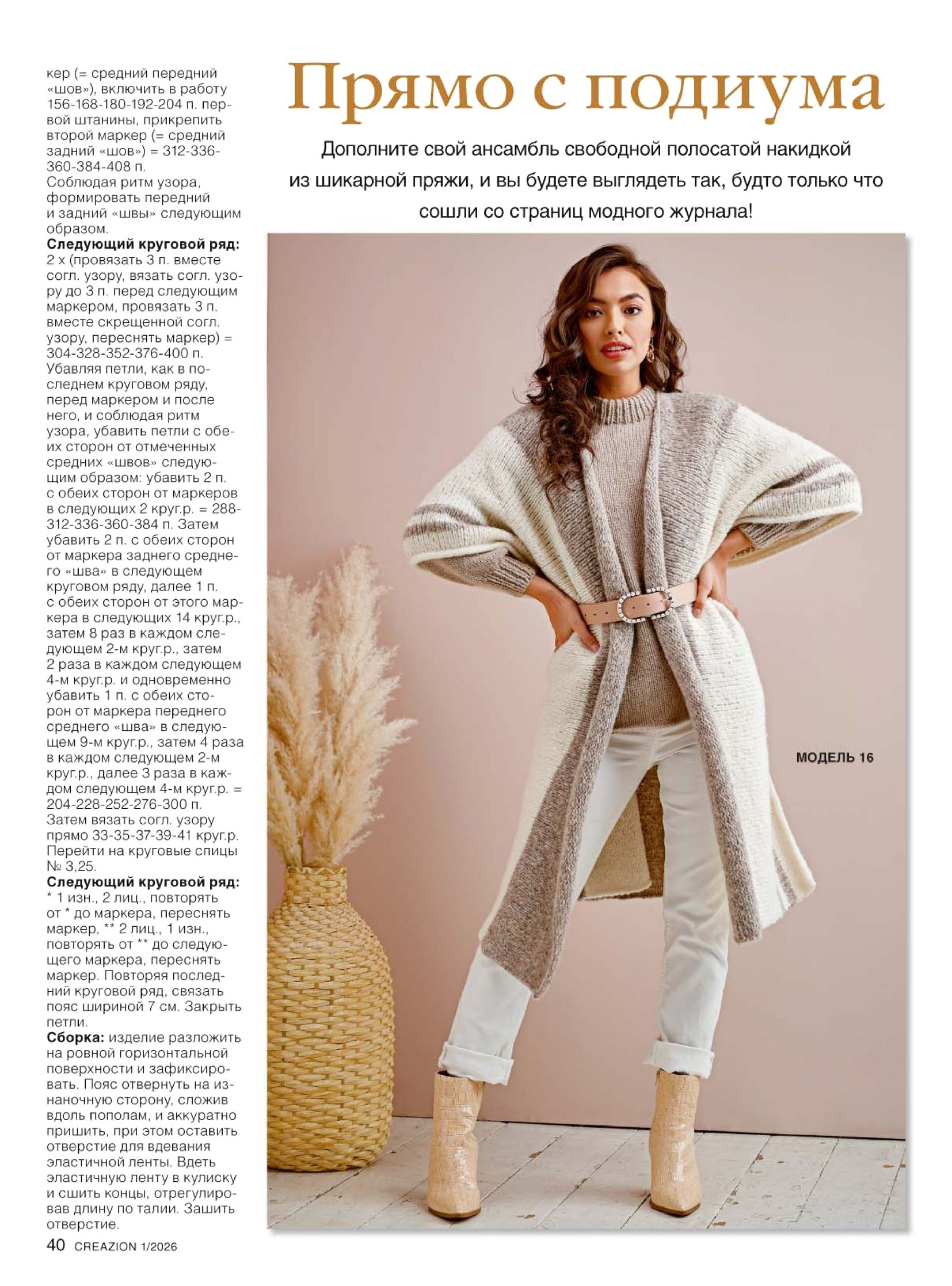 Журнал по вязанию предлагает практичные и одновременно креативные модели европейских дизайнеров. В номере коллекция трикотажа нового сезона, в которой успешно сочетаются базовые и оригинальные модели, связанные на спицах или крючком. Привлекательные детали, а также разнообразные узоры - жаккардовые, ажурные, рельефные - придутся по вкусу самым искушенным любителям вязания.