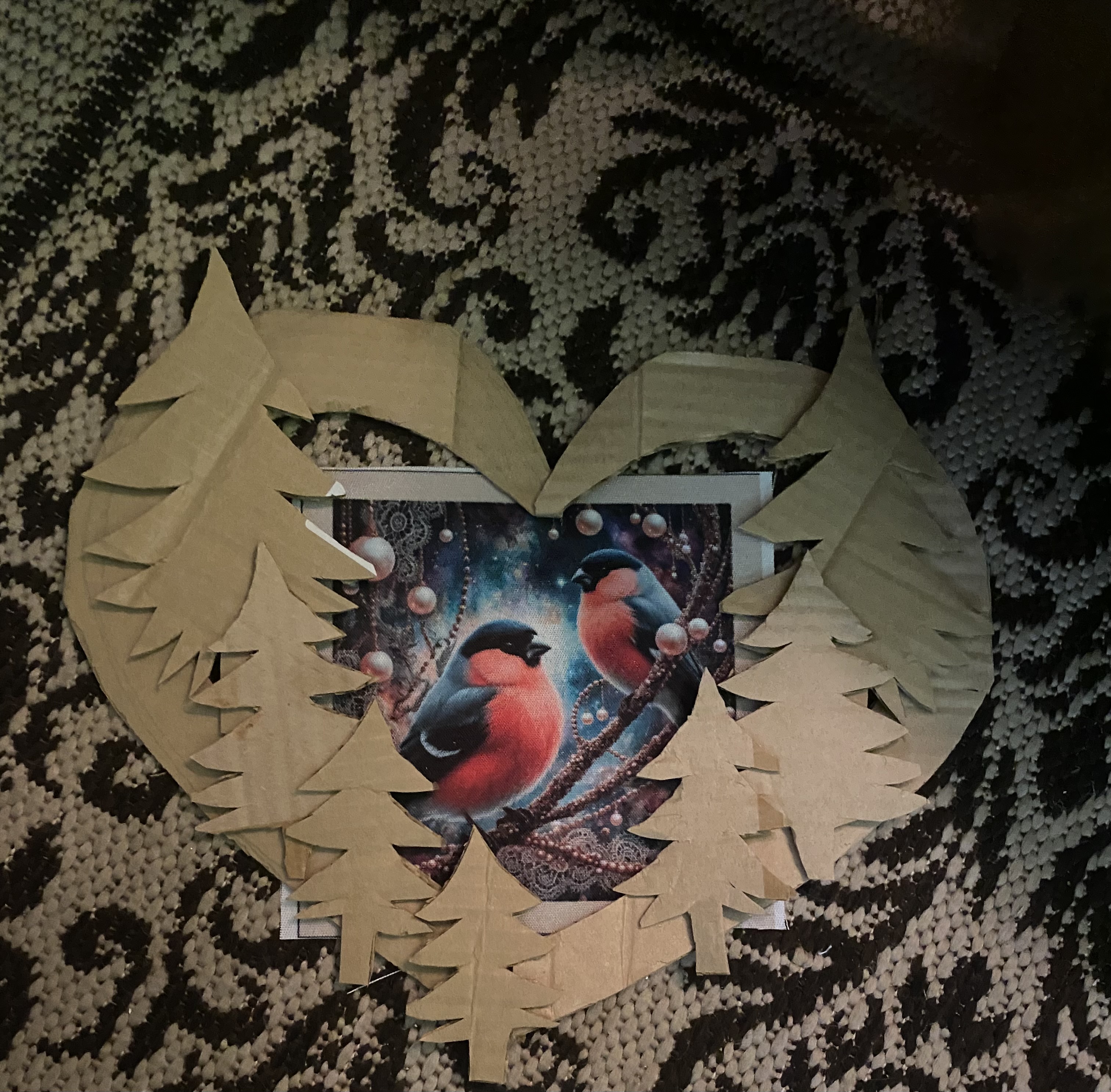 Зима в этом году богатая на снега, такая настоящая русская зима. И снегири прилетают к нам на кормушки, каждый день ими любуемся. Елки же - всегда были символами зимы. Поэтому, в моем понимании, так и выглядит сердце зимы.