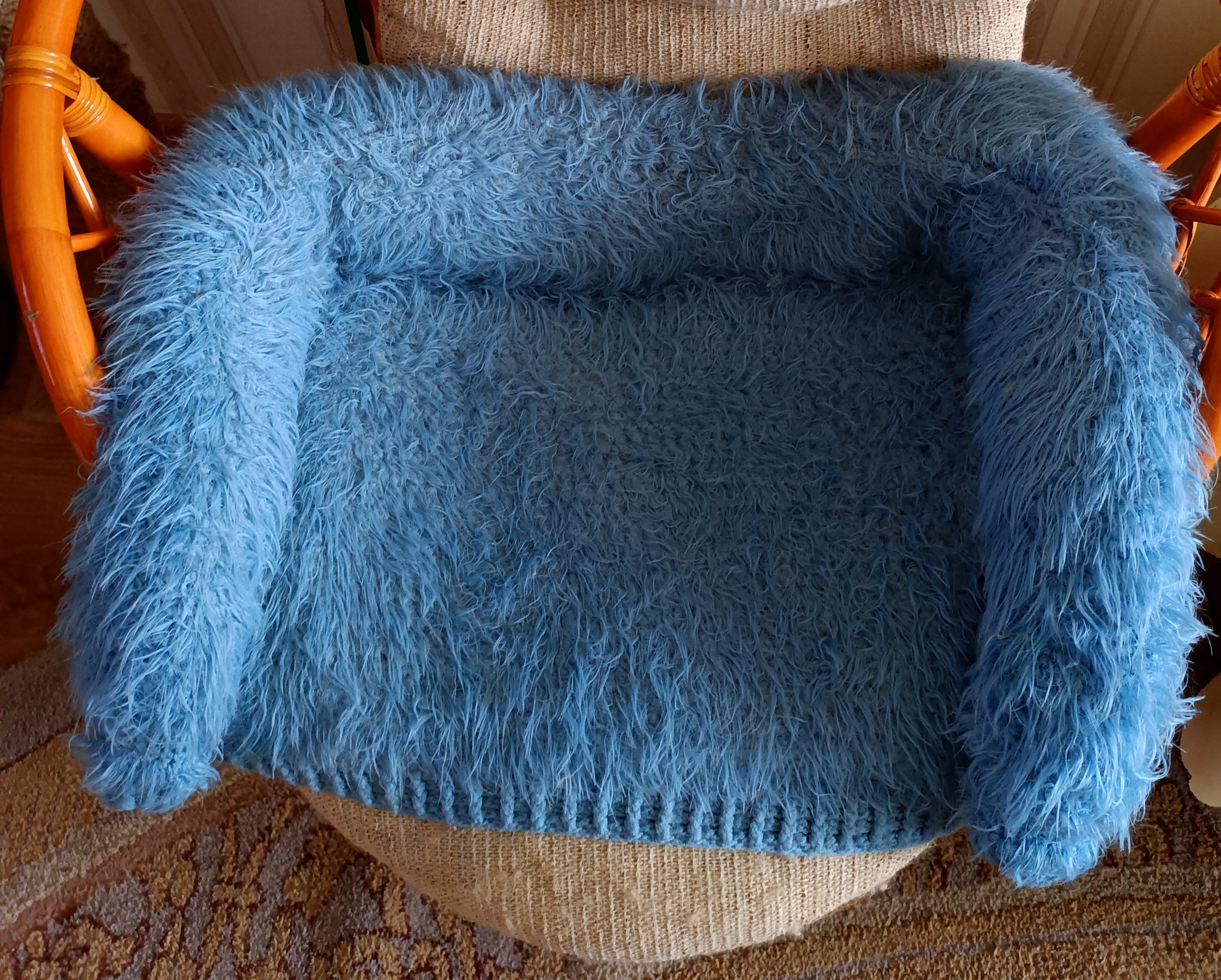 Доброго дня всем! Сегодня показываю диванчик для котиков. Диванчик сделала из кофточки,которую связала крючком для внука, когда он малышом был...потом и внучка в этой кофте на даче любила ходить.