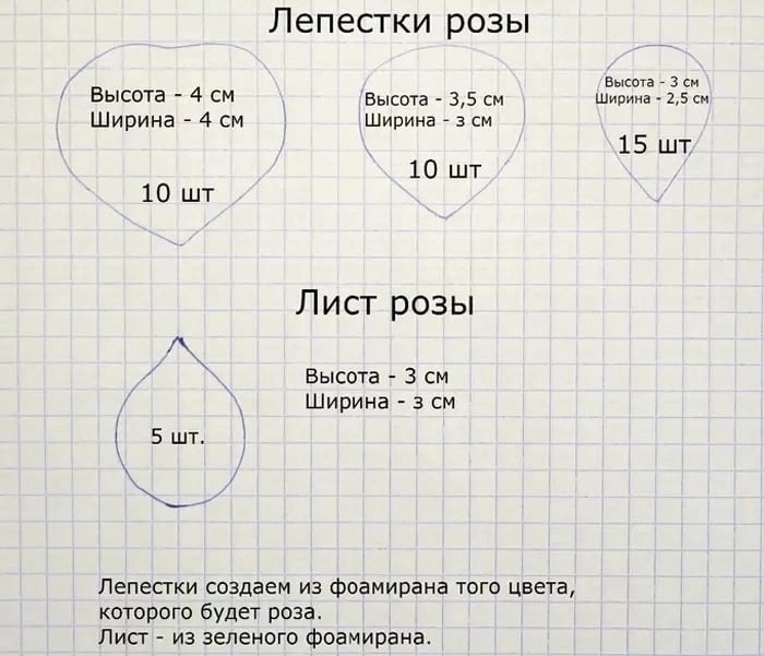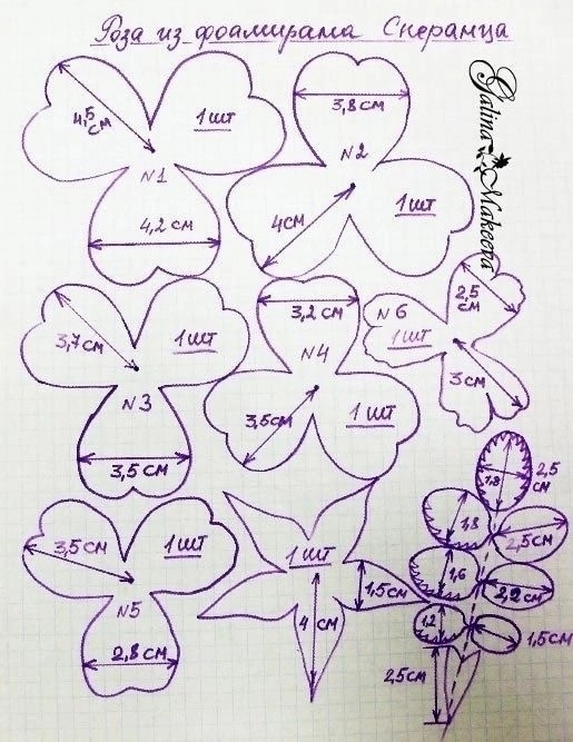 Розы из фоамирана. Шаблоны