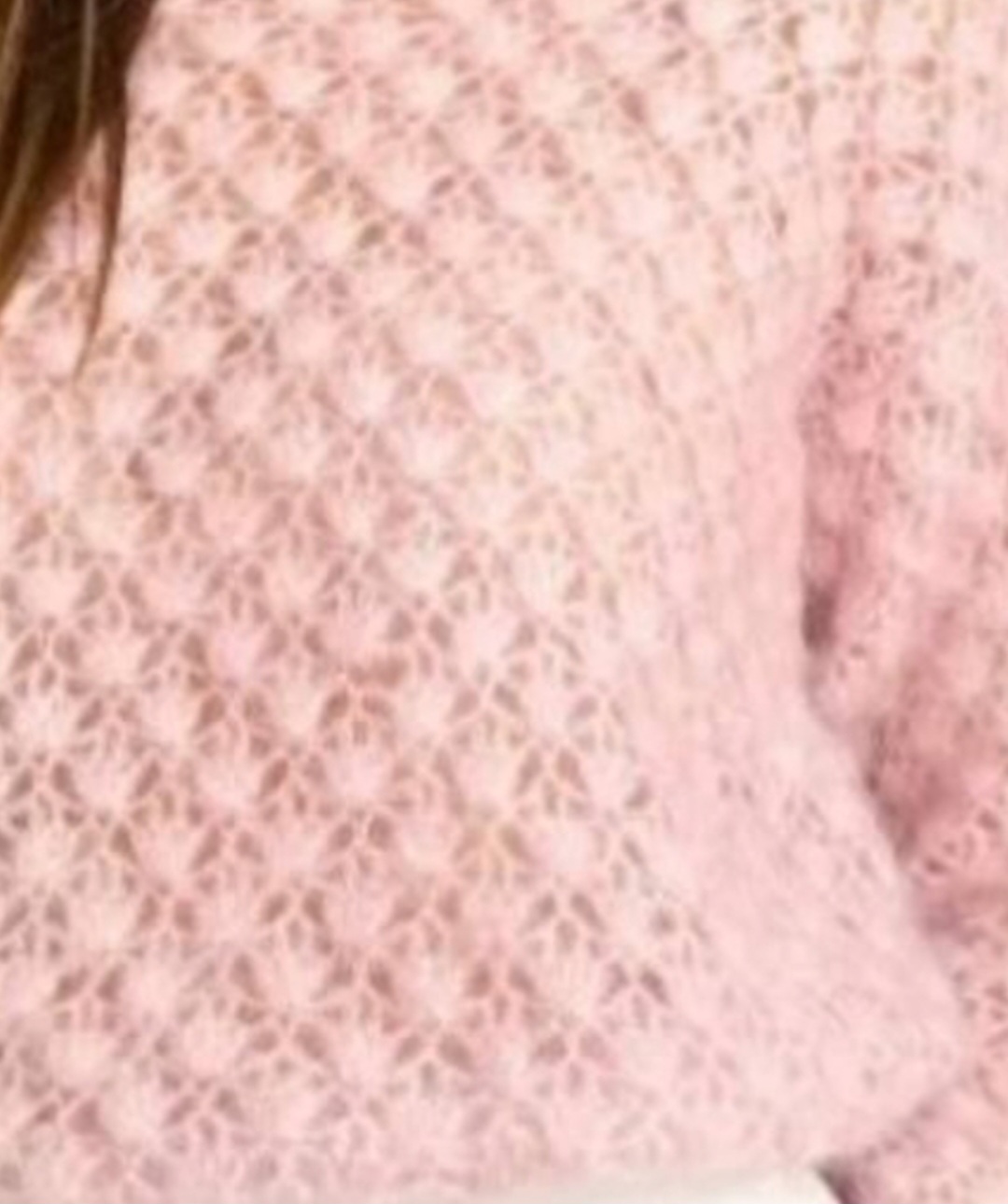 Его нежный розовый цвет и уникальная ажурная текстура делают его настоящим произведением искусства. Особое внимание привлекает изысканная вязка, которая создает легкость и воздушность. Этот свитер идеально подойдет для создания стильного образа в любое время года.