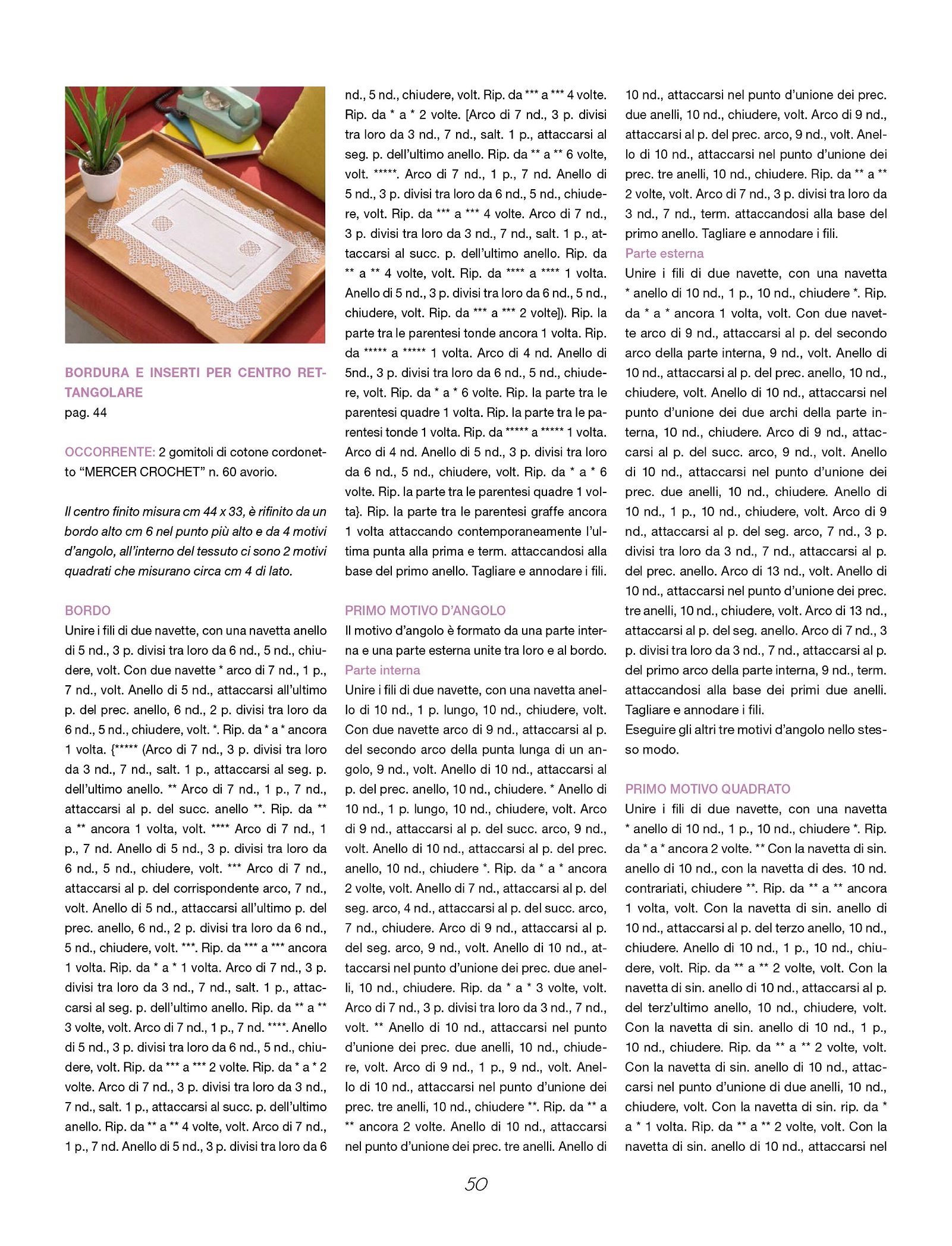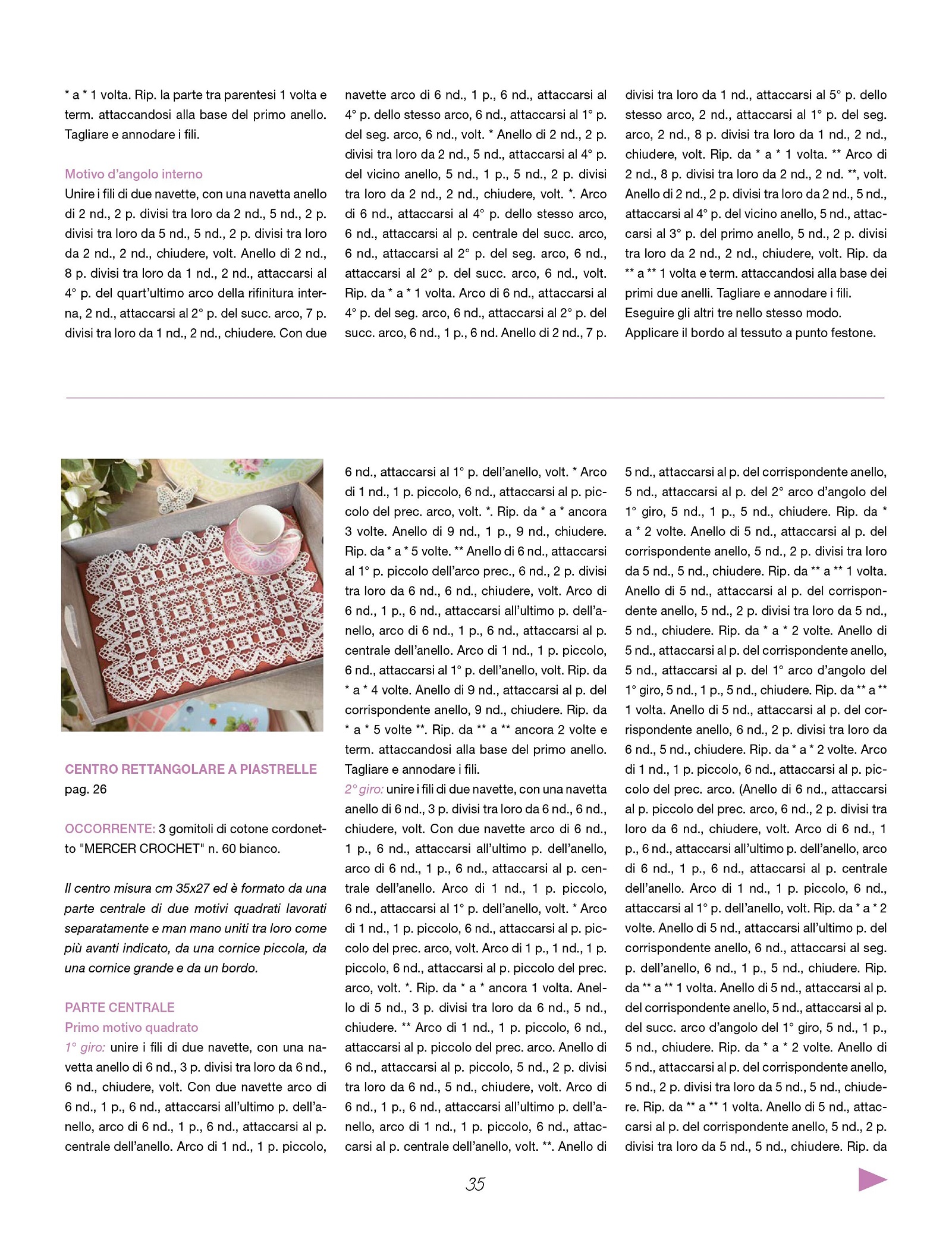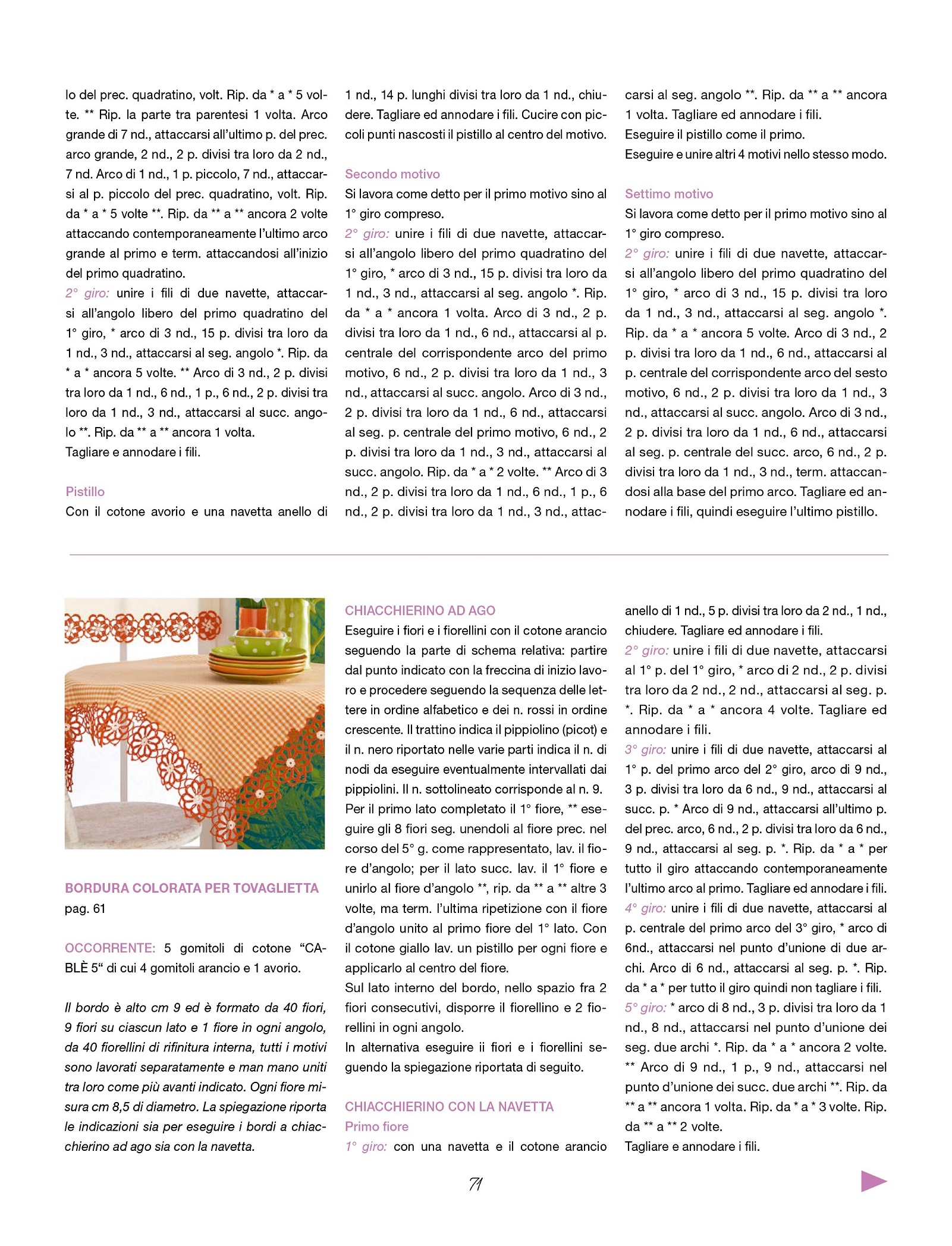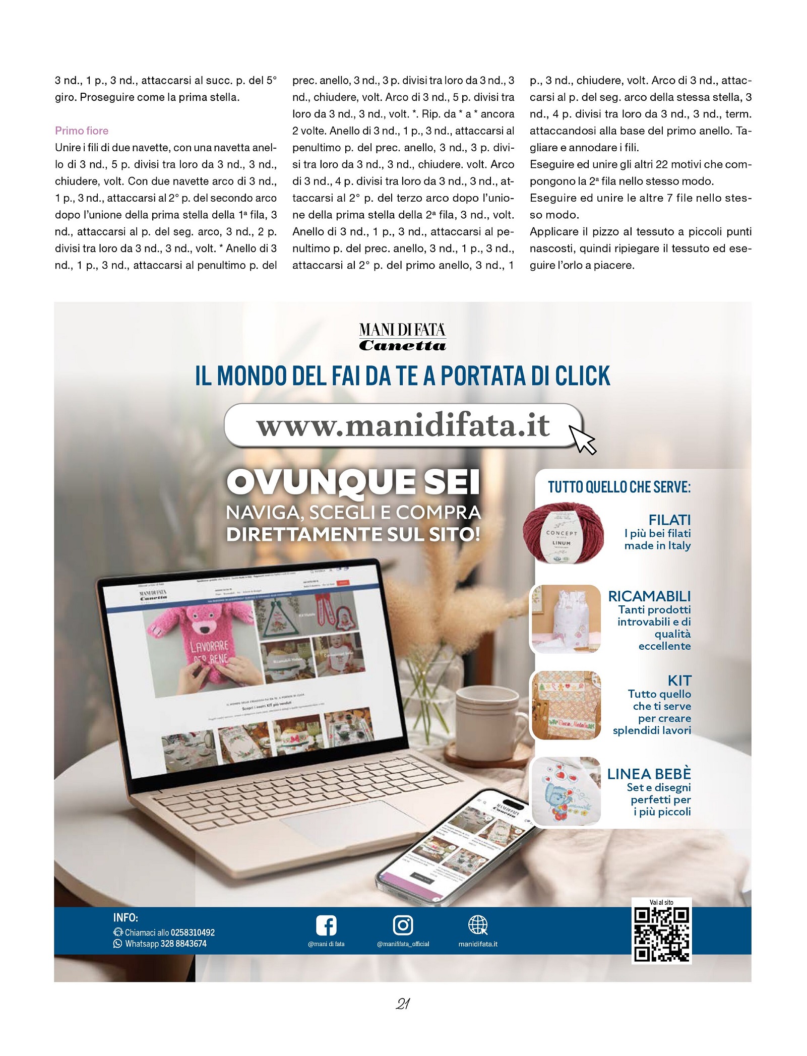 Приложение к журналу Mani di Fata - Speciale предлагает множество проектов уникальных, изысканных и креативных плетения кружев с помощью челнока и иглы, которые придутся по вкусу самым избирательным любителям новинок в мире моды. Прилагаются инструкции, схемы и описания.