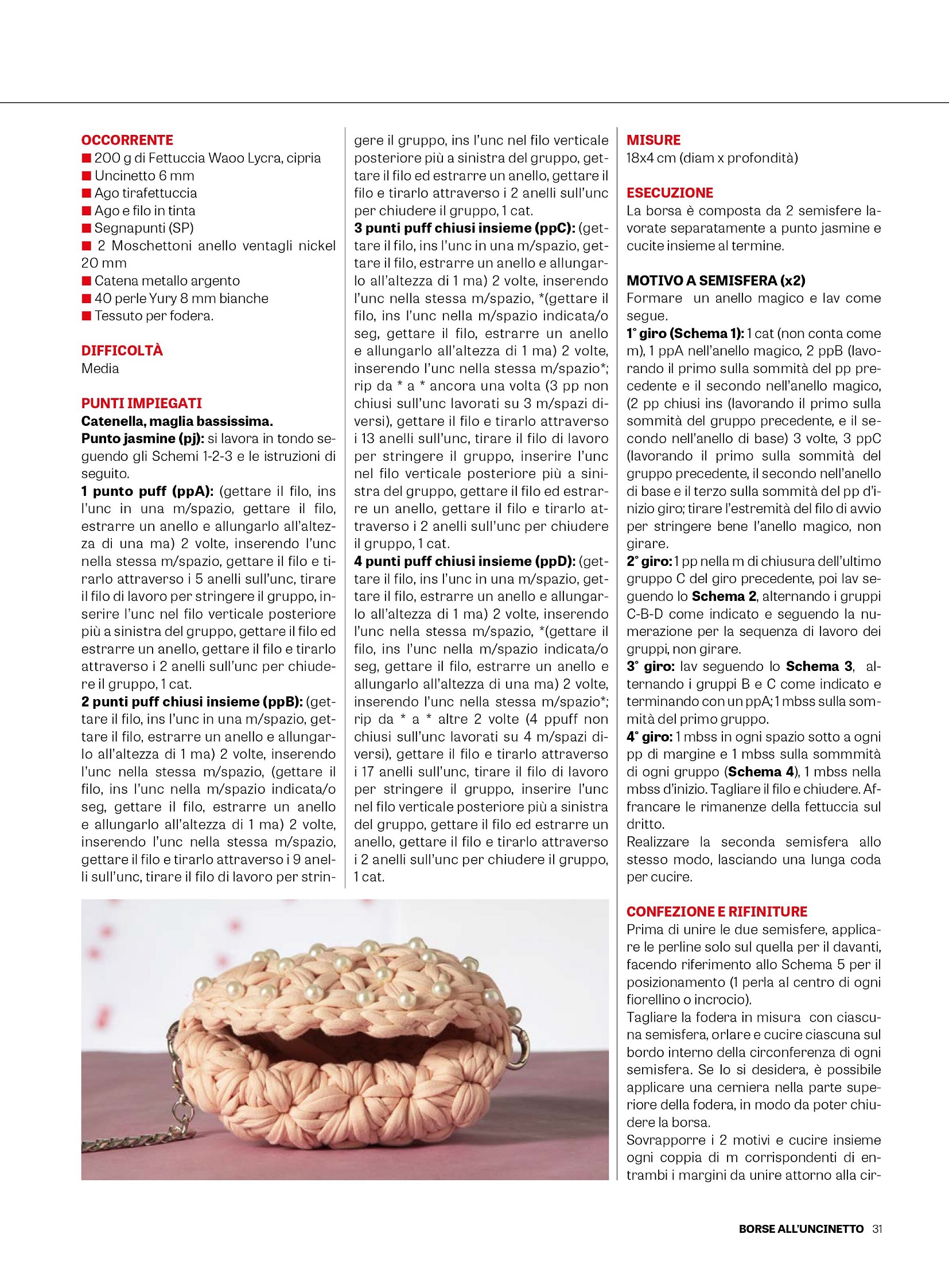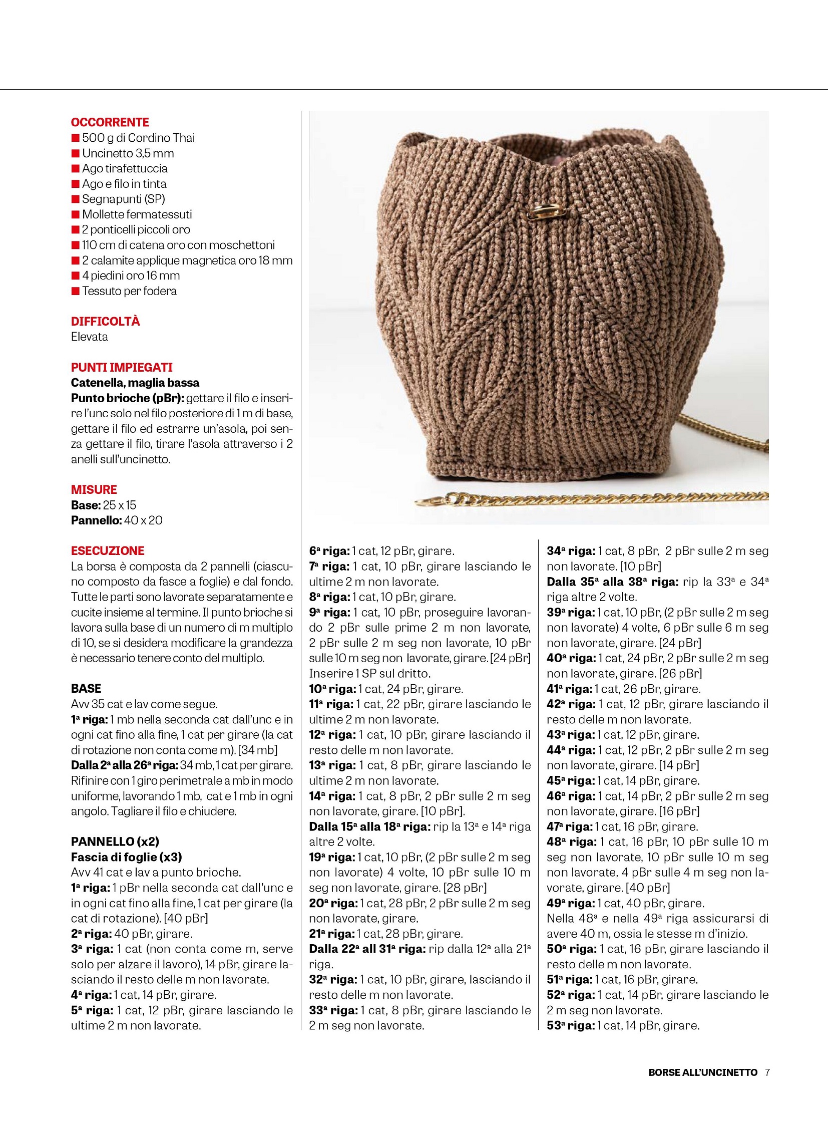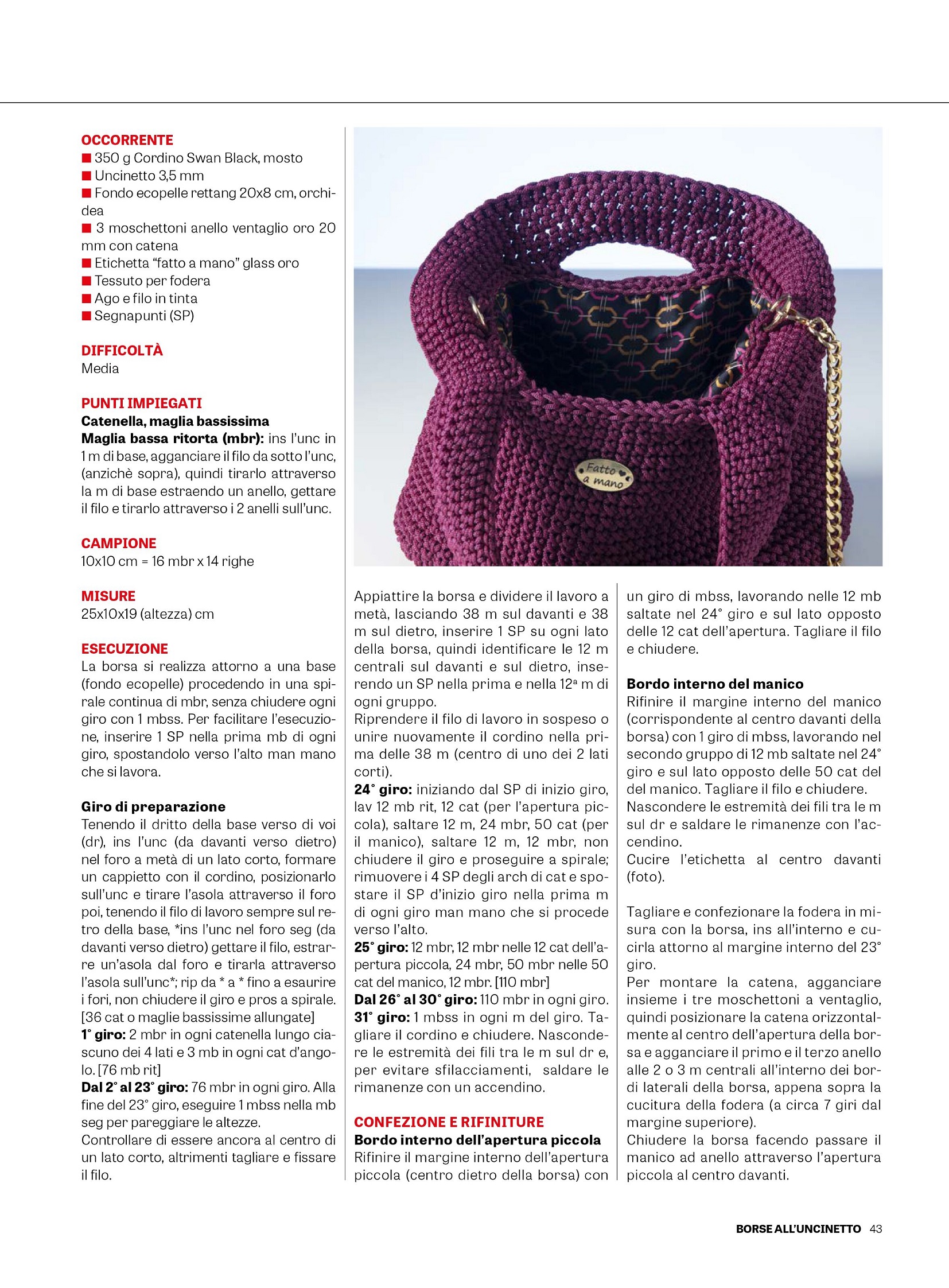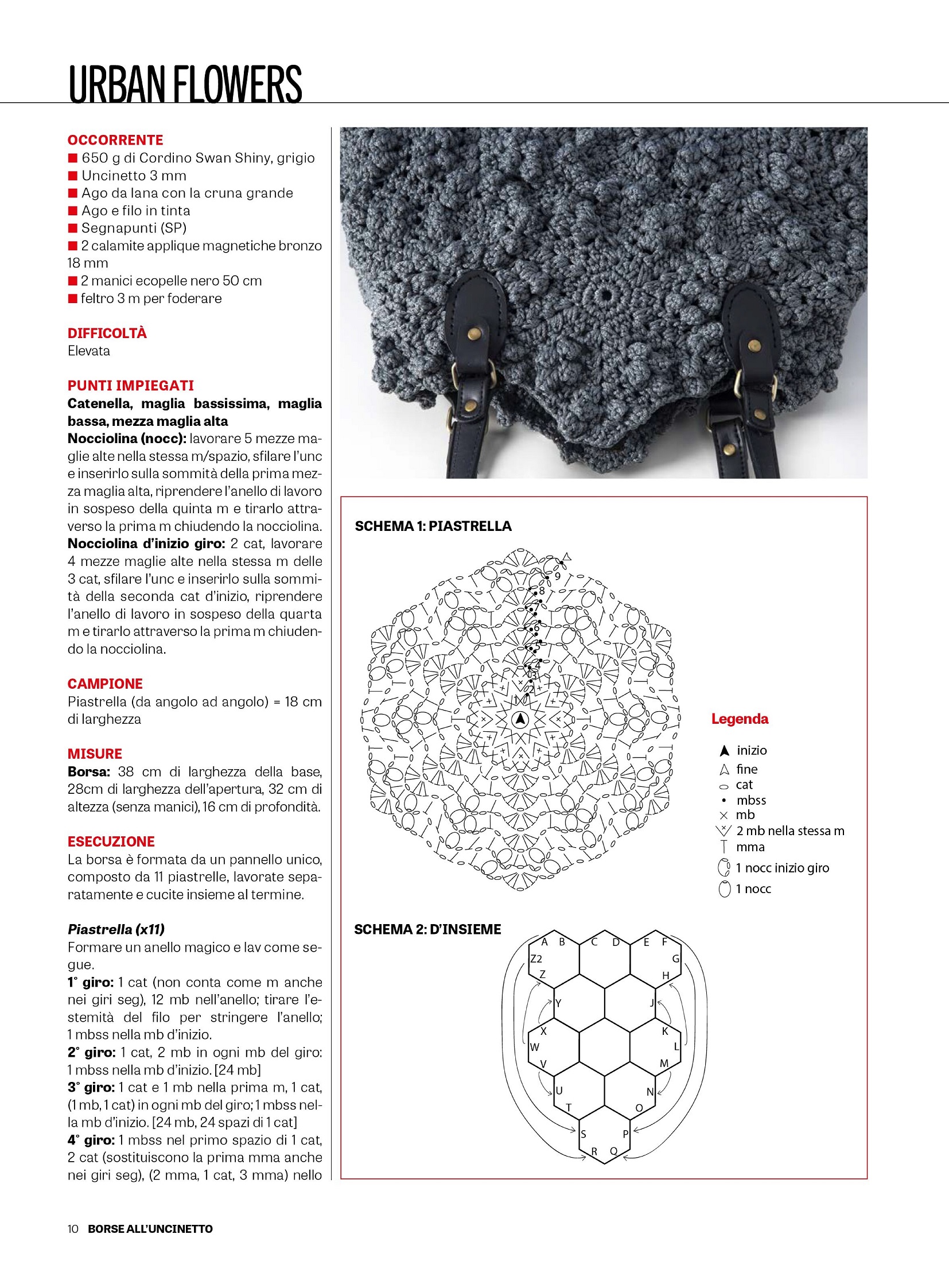 Итальянский журнал по вязанию крючком различных моделей для женщин: жакеты, топы, кофточки, аксессуары и многое другое. Выпуск посвящен вязанию крючком сумок. Качественные схемы к каждому изделию прилагаются.