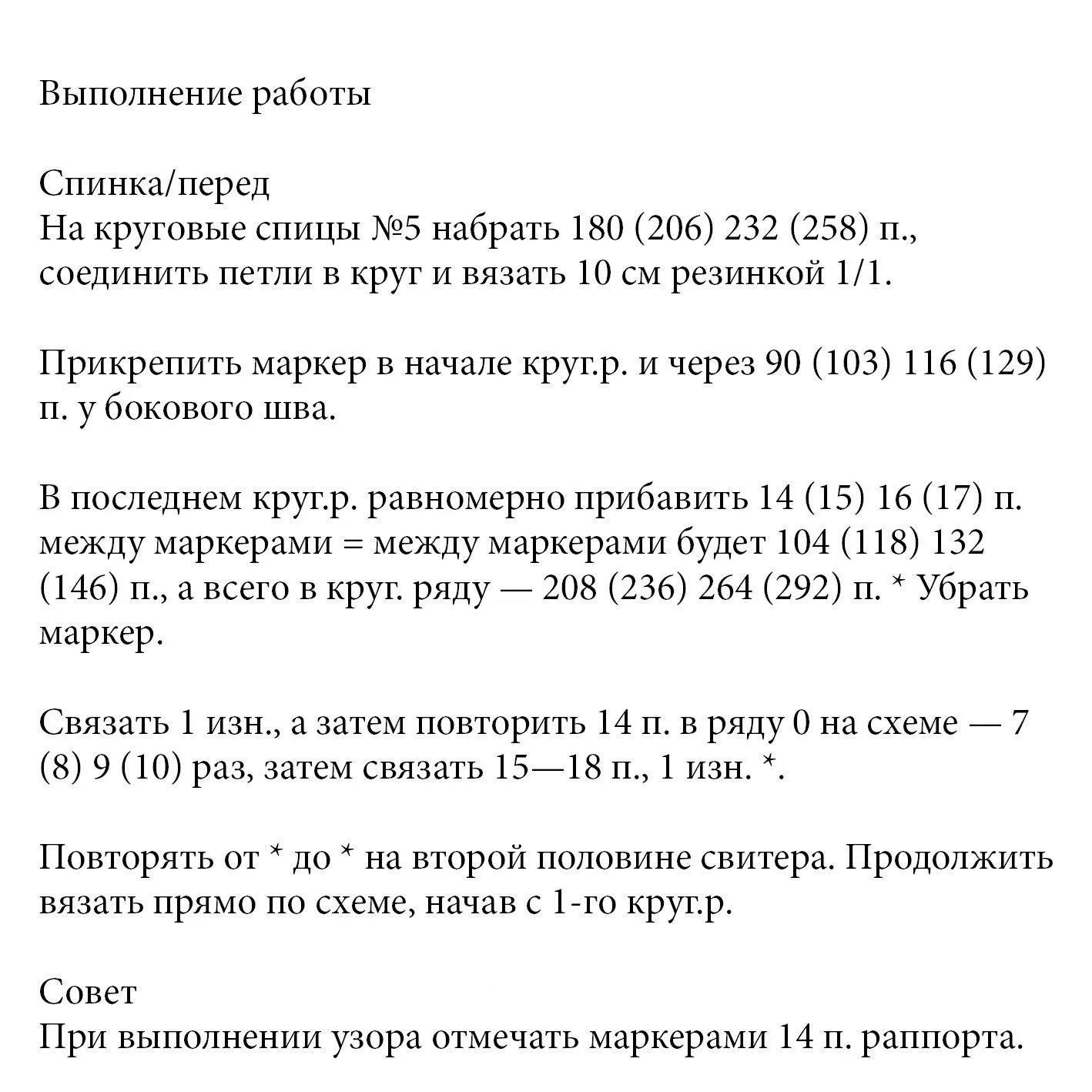 Если в инструкции указано только одно число, то оно относится ко всем размерам.