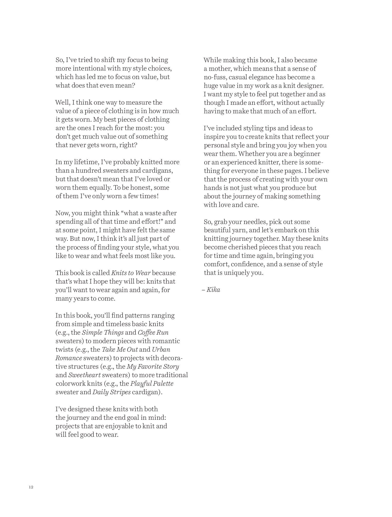 В этой книге собрано 17 моделей, которые непременно станут вашими любимыми. От классических базовых моделей до современных изделий с декоративными деталями, эта коллекция вдохновит вас на создание вязаных вещей, которые будут отражать ваш стиль и приносить вам радость каждый раз, когда вы их надеваете.