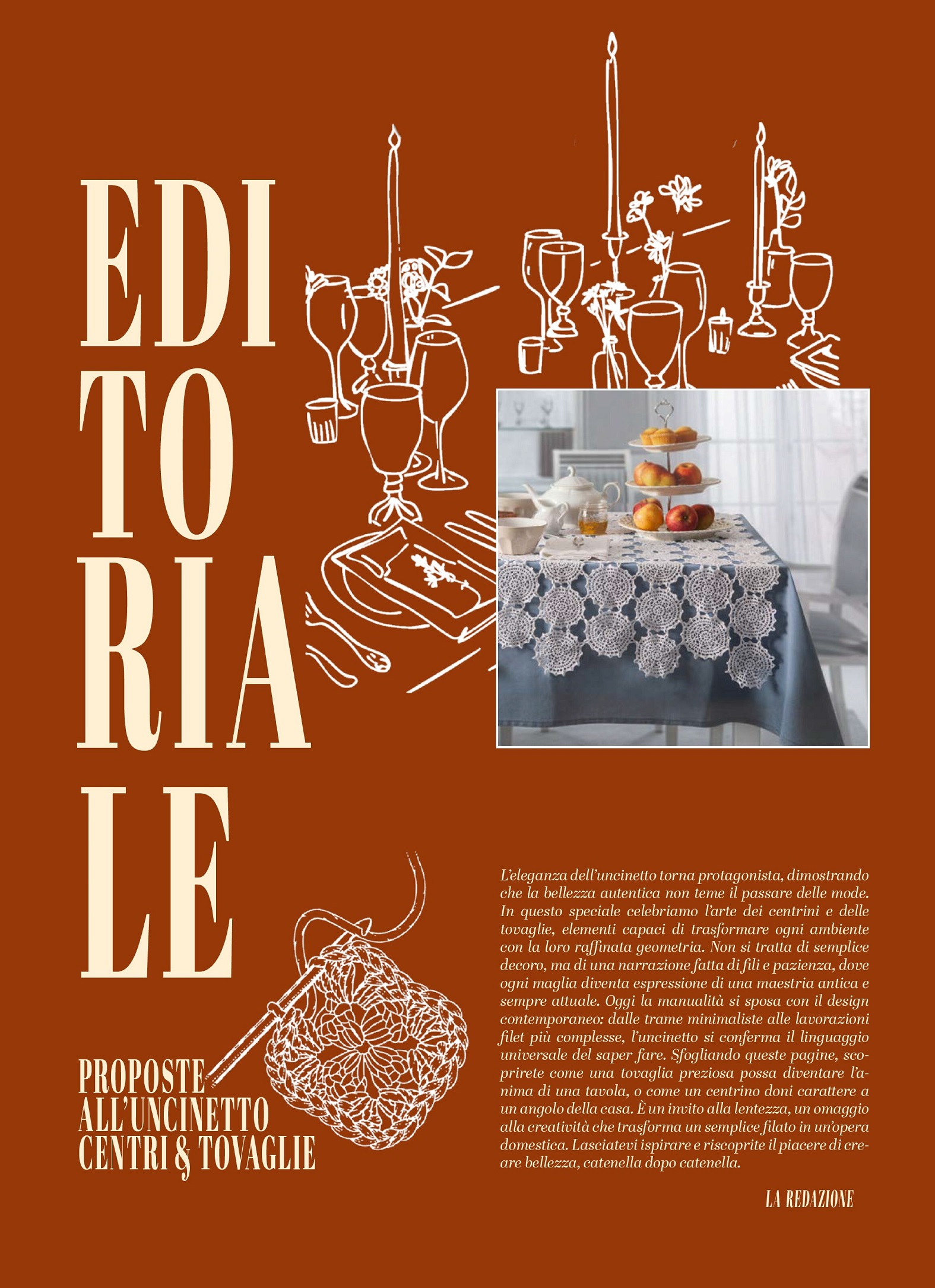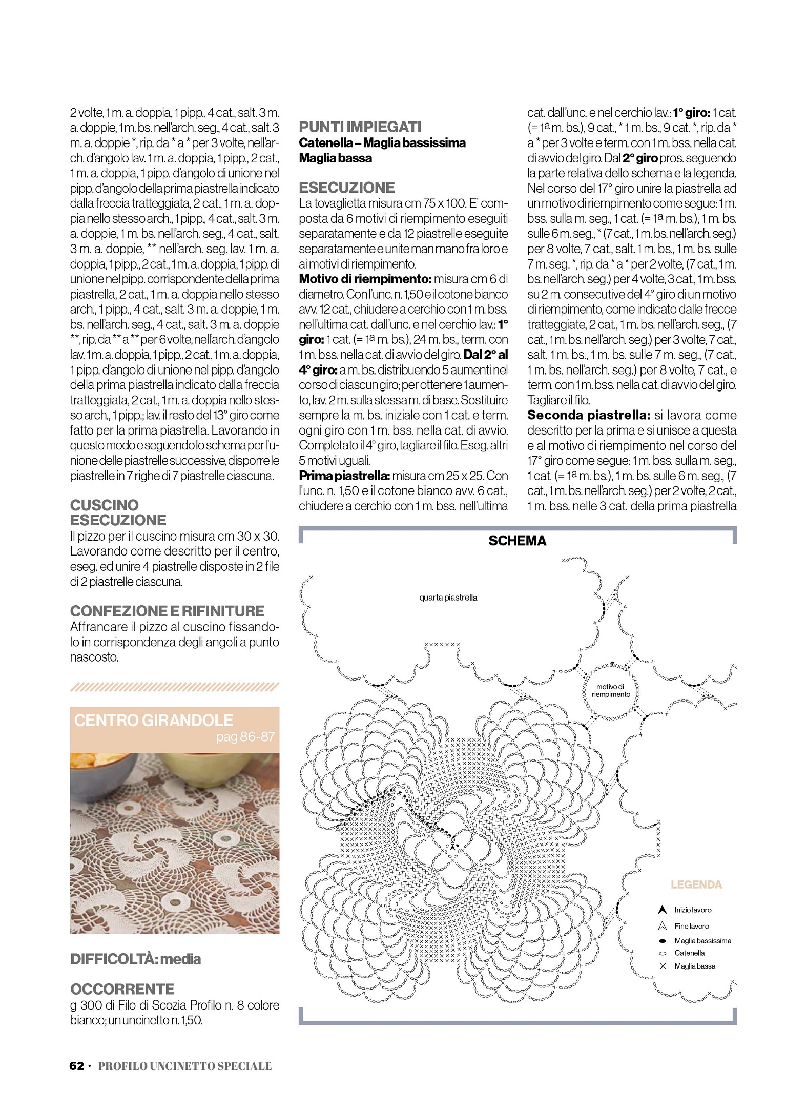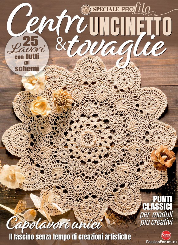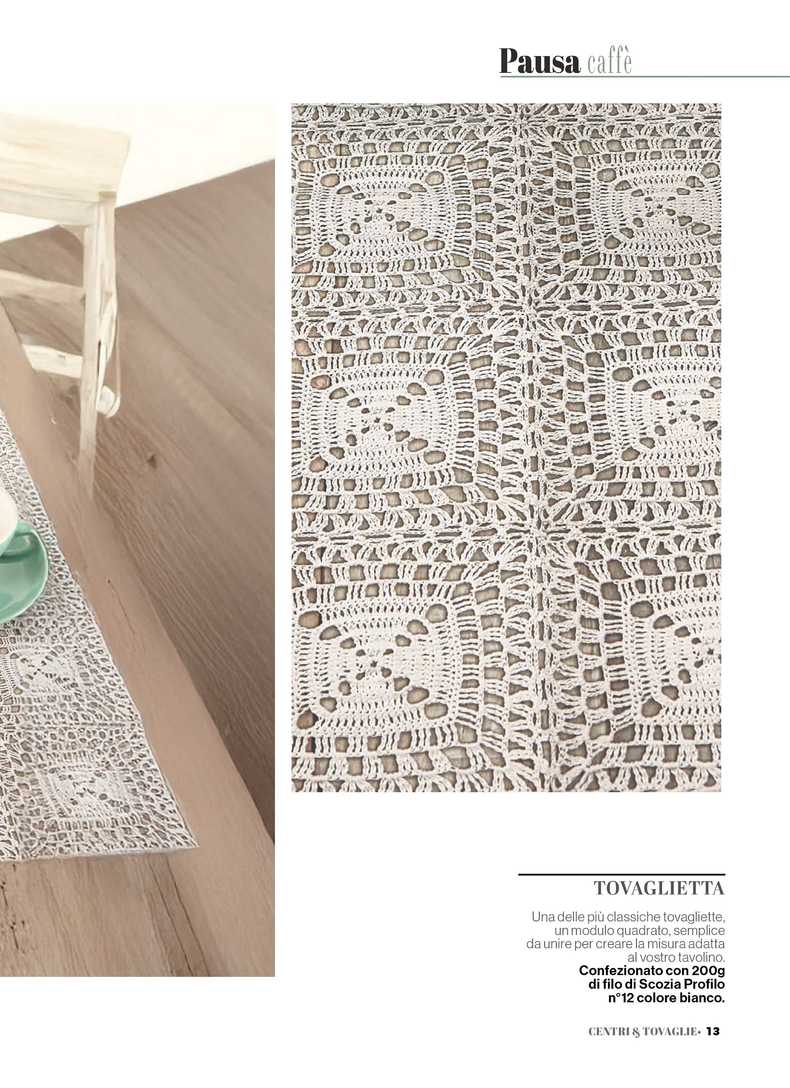 Итальянский журнал по вязанию крючком. В каждом номере проекты и идеи для создания уюта в вашем доме: салфетки, скатерти, дорожки. А также сумки, пледы, подушки, коврики, прихватки и многое другое.