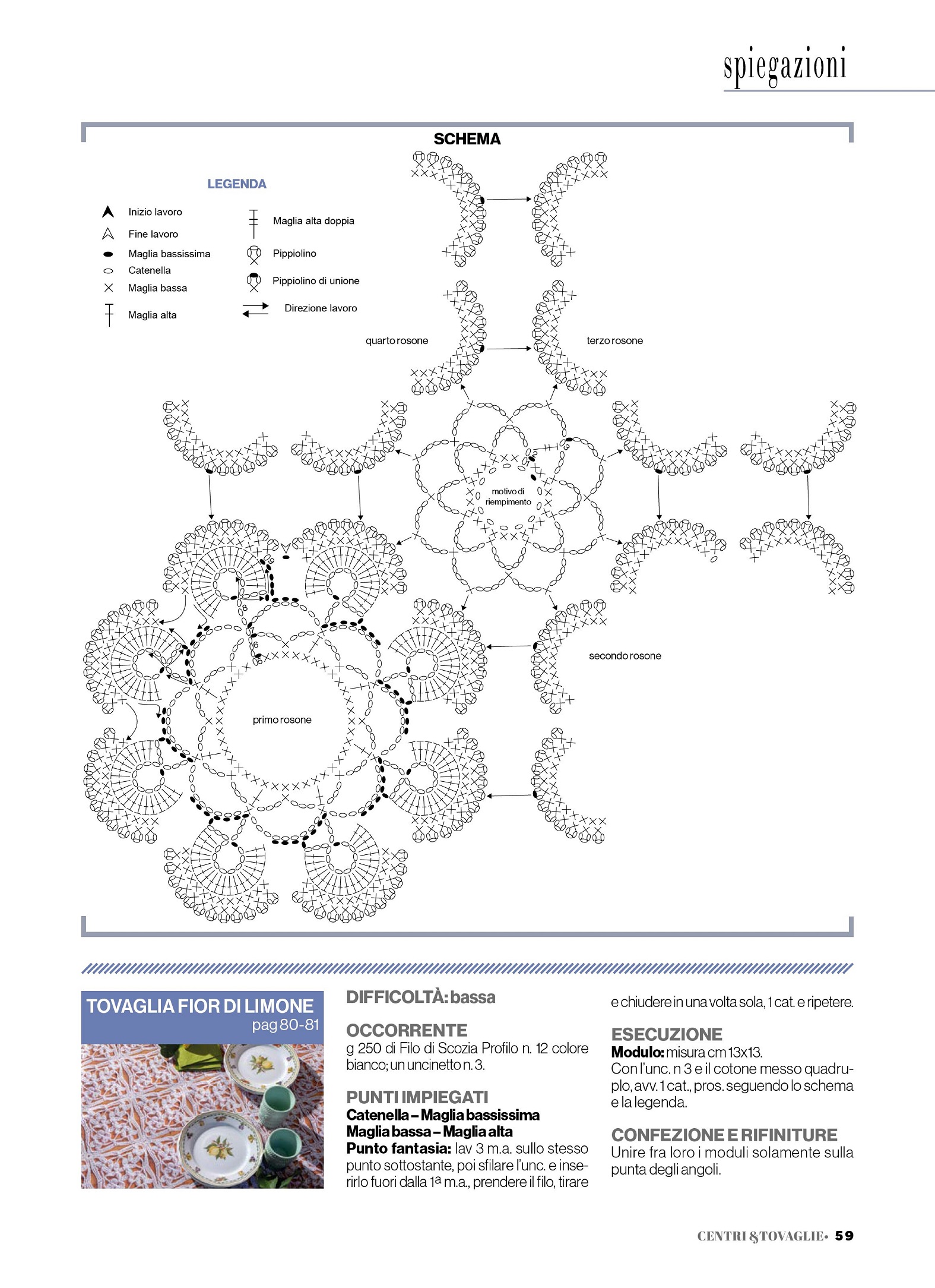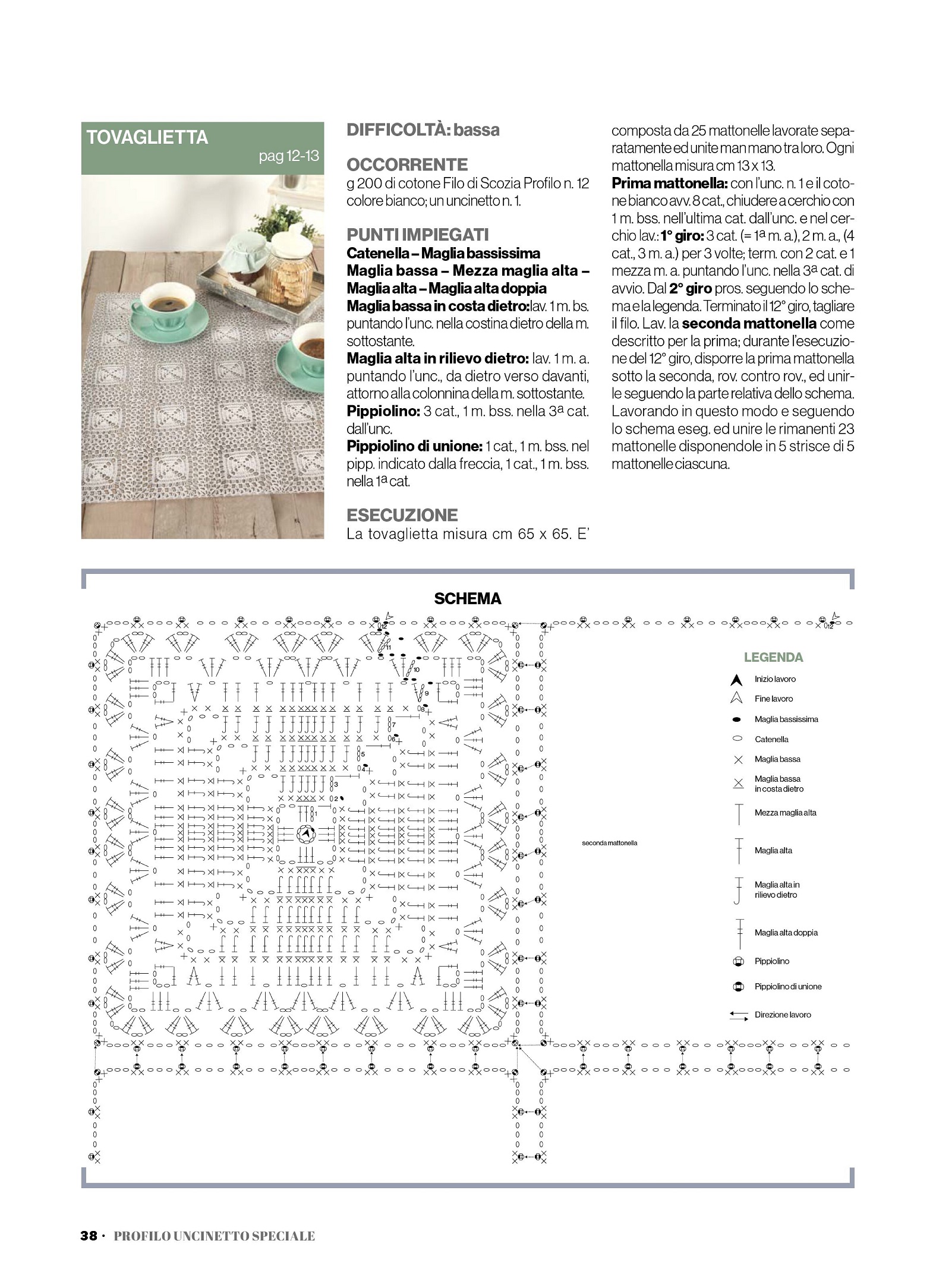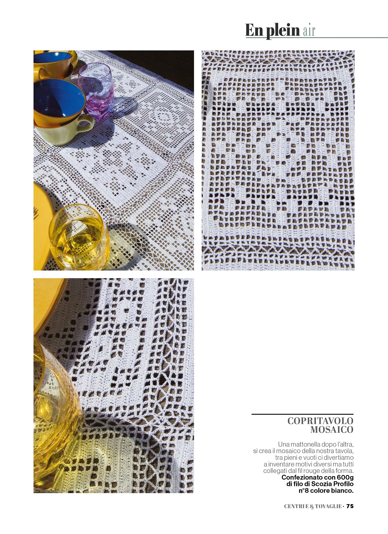 Итальянский журнал по вязанию крючком. В каждом номере проекты и идеи для создания уюта в вашем доме: салфетки, скатерти, дорожки. А также сумки, пледы, подушки, коврики, прихватки и многое другое.