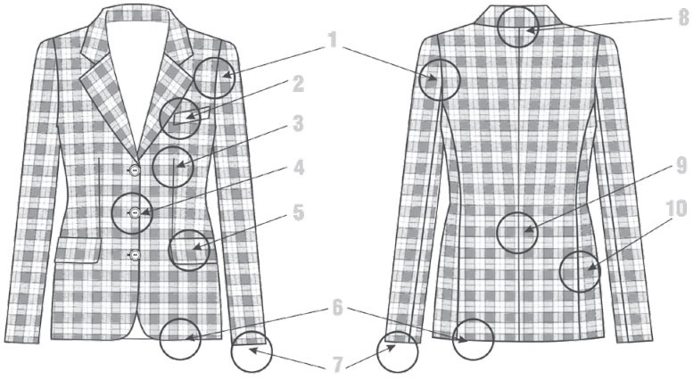Правильное расположение клеток рисунка ткани на жакете