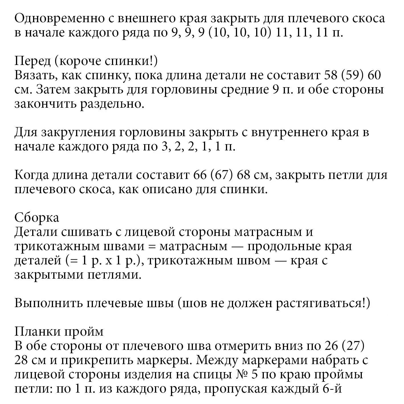 Если в инструкции указано только одно число, то оно относится ко всем размерам.