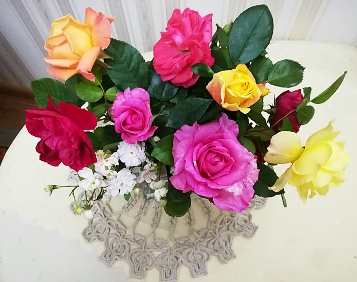 Букеты стоят у нас всегда и дома,и на даче, несмотря на то,что много цветов и в саду. Но комната как-то оживает,когда букетик стоит...