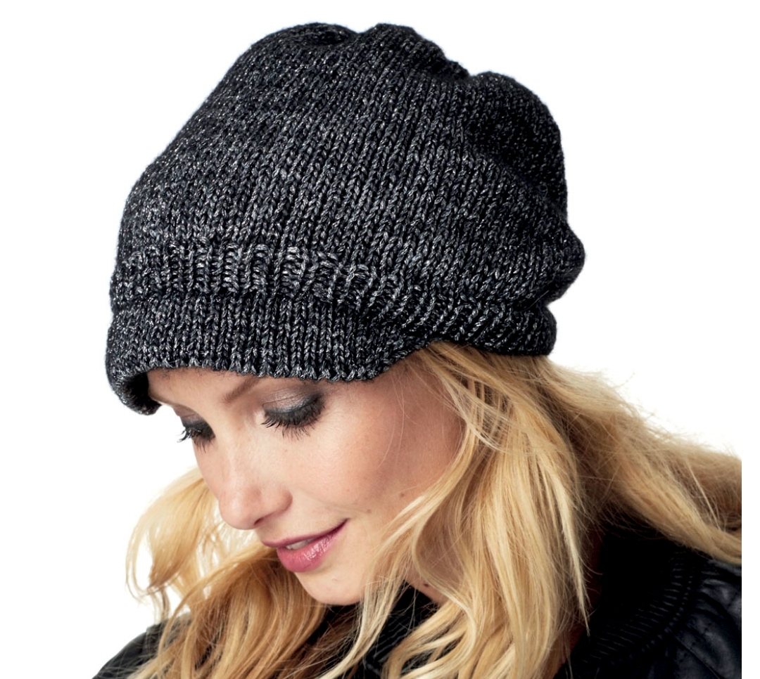 Шапочка с корзырьком выполнена в минималистичном дизайне и вяжется лицевой гладью единым полотном на спицах.