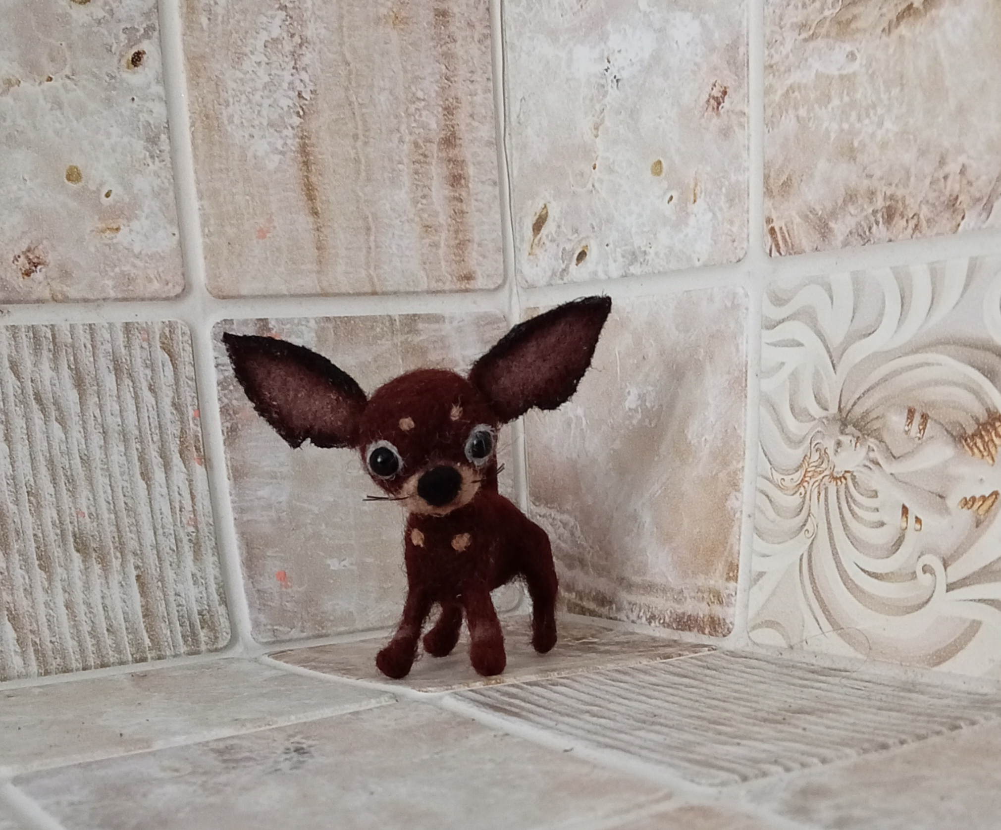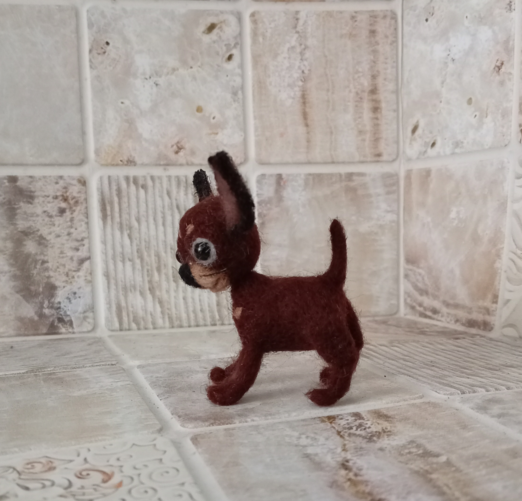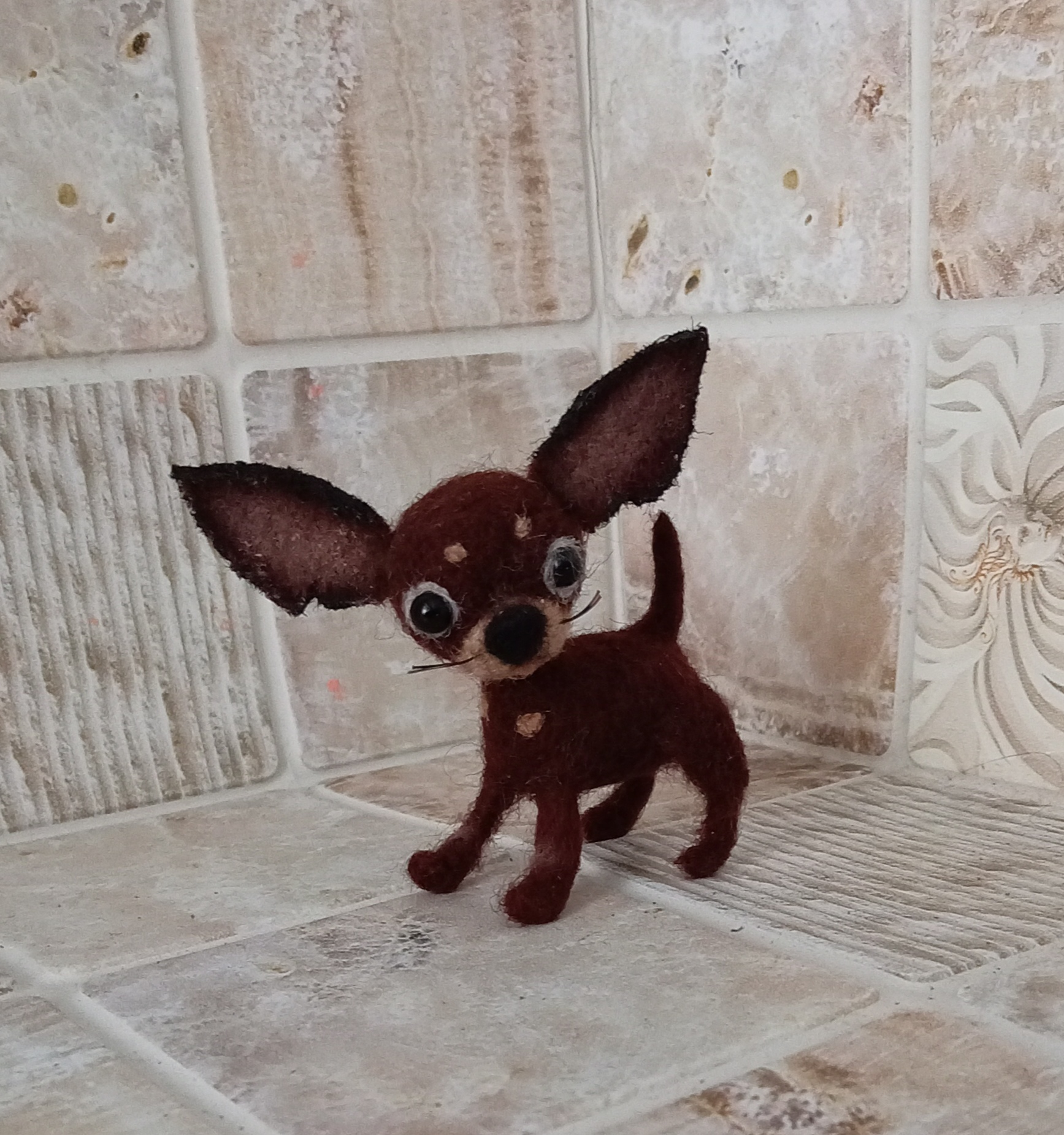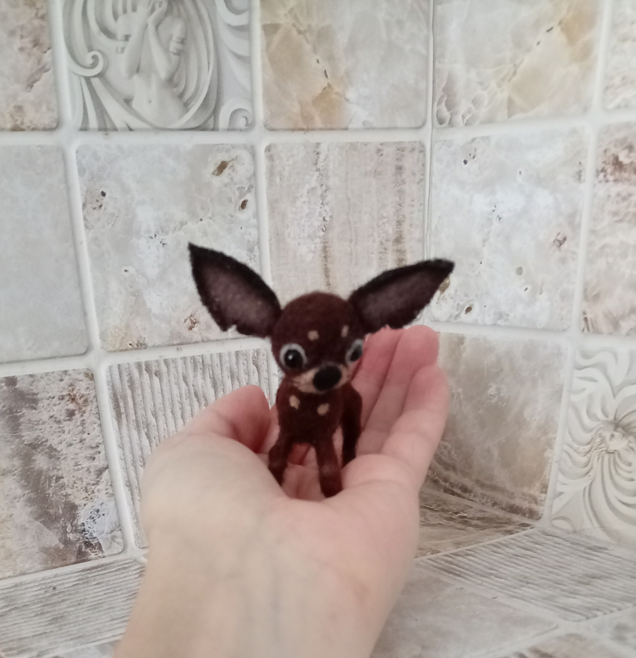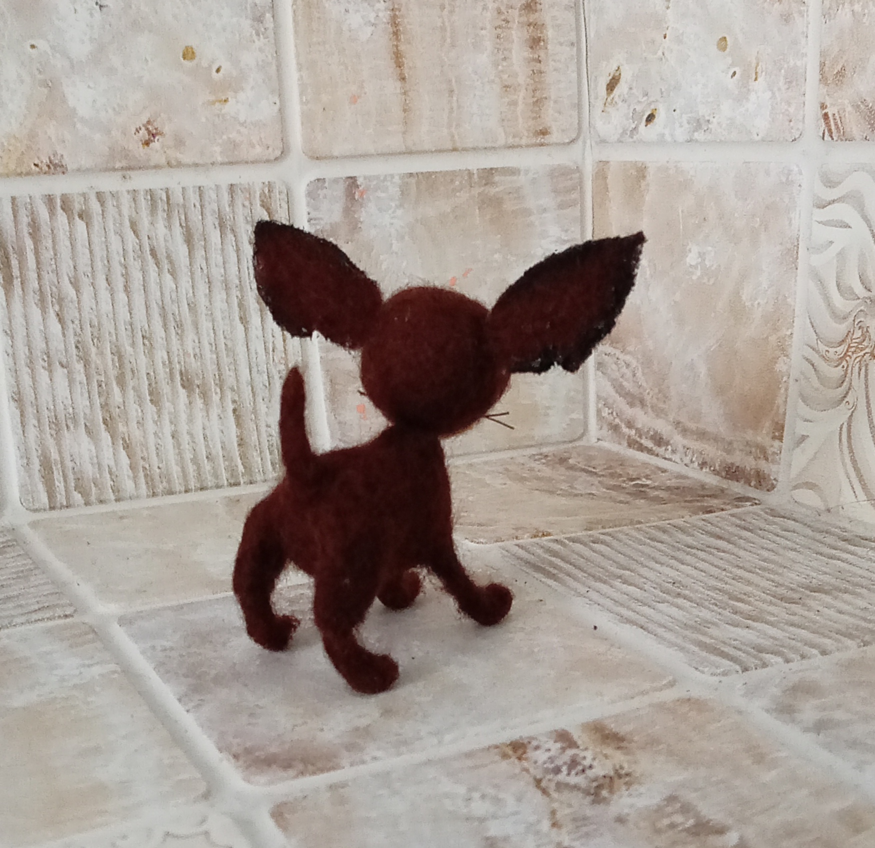 высота в холке 3см, с ушами 5см, сухое валяние из шести 🐶