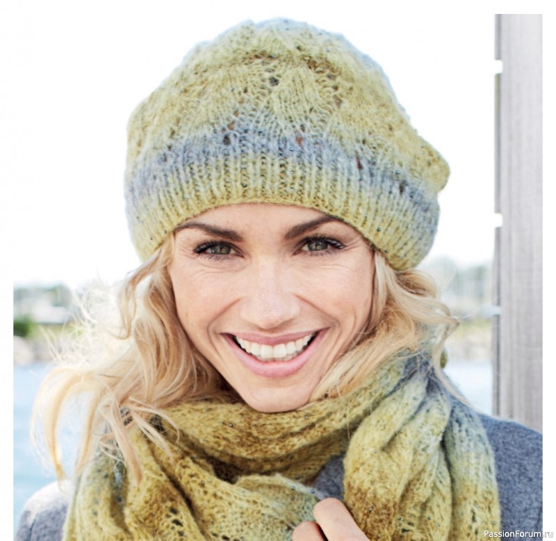 К этой шапочке можно связать длинный и теплый шарф с волнистым узором.