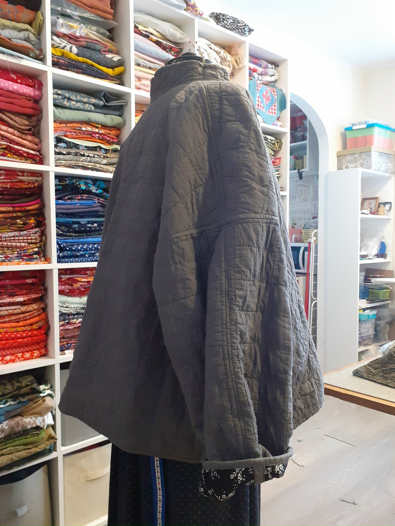 По поводу размахайки: заказчица размера 44/46, любит побольше, что понятно! Им можно))) Так вот, в процессе пошива я не только манекен использую, но и на себя, прикидываю. Я как-раз из той оперы, когда «женщины разных размеров и форм»)) И сделала такое открытие: объем в пройме, там где и виден этот гипероверсайз, дает вместить все размеры, даже если изначально лекала были на 48, но в них норм и 58! На стройняйшках оно «виснет» как на образце, а на «нас» статусных, просто облегает и еще остается место для движений. Гипероверсайза в этом случае не остается, а получается просто комфортная фуфаечка.