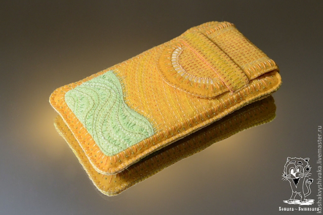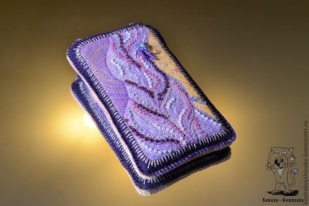 Изделия из фетра мягкие, приятные на ощупь. Вышивка покрывает всю поверхность чехла (с двух сторон) и вызывает необычные тактильные ощущения.