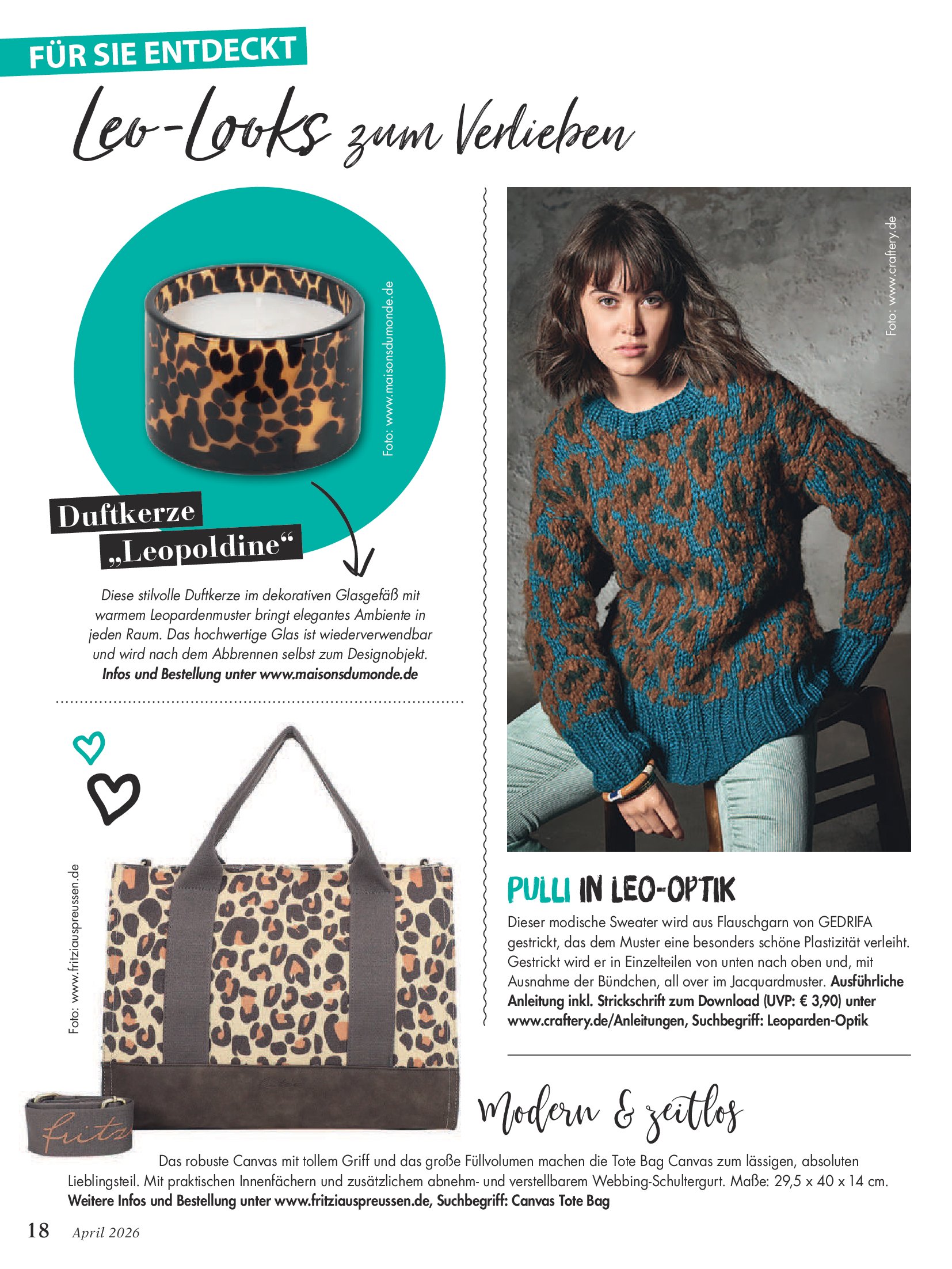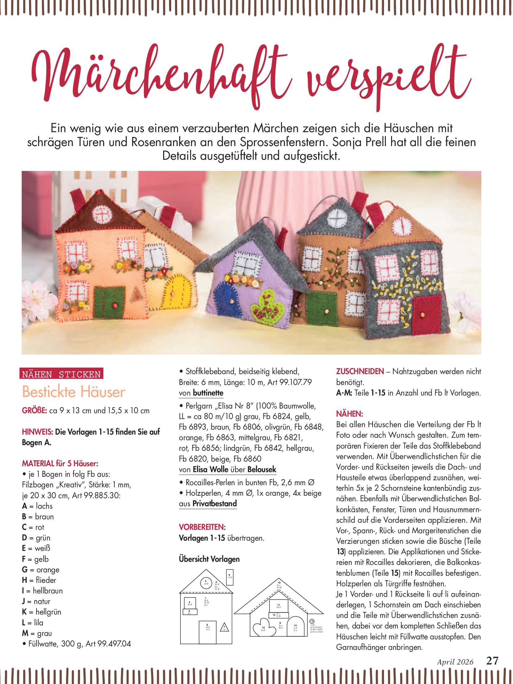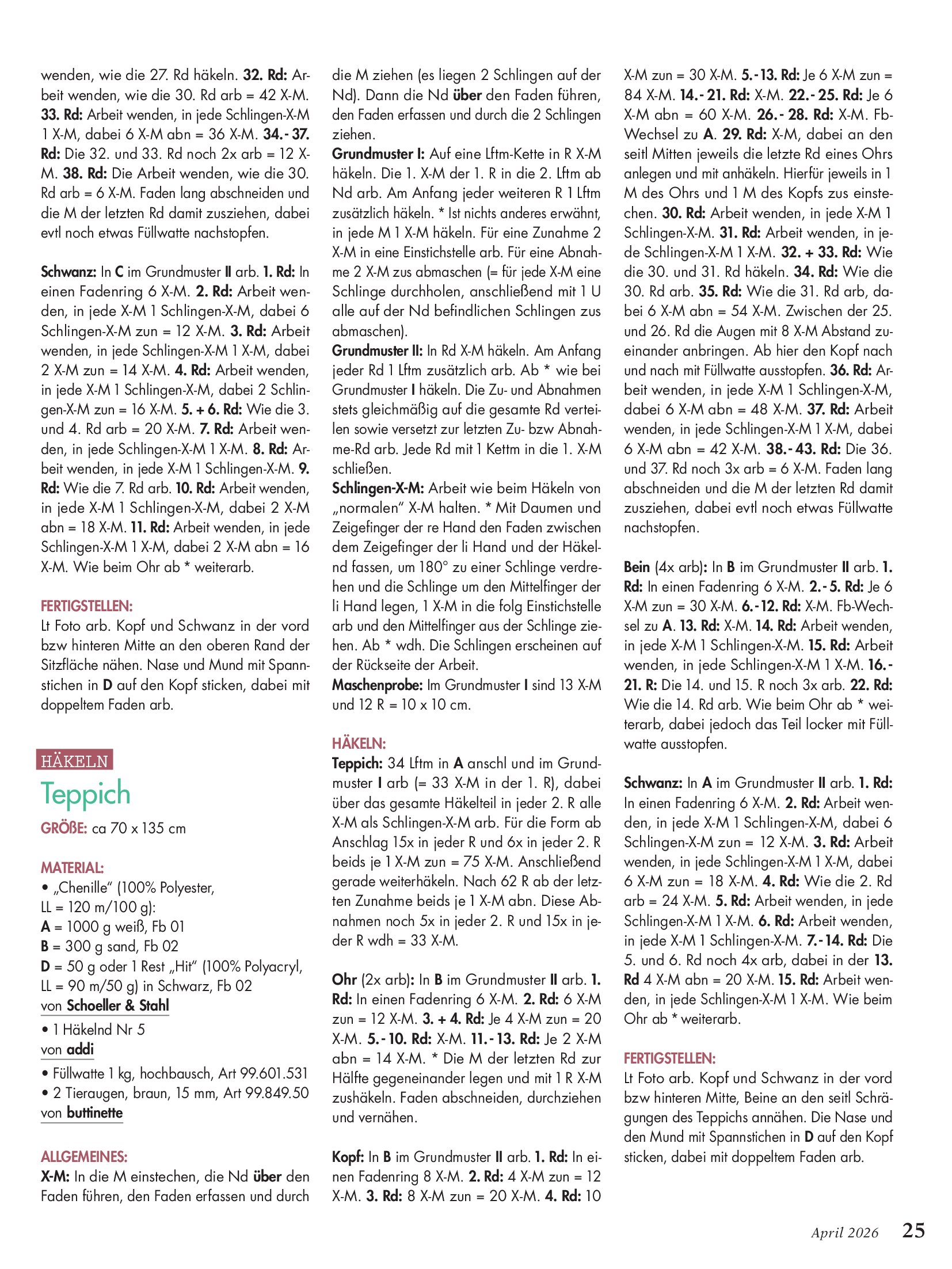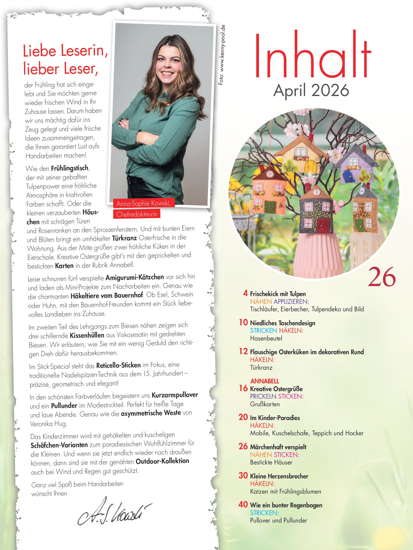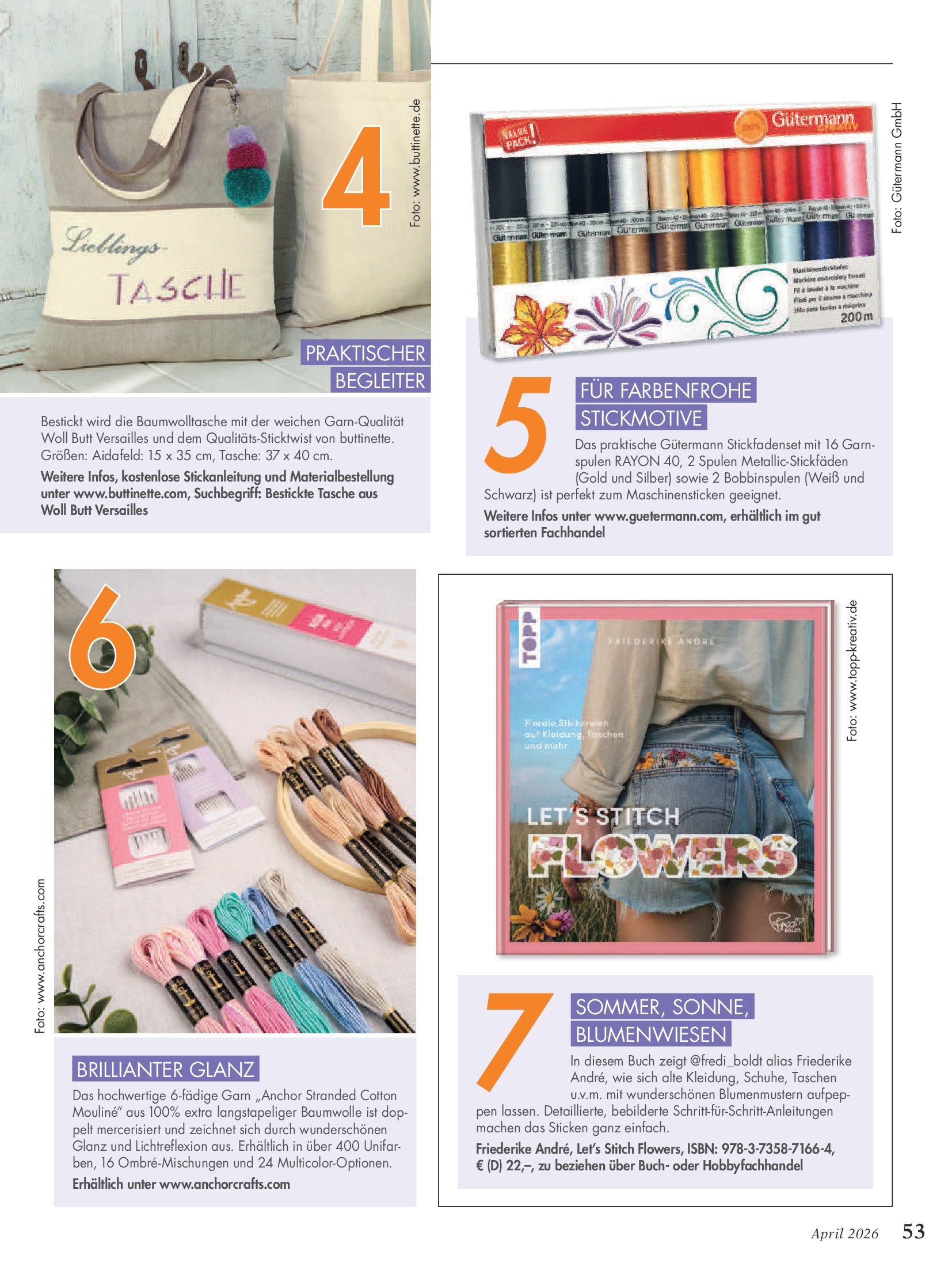 Популярный журнал по рукоделию на немецком языке. В каждом номере журнала собраны уникальные проекты, выполненные в разных техниках - вязание крючком, спицами, вышивка, украшения из бисера, пэчворк и другие.